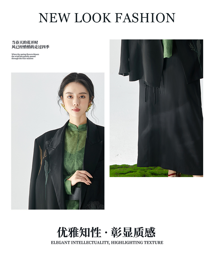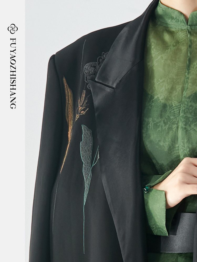 扶摇 刺绣西装男女同款长袖小西服新中式女装小众oversize黑