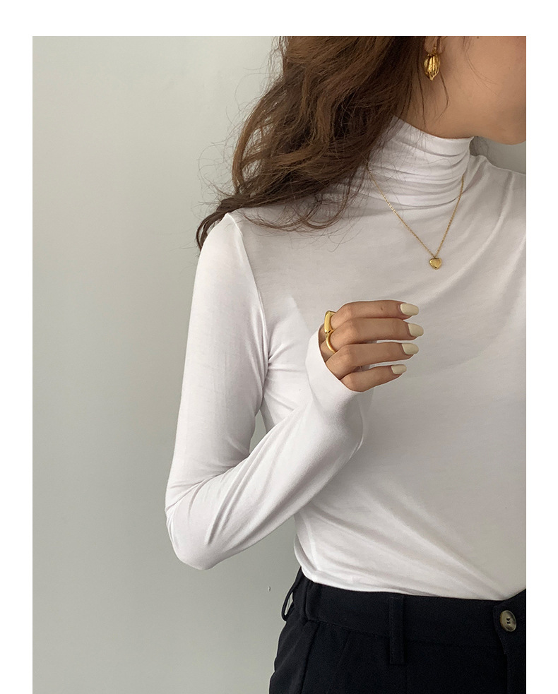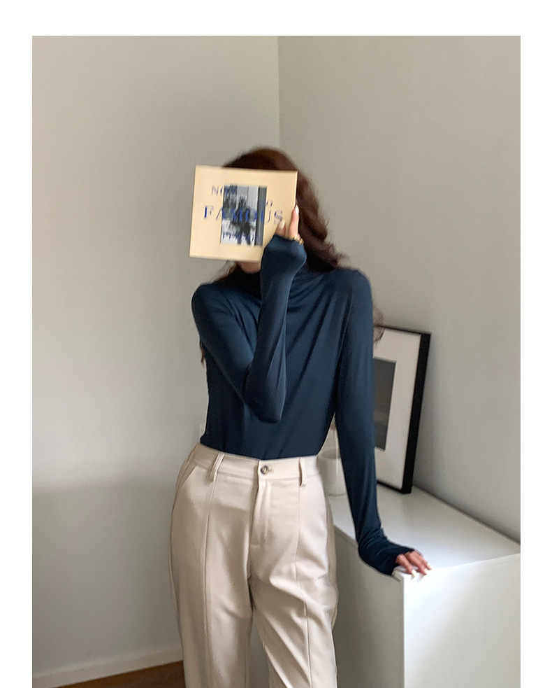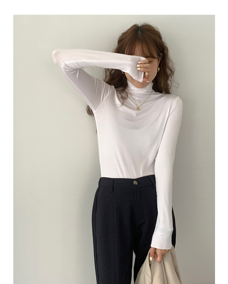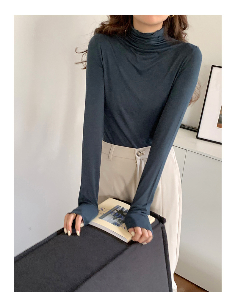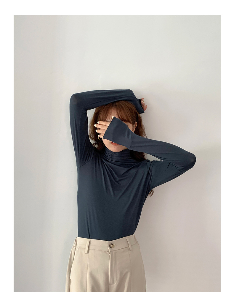 超弹面膜T 大弹力高领纯色莫代尔长袖t恤 薄款打底衫
