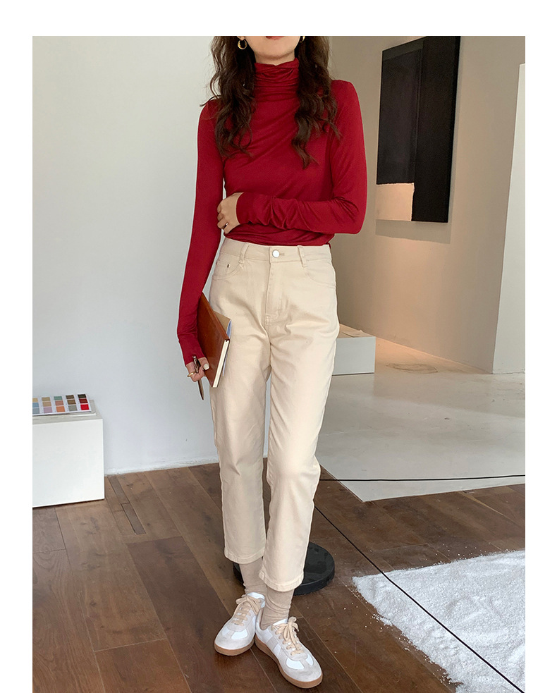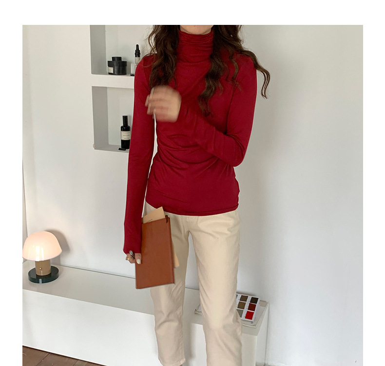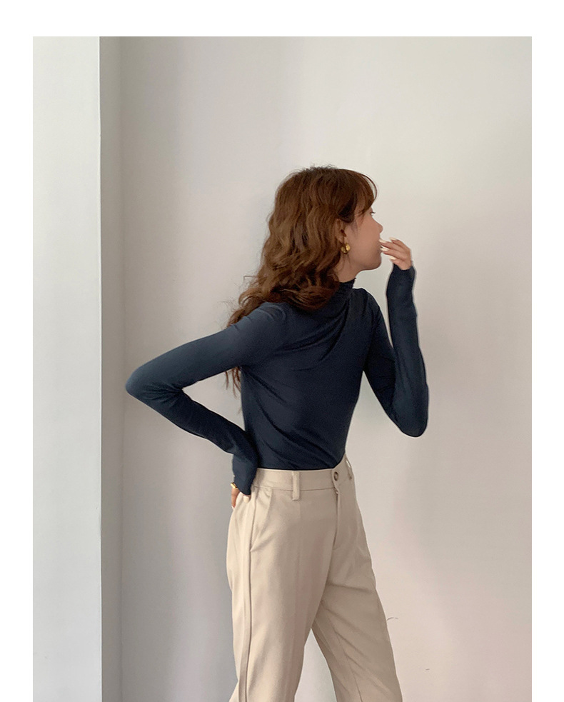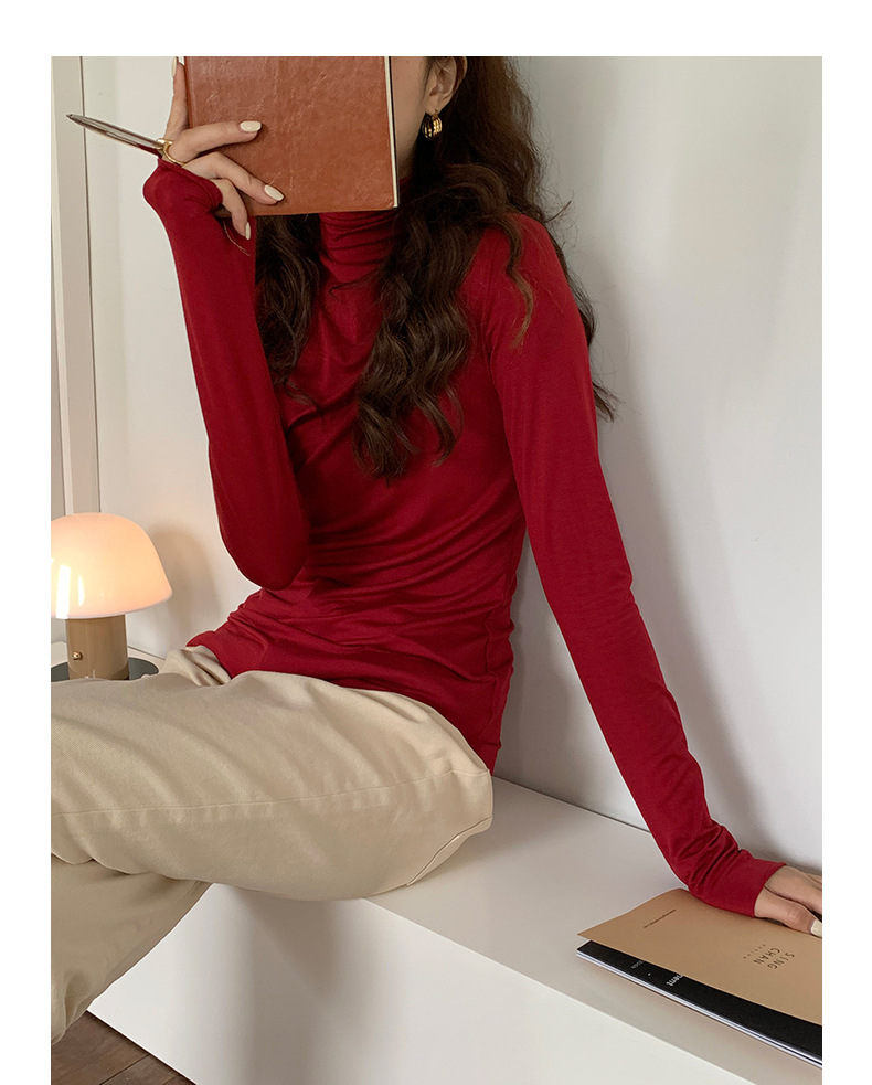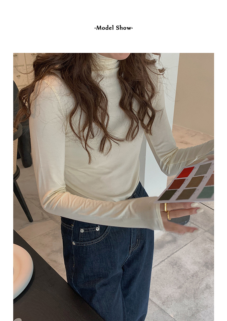 超弹面膜T 大弹力高领纯色莫代尔长袖t恤 薄款打底衫
