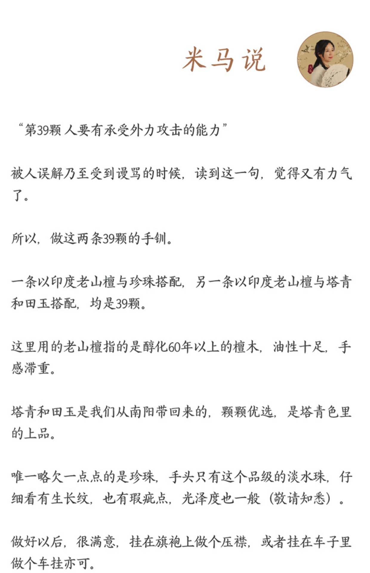 米马饰物 印度老山檀手持/压襟/车挂 人要有承受外力攻击的能力