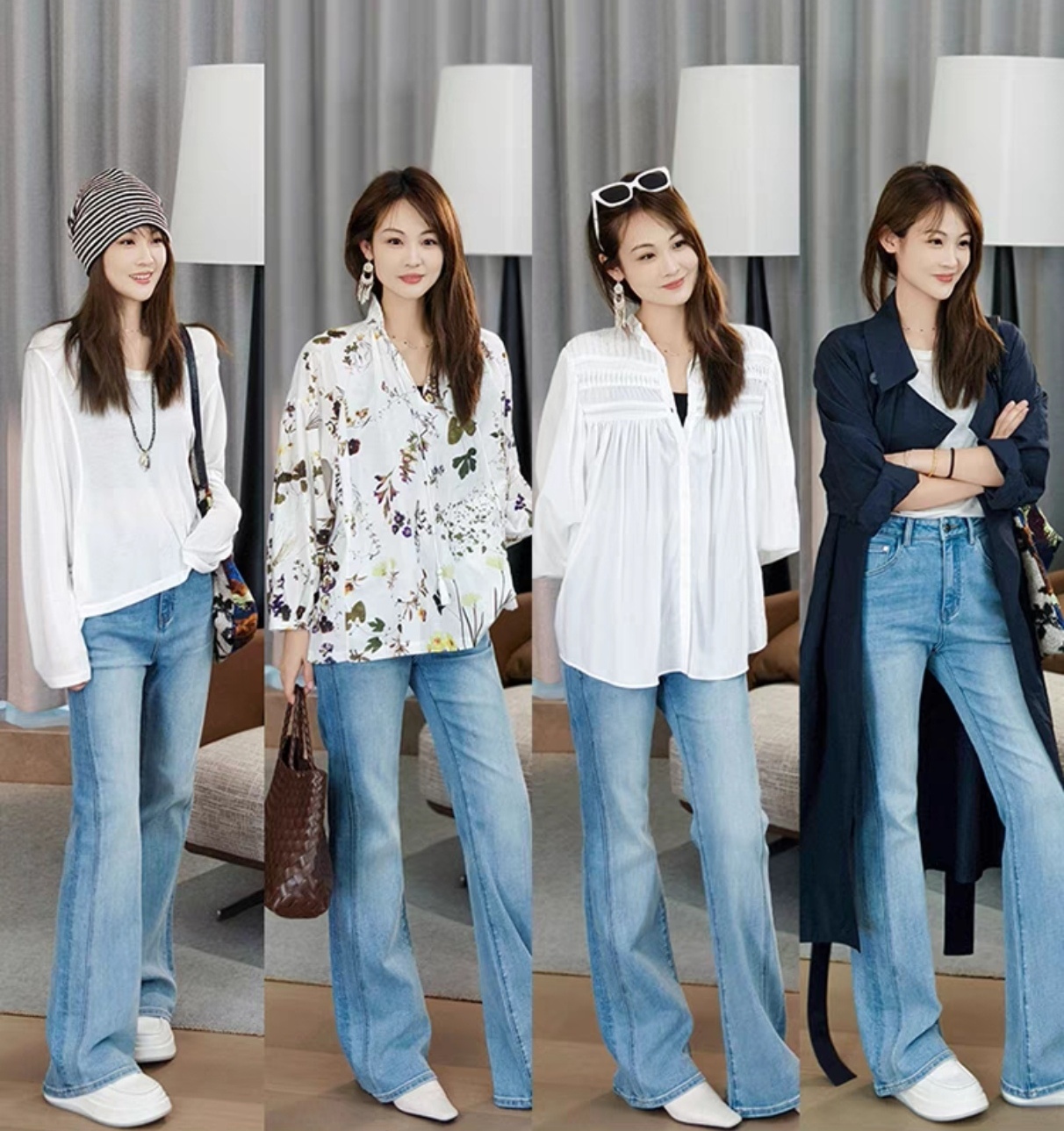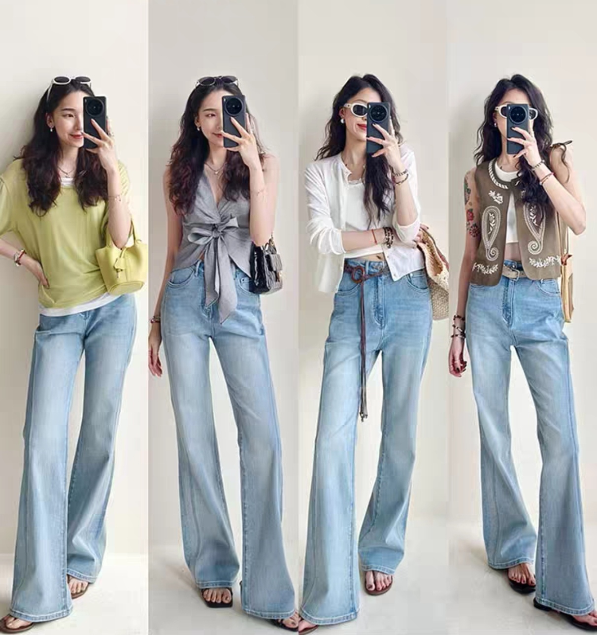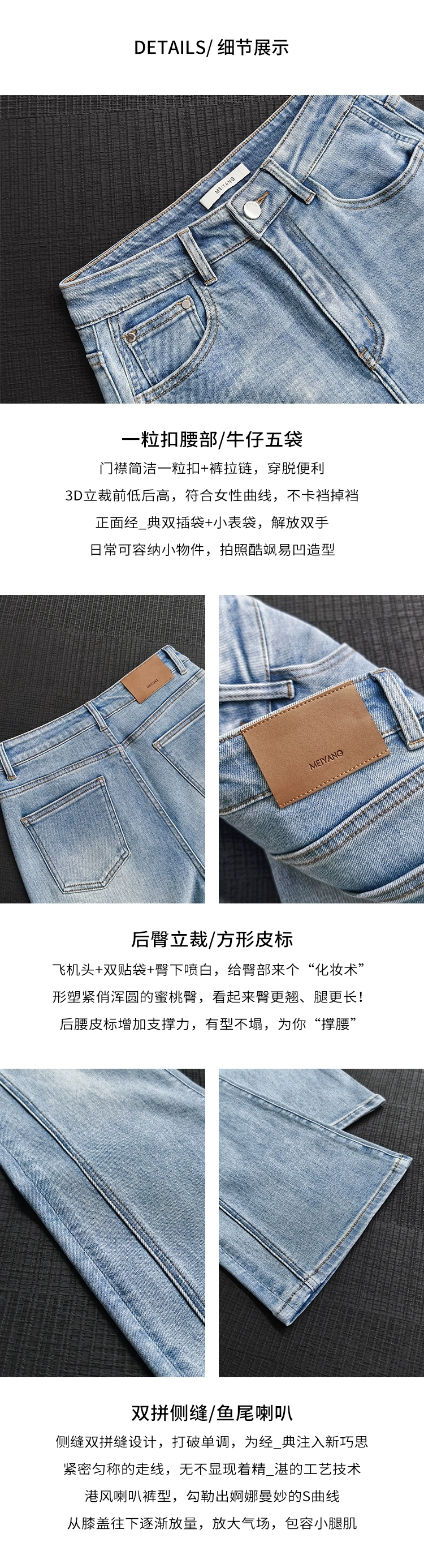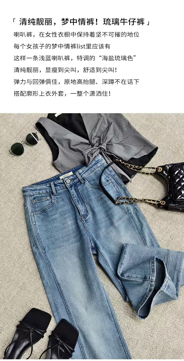 清纯靓丽蓝色,水洗薄弹力牛仔裤喇叭裤鱼尾裤,衣橱中保持着坚不可摧的地位特调的“海盐琉璃色”清纯靓丽,显瘦到尖叫,舒适到尖叫弹力与回弹俱佳,原地高抬腿、深蹲不在话下,搭配廓形上衣外套,一整个潇洒气场。