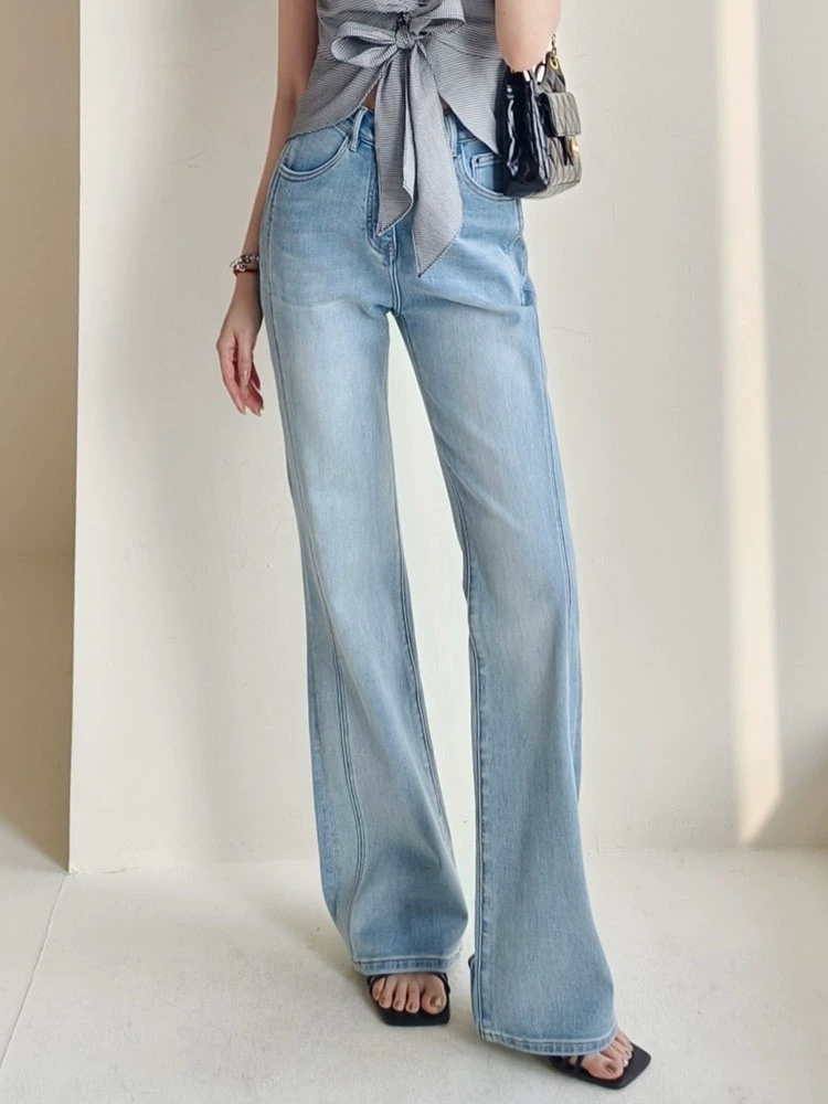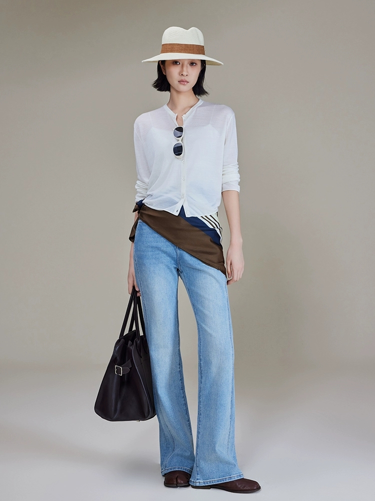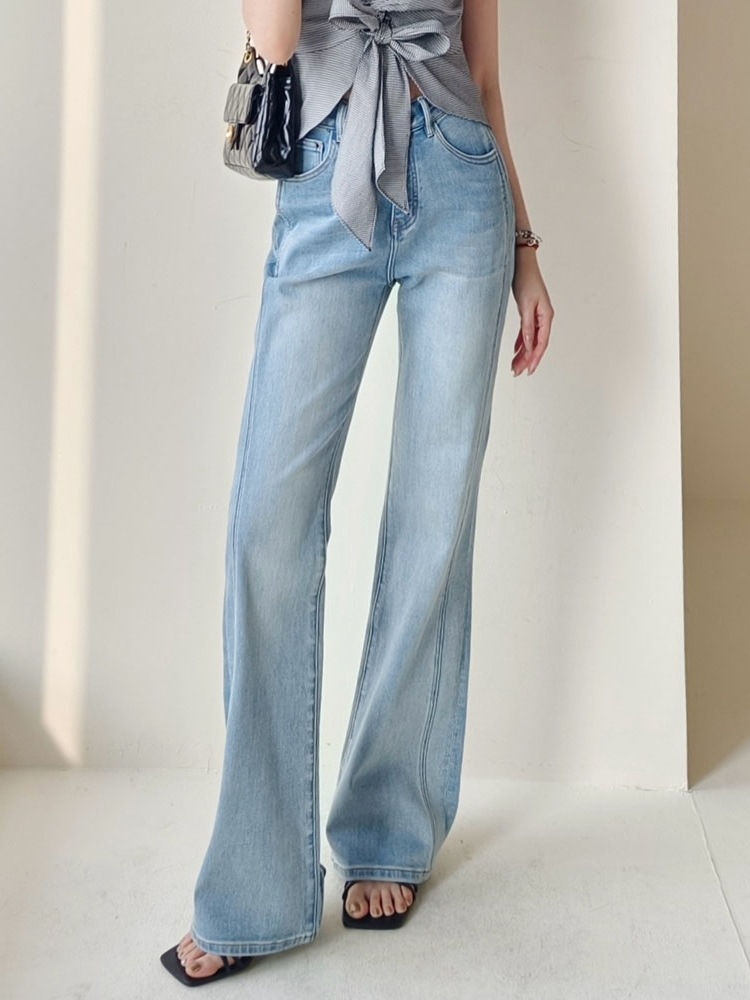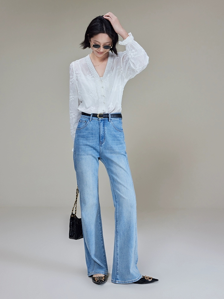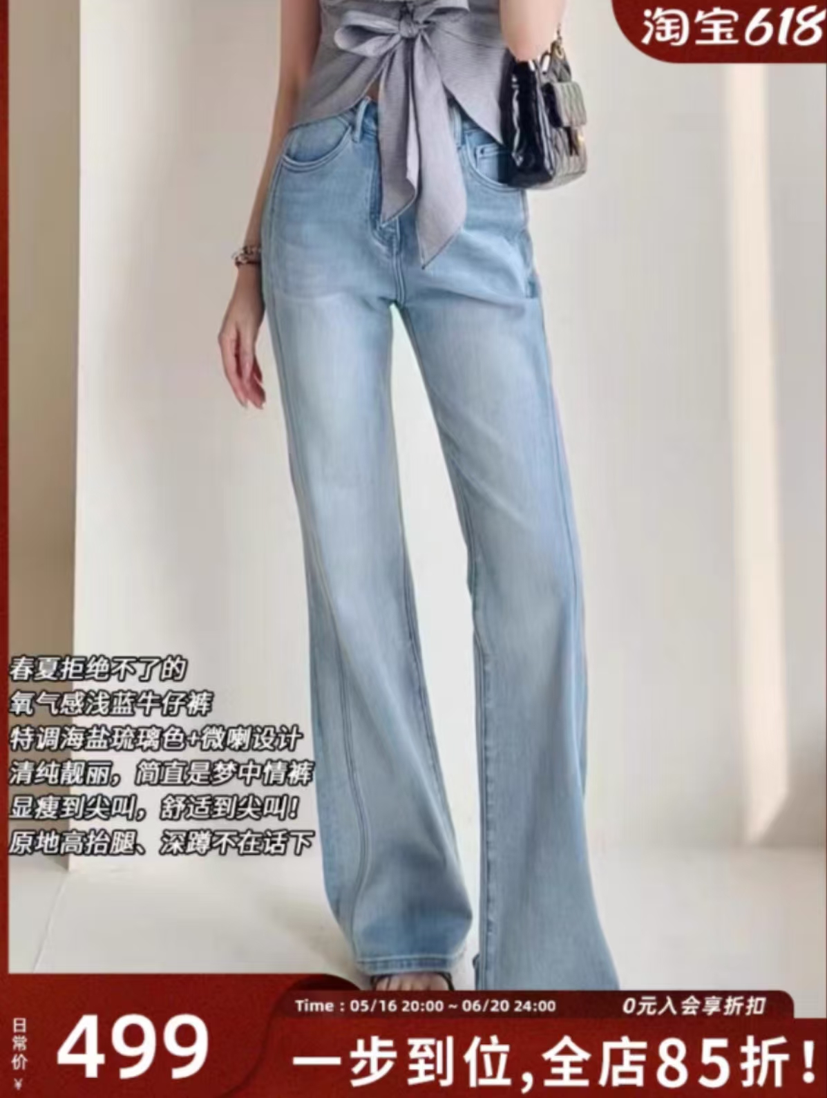 清纯靓丽蓝色,水洗薄弹力牛仔裤喇叭裤鱼尾裤,衣橱中保持着坚不可摧的地位特调的“海盐琉璃色”清纯靓丽,显瘦到尖叫,舒适到尖叫弹力与回弹俱佳,原地高抬腿、深蹲不在话下,搭配廓形上衣外套,一整个潇洒气场。