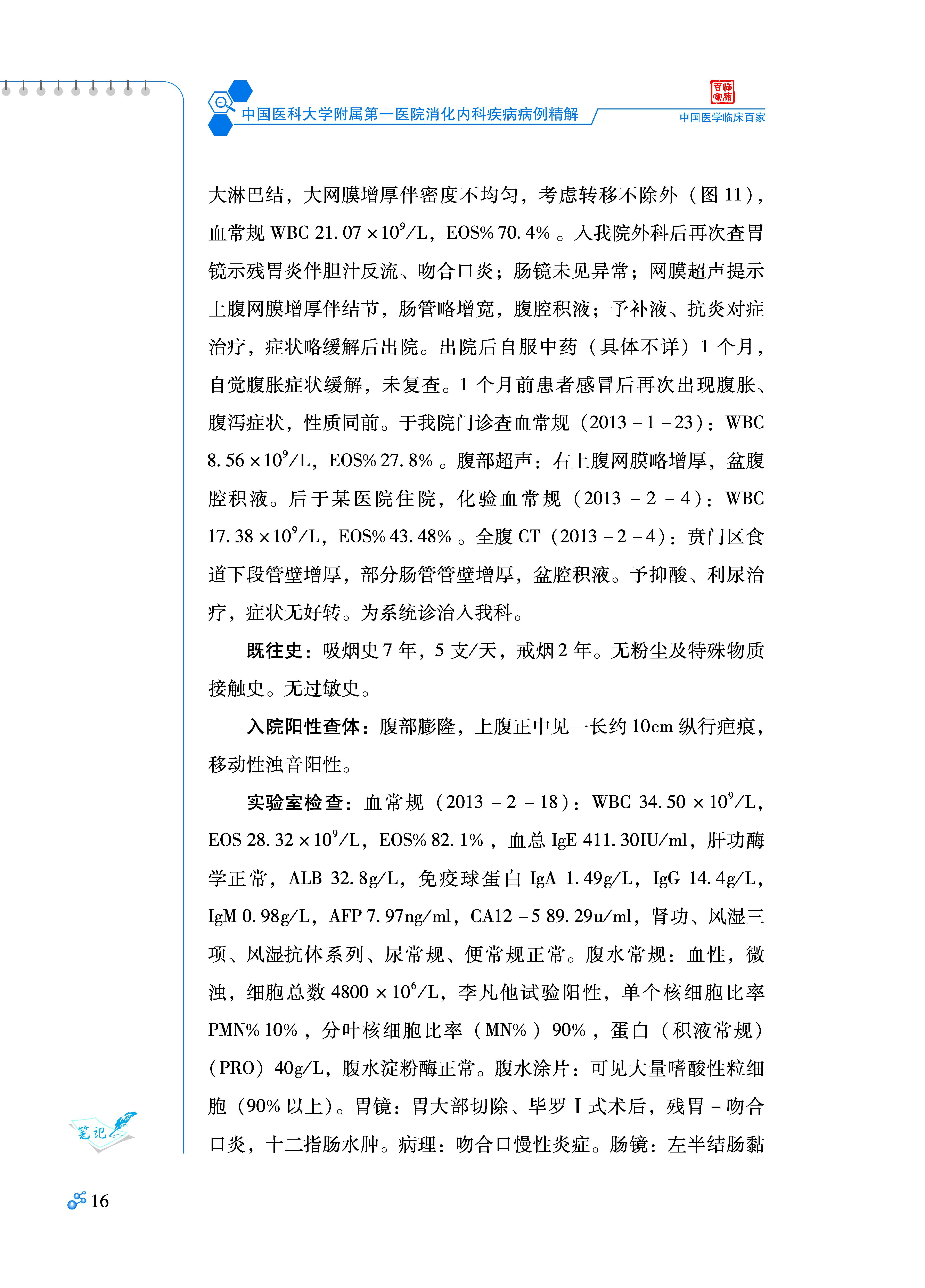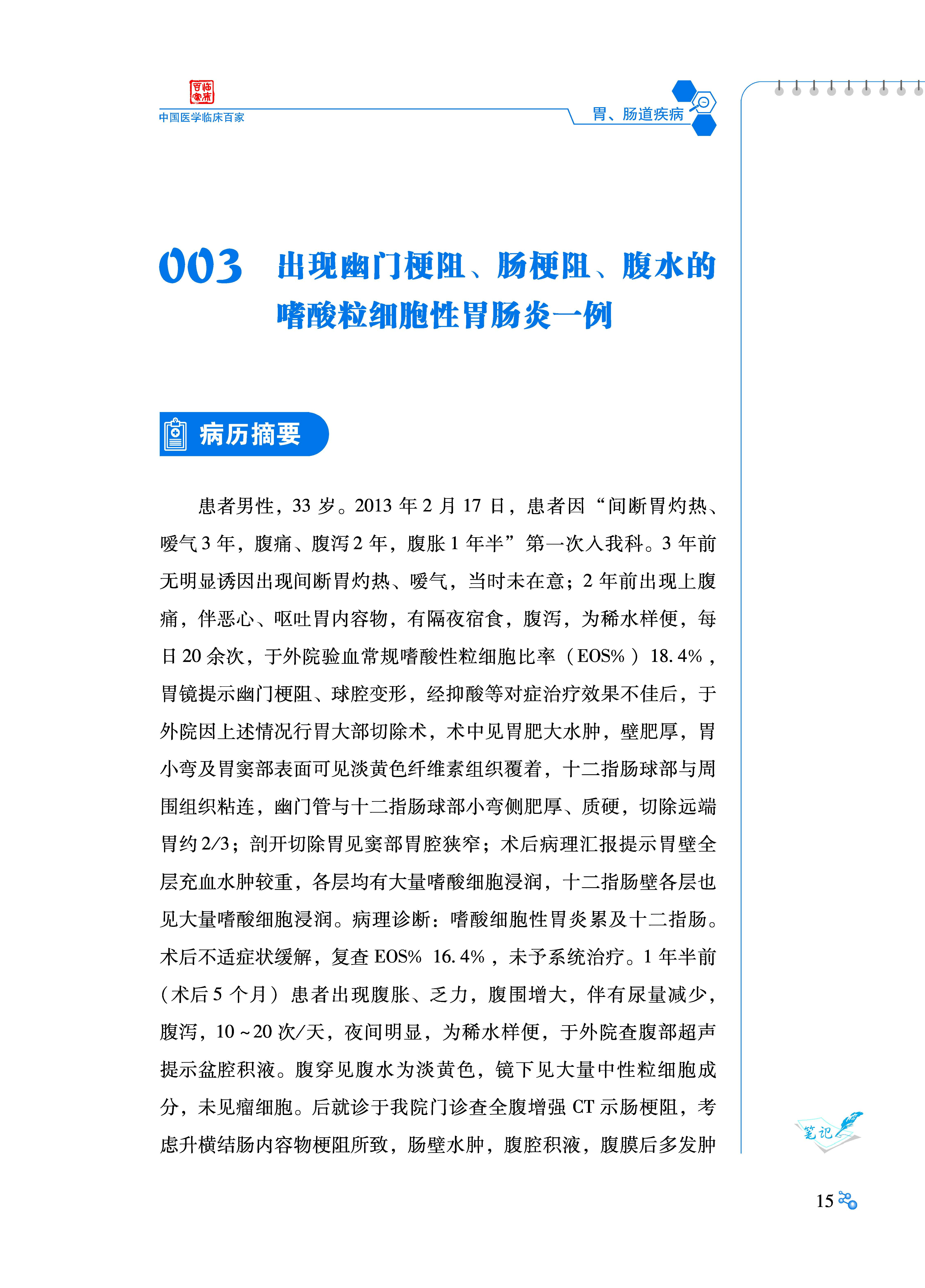 003 出现幽门梗阻、肠梗阻、腹水的嗜酸粒细胞性
