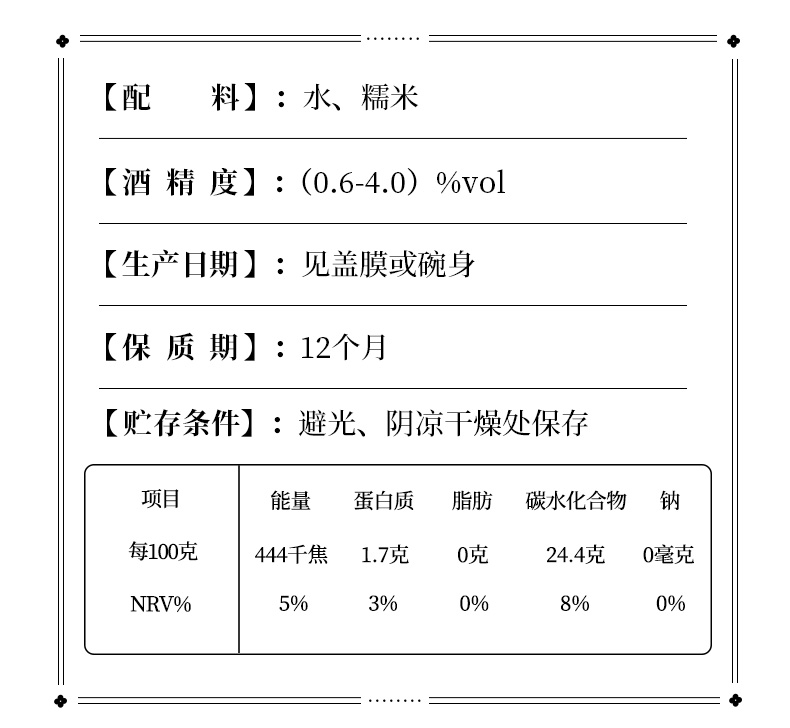 祖名甜酒酿 米酒400g(固形物含量≥48%)
