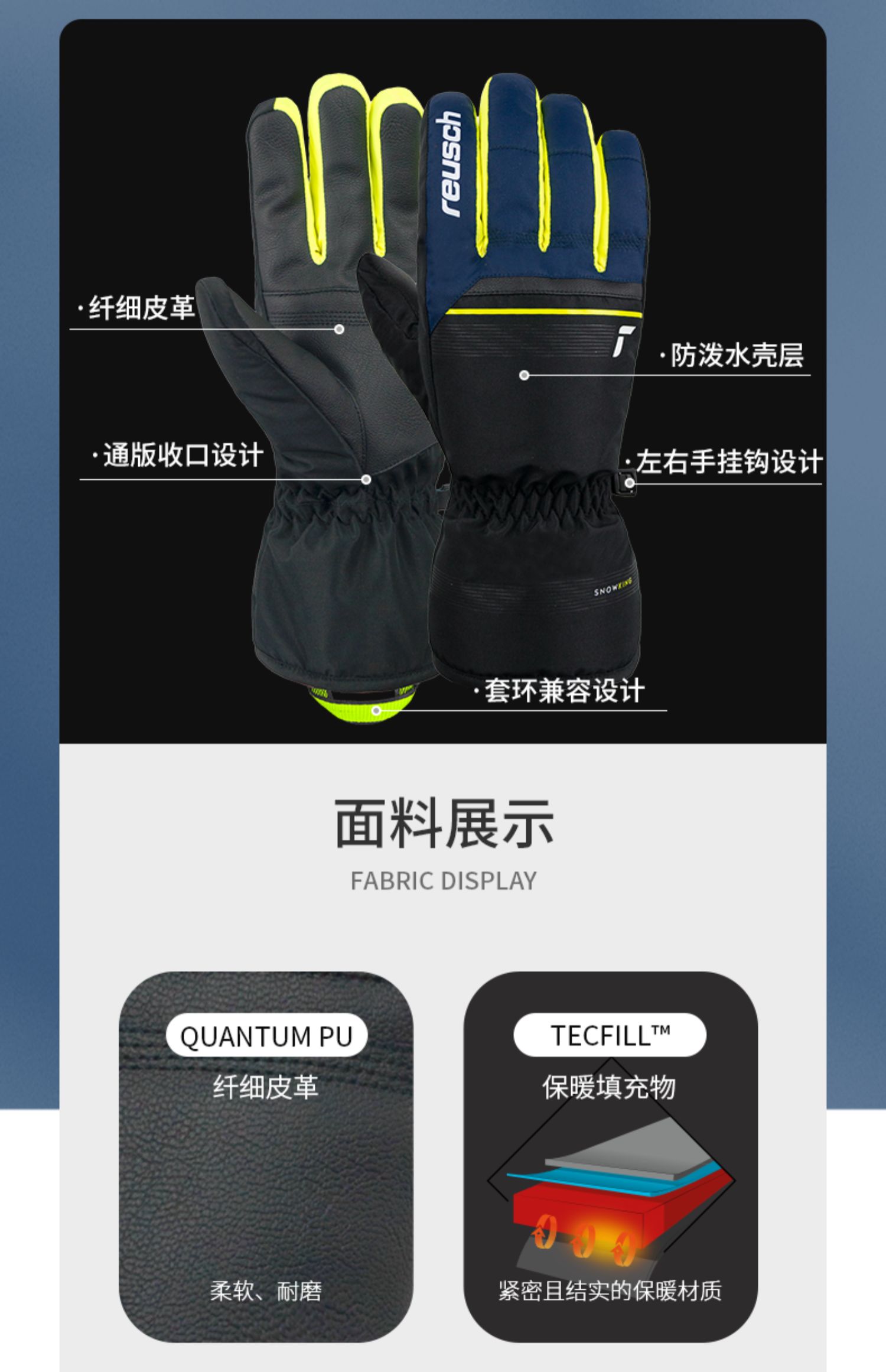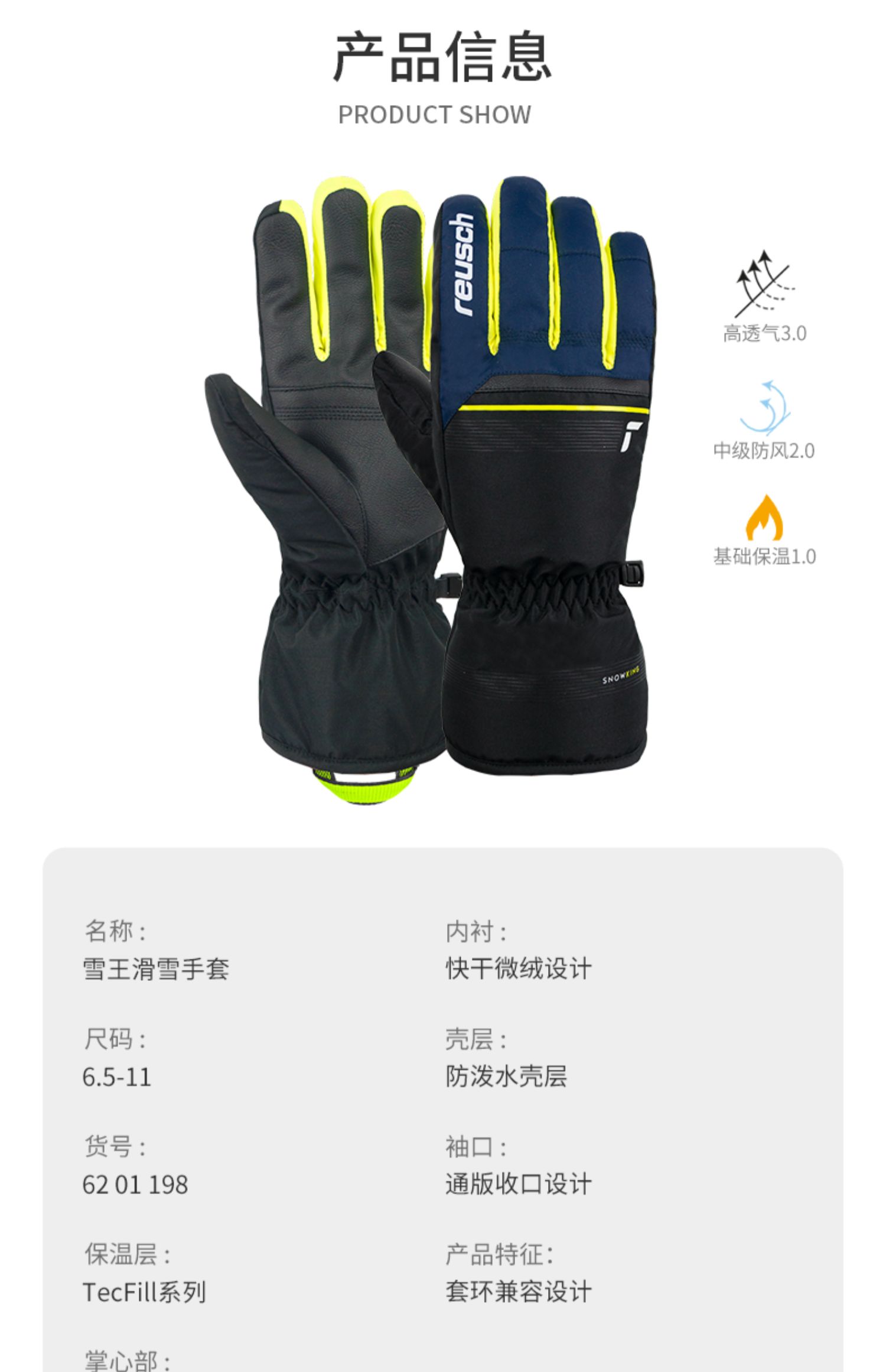 Reusch炫驰男女分指款保温基版高山滑雪手套6201198