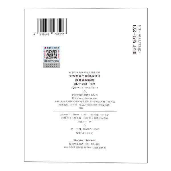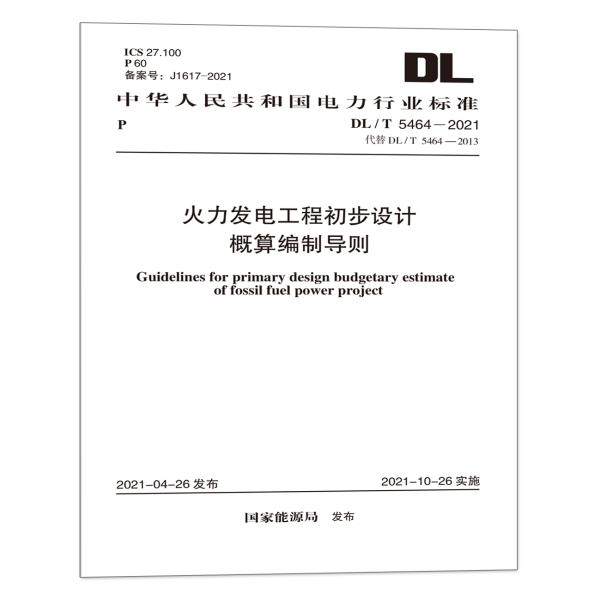 | 书 名 | DL/T 5464-2021 火力发电工程初步设计概算编制导则 |