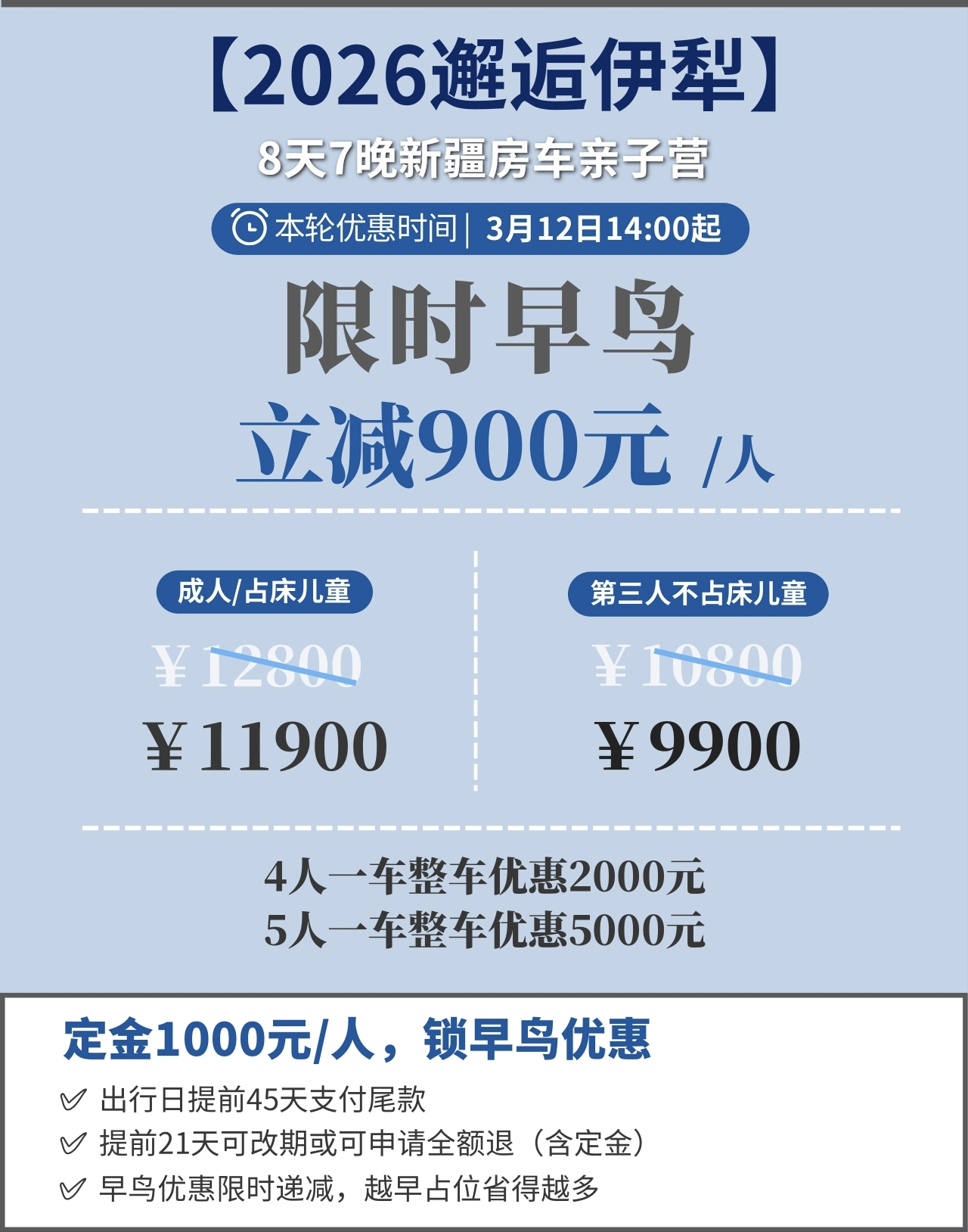 第二波立减900!付定金抢位!暑假邂逅伊犁 | 新疆房车8天7晚亲子营,6年经典5星好评!赛湖+那拉提+独库顶流齐聚,唐拉布草原露营,全程房车+精华路线+自然游学+异域人文+高配比人员