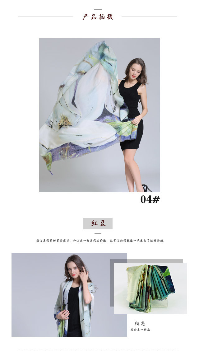 优品堂【花影摇曳】围巾、薄披肩、空调巾三用长巾