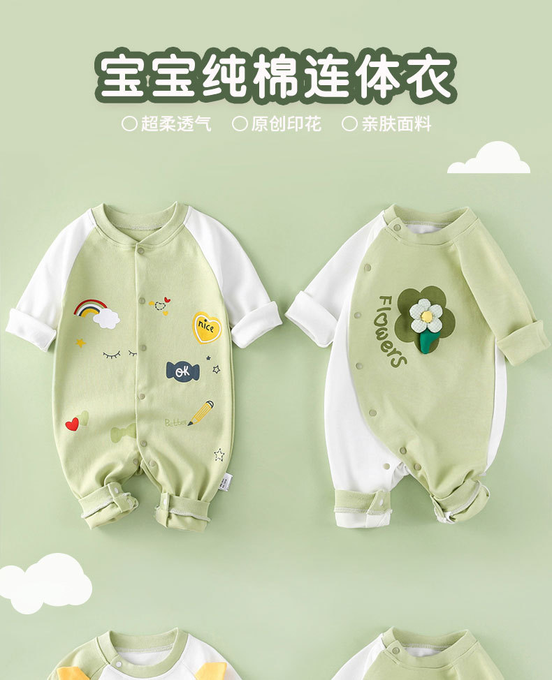 【超柔透气纯棉连体衣】新生婴儿衣服春秋季满月宝宝纯棉连体衣男女周岁哈衣长袖爬 服可爱