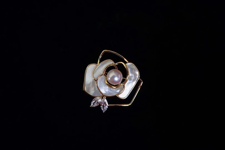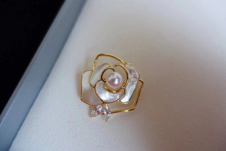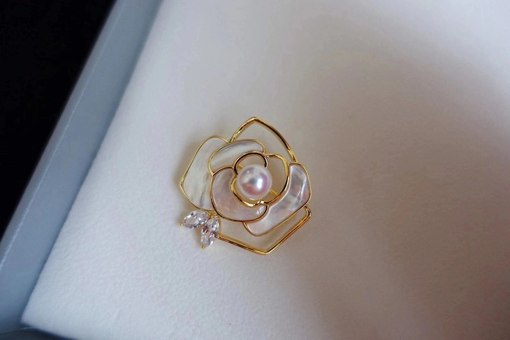新款白蝶贝山茶花胸针,光泽很绝
