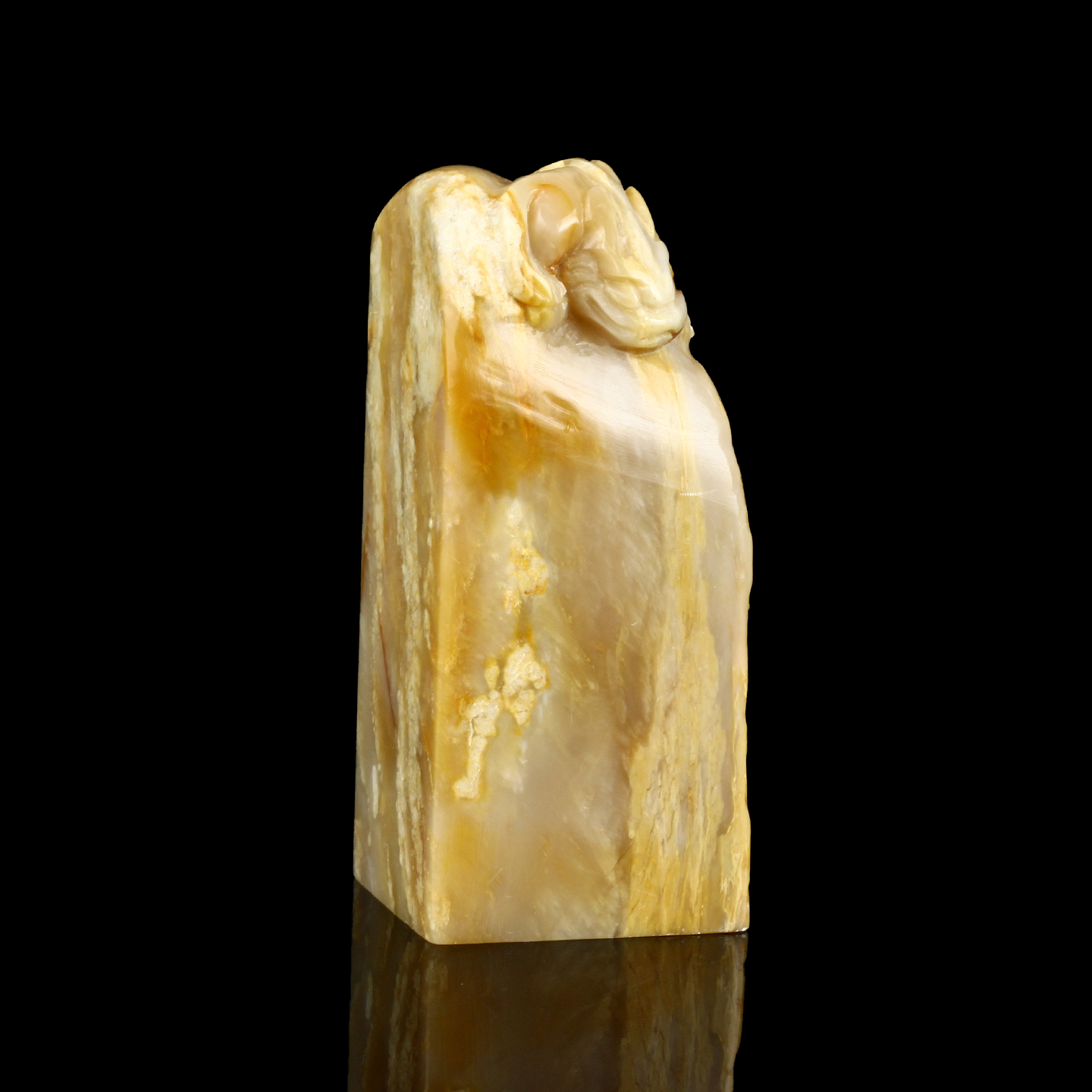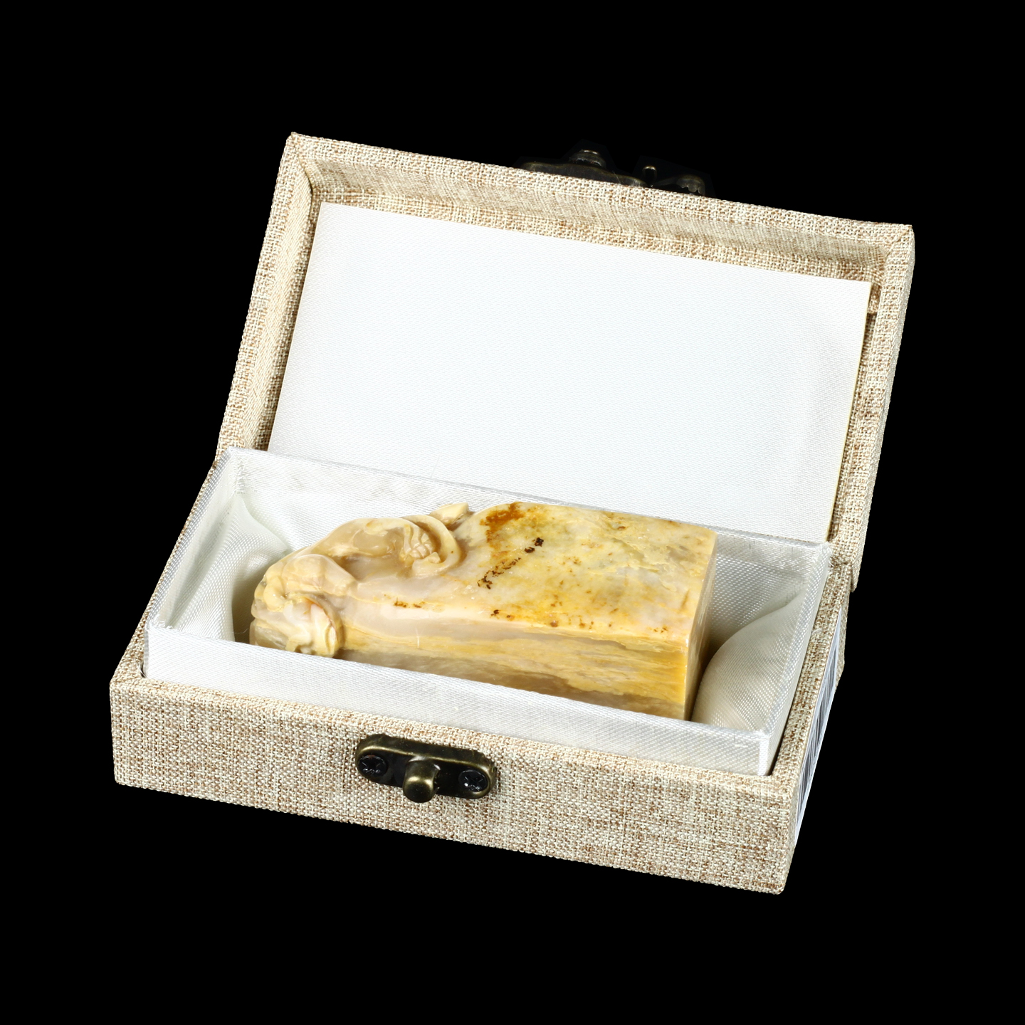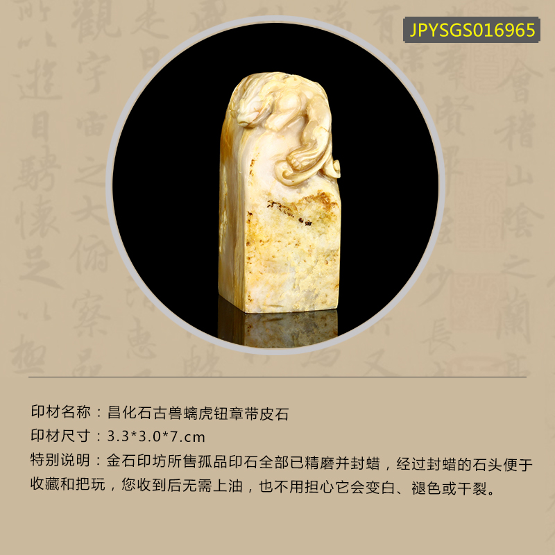 孤品016965-昌化石古兽螭虎钮章带皮石3.3*3.0*7.cm