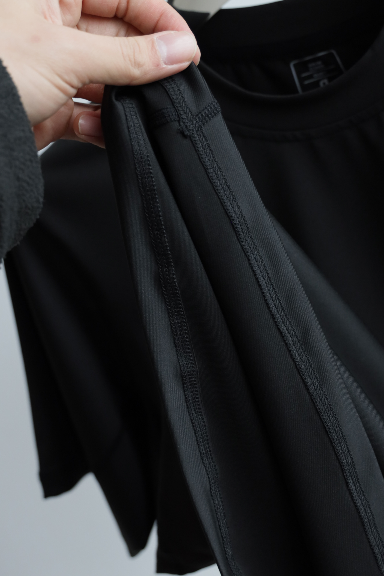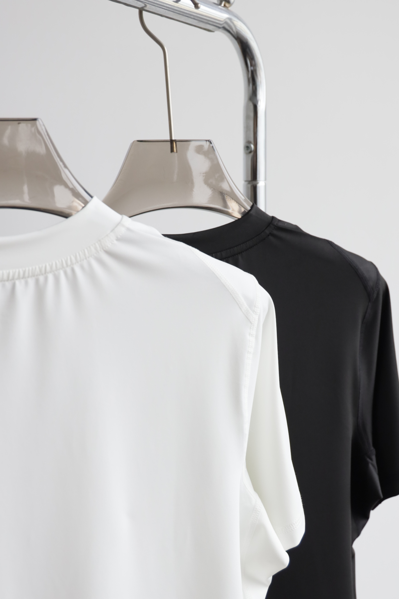 立领拼接锁边,腋下肩部都做了加宽剪裁,高密度面料,白色不透