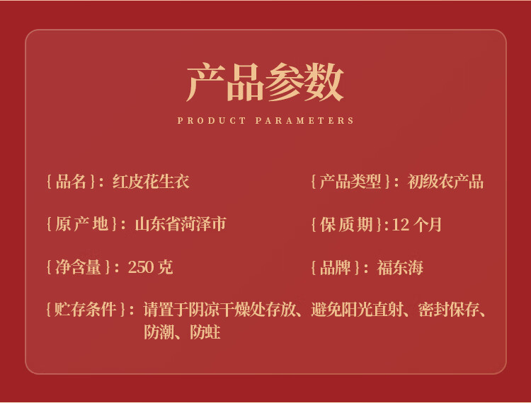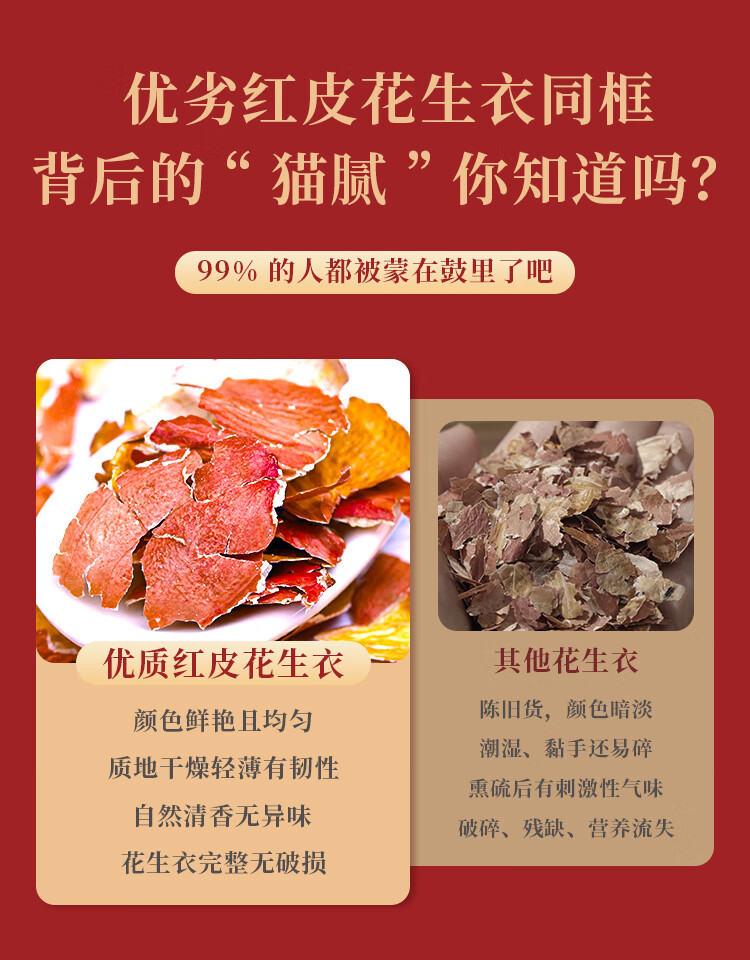 福东海 红皮花生衣250克 五红汤原料新货升花生皮搭血小板
