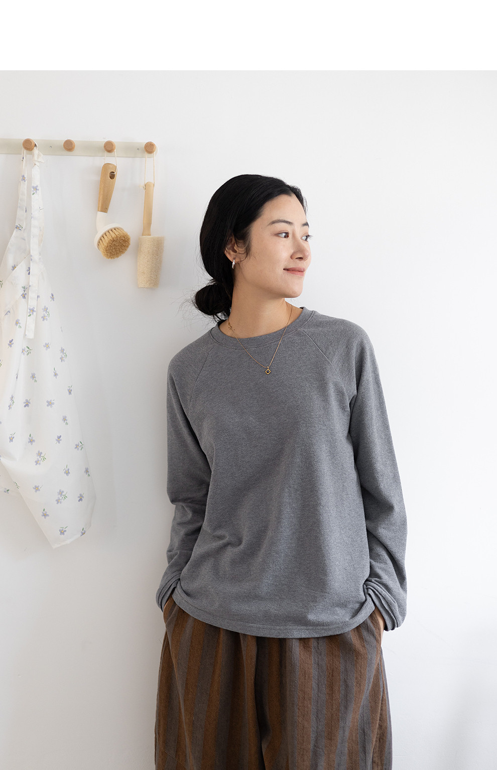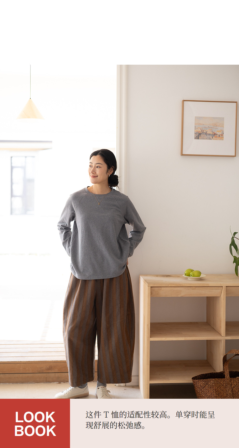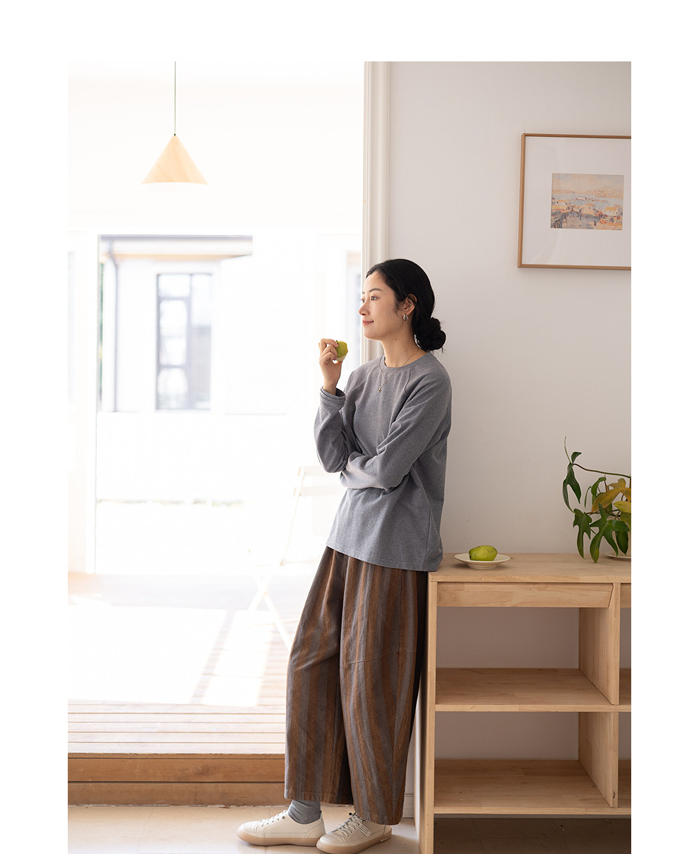 绽放047朵/纯棉花纱竹节肌理长袖T恤松弛感插肩袖简约内搭打底衫