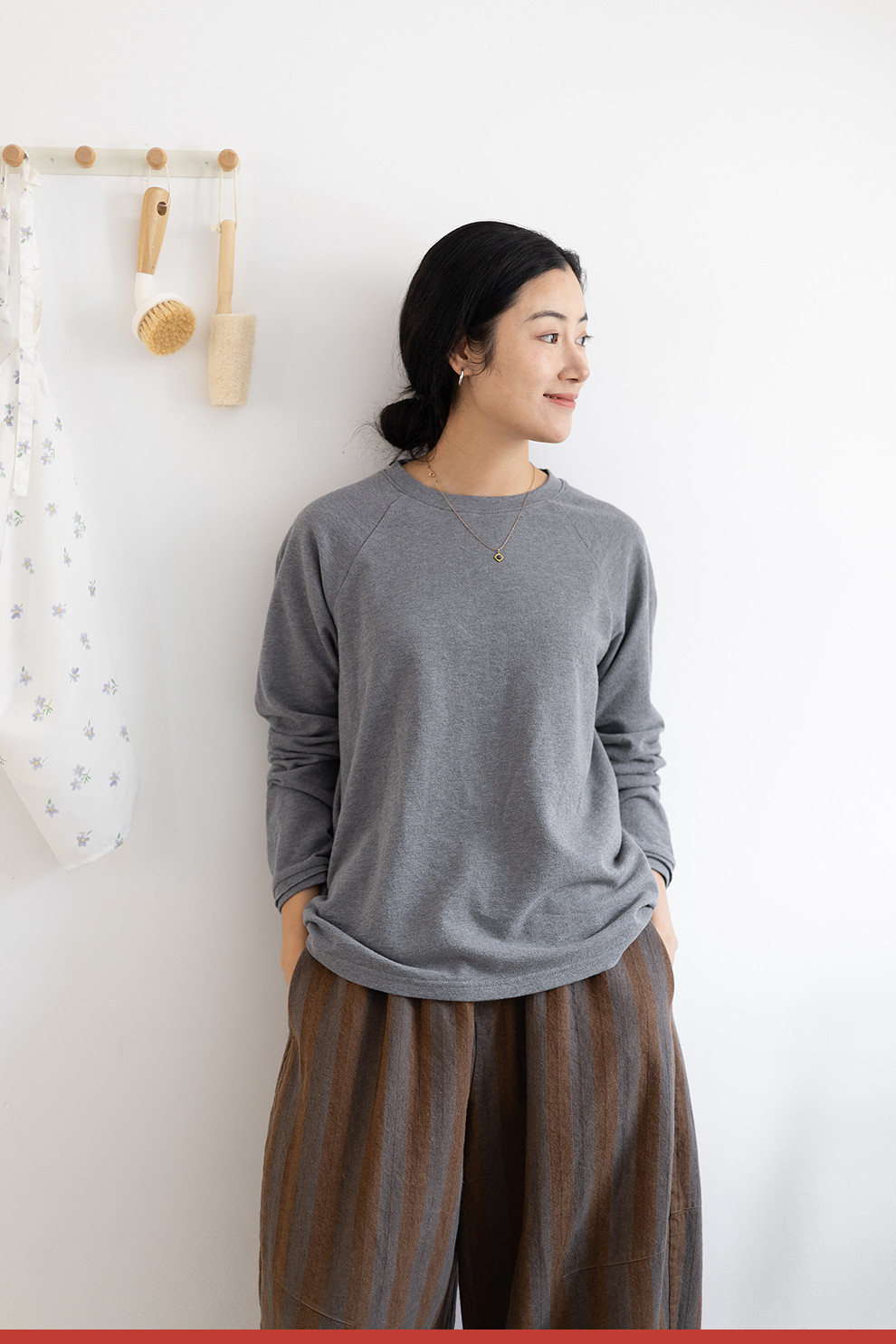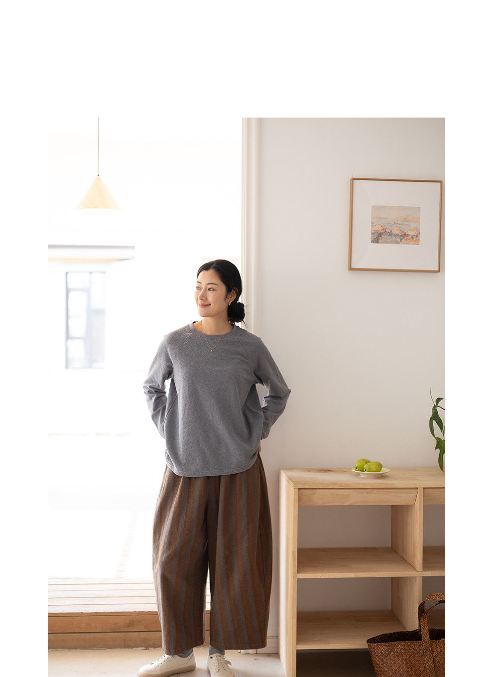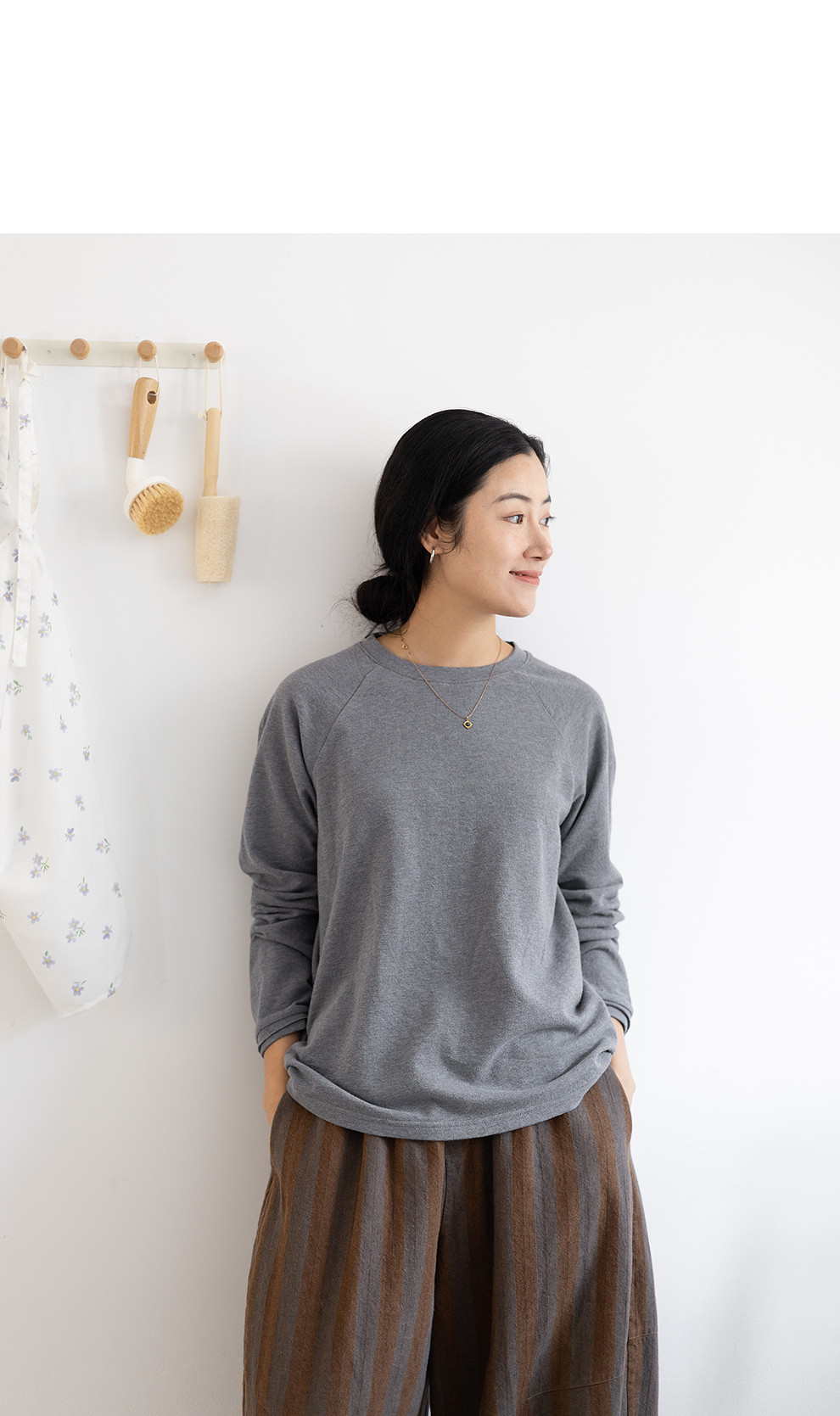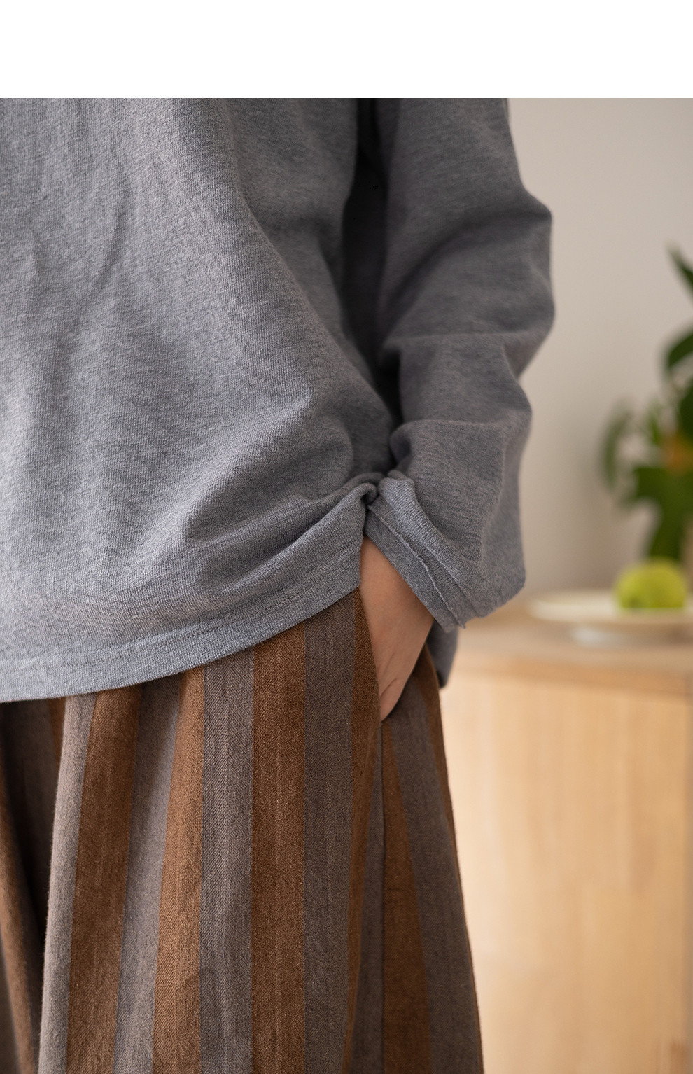 绽放047朵/纯棉花纱竹节肌理长袖T恤松弛感插肩袖简约内搭打底衫