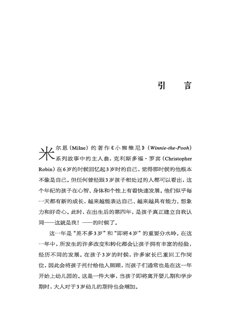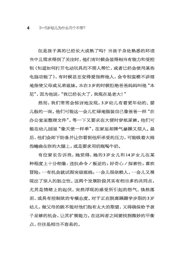 本书对3岁的孩子如何脱离学步期、扩展社交环境及情感世界提供了详尽说明,包括规矩的养成、面对分离时的处理方式、睡眠和如厕训练以及如何引导孩子在游戏中发挥想象力。在4—5岁,社交互动与情绪发展会遇到许多重要议题,包括认同、同伴间的游戏、如何面对疾病与丧失,以及如何利用游戏与想象力来处理所面临的难题。