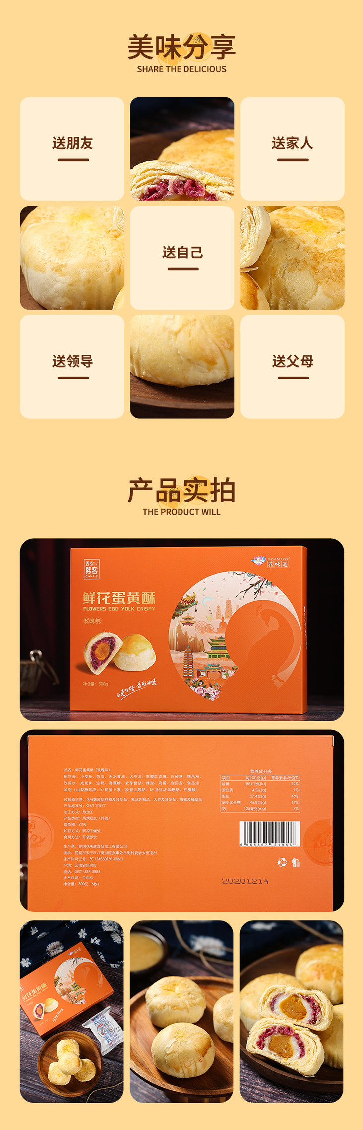 【花味道】云南特色产品 玫瑰鲜花蛋黄酥2盒装
