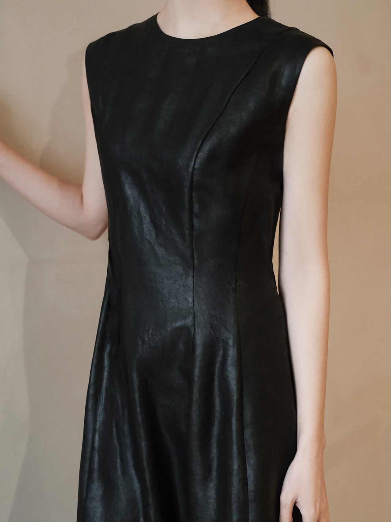 盛唐婧 | 本色行云重磅真丝香云纱时尚无袖连衣裙