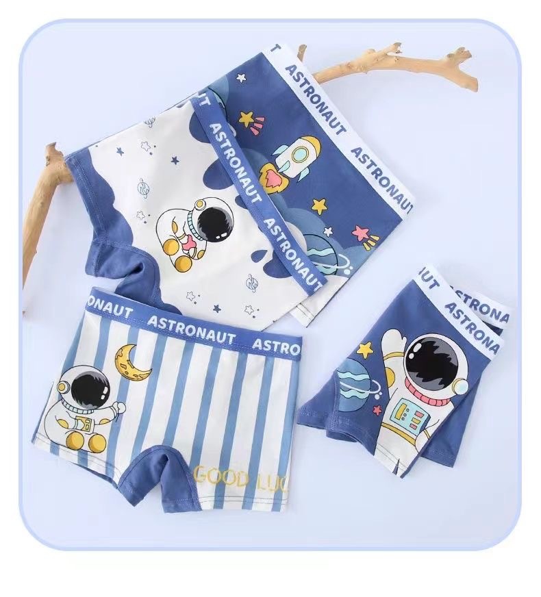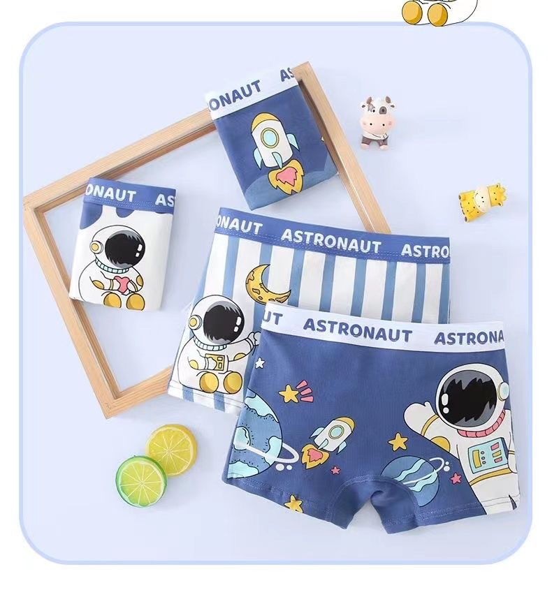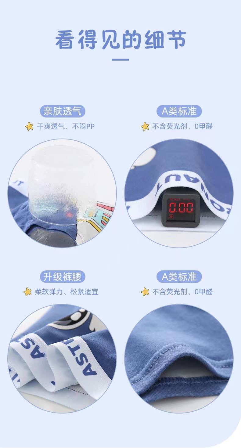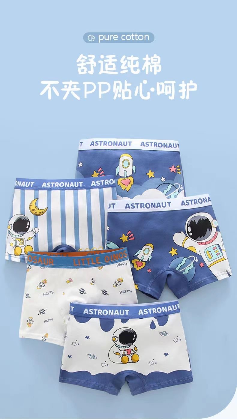 【清凉一夏,无感体验男童内裤】男童内裤纯棉平角儿童全棉四角裤,A级艾草抑jun干爽透气3D裁剪不夹pp,环保活性印染久洗不褪色头短裤男宝宝小童男孩柔软宇航员QQ