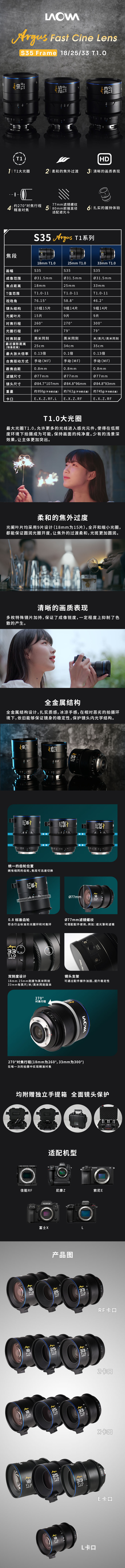 LAOWA老蛙 S35 Argus 18mm/25mm/33mmT1.0 S35画幅大光圈电影镜头