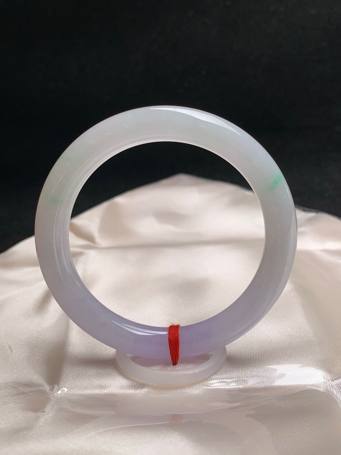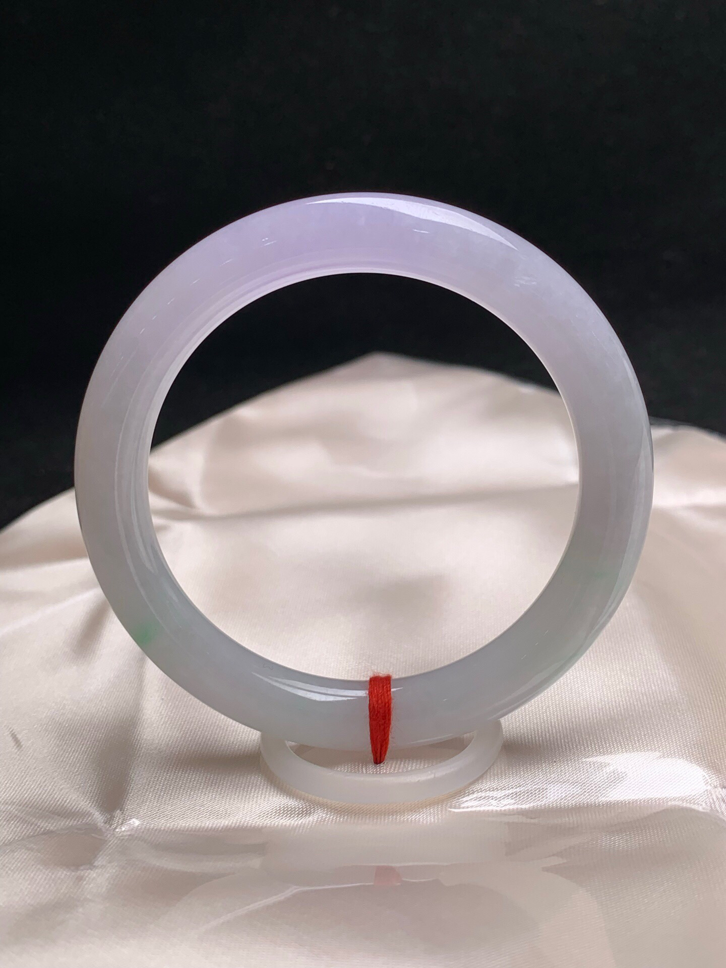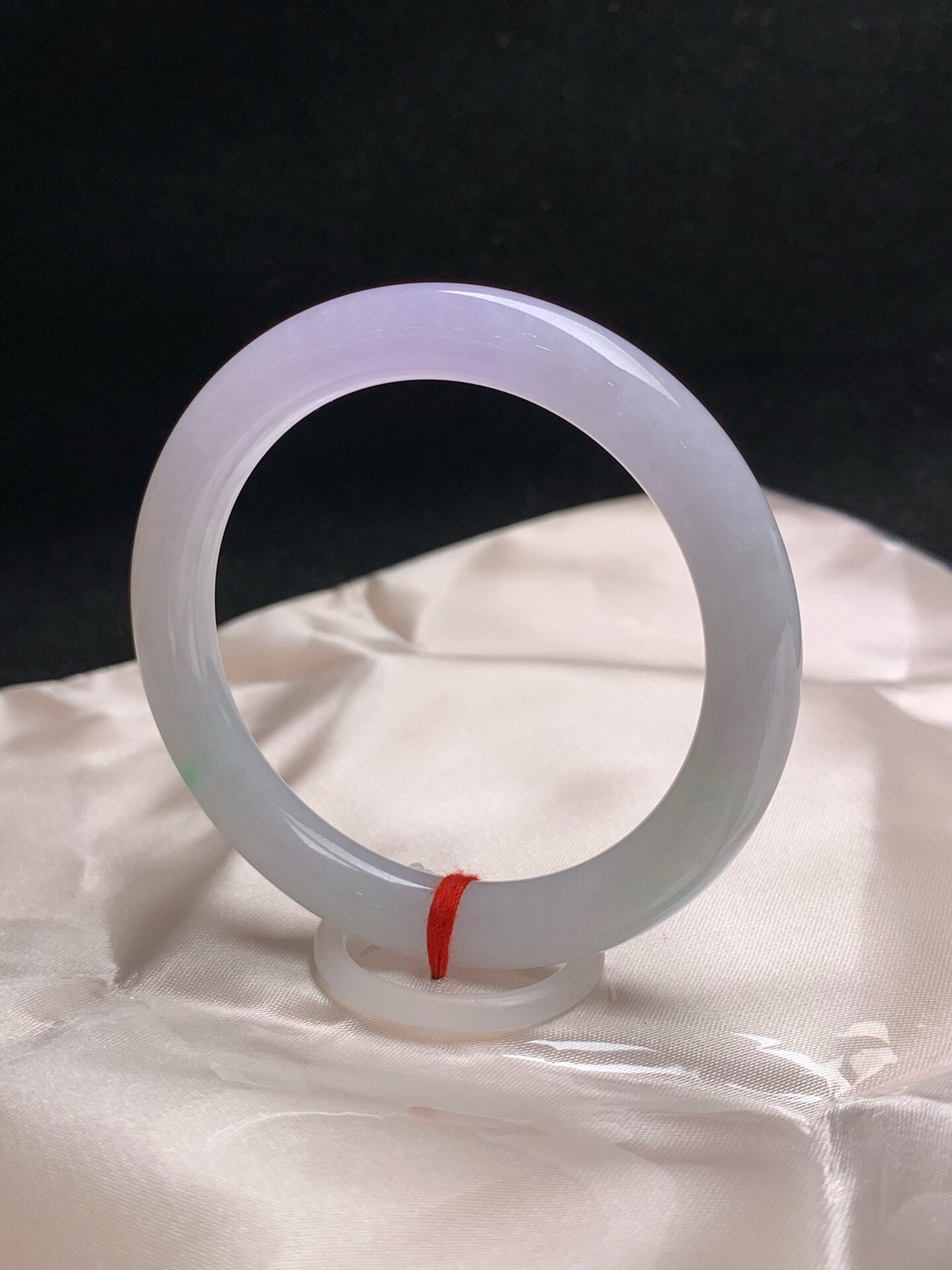 620119,52.2圈口,糯化飘紫细圆条美人条,水头好,半截粉紫色,飘两处绿花