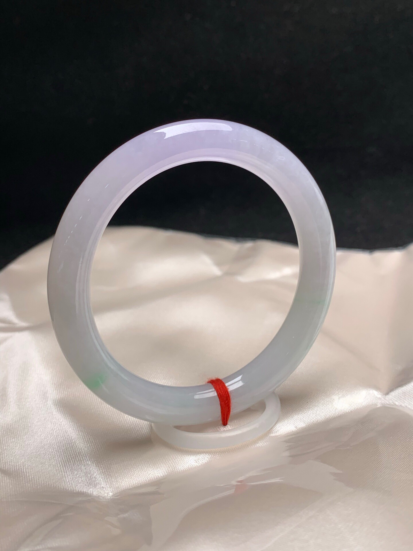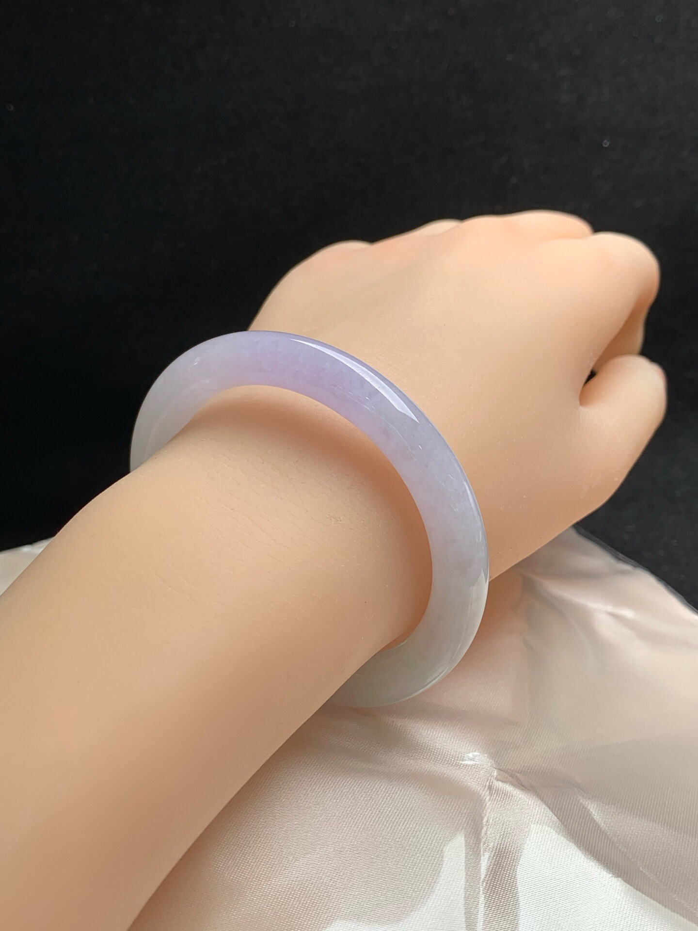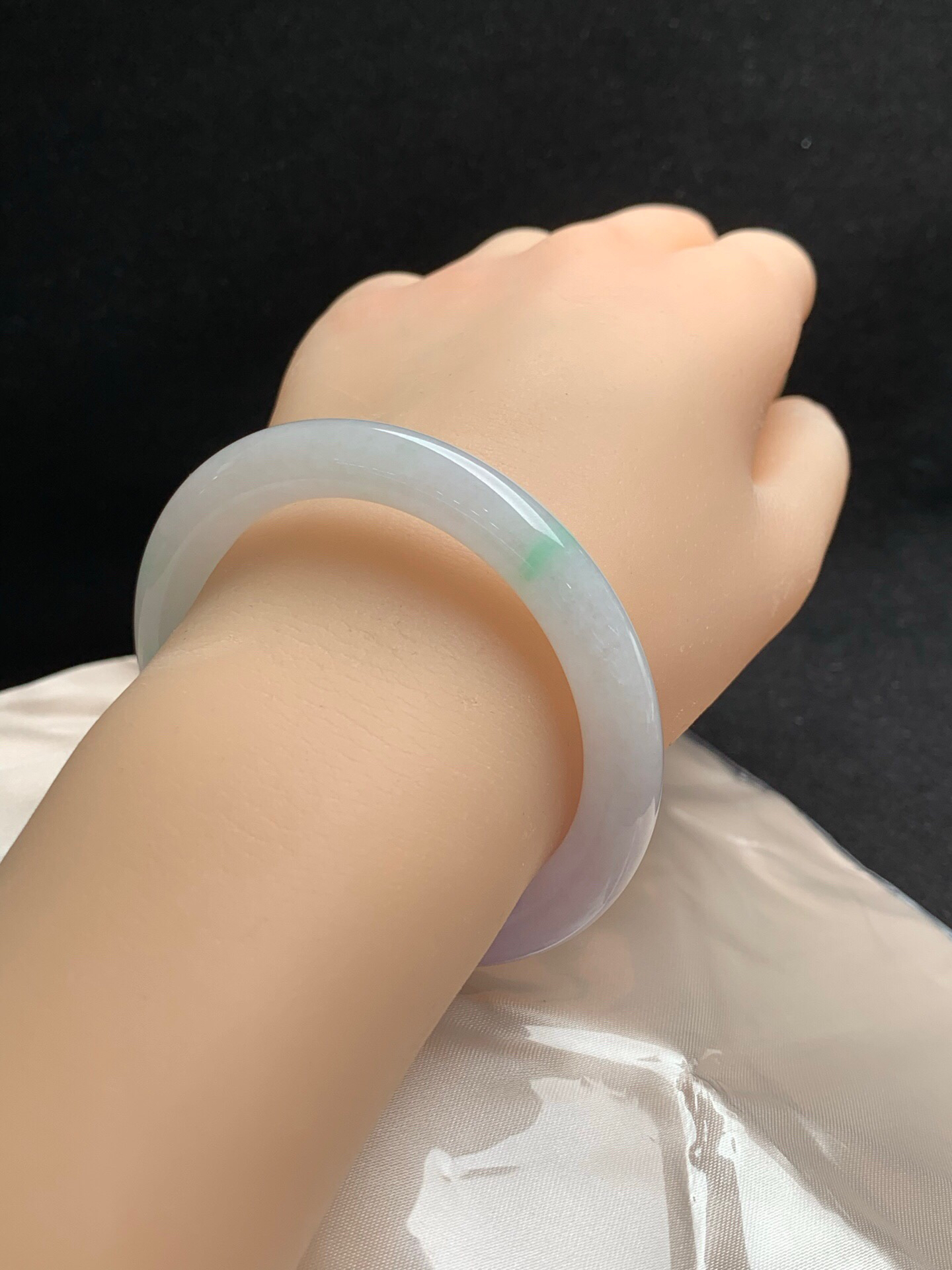 620119,52.2圈口,糯化飘紫细圆条美人条,水头好,半截粉紫色,飘两处绿花