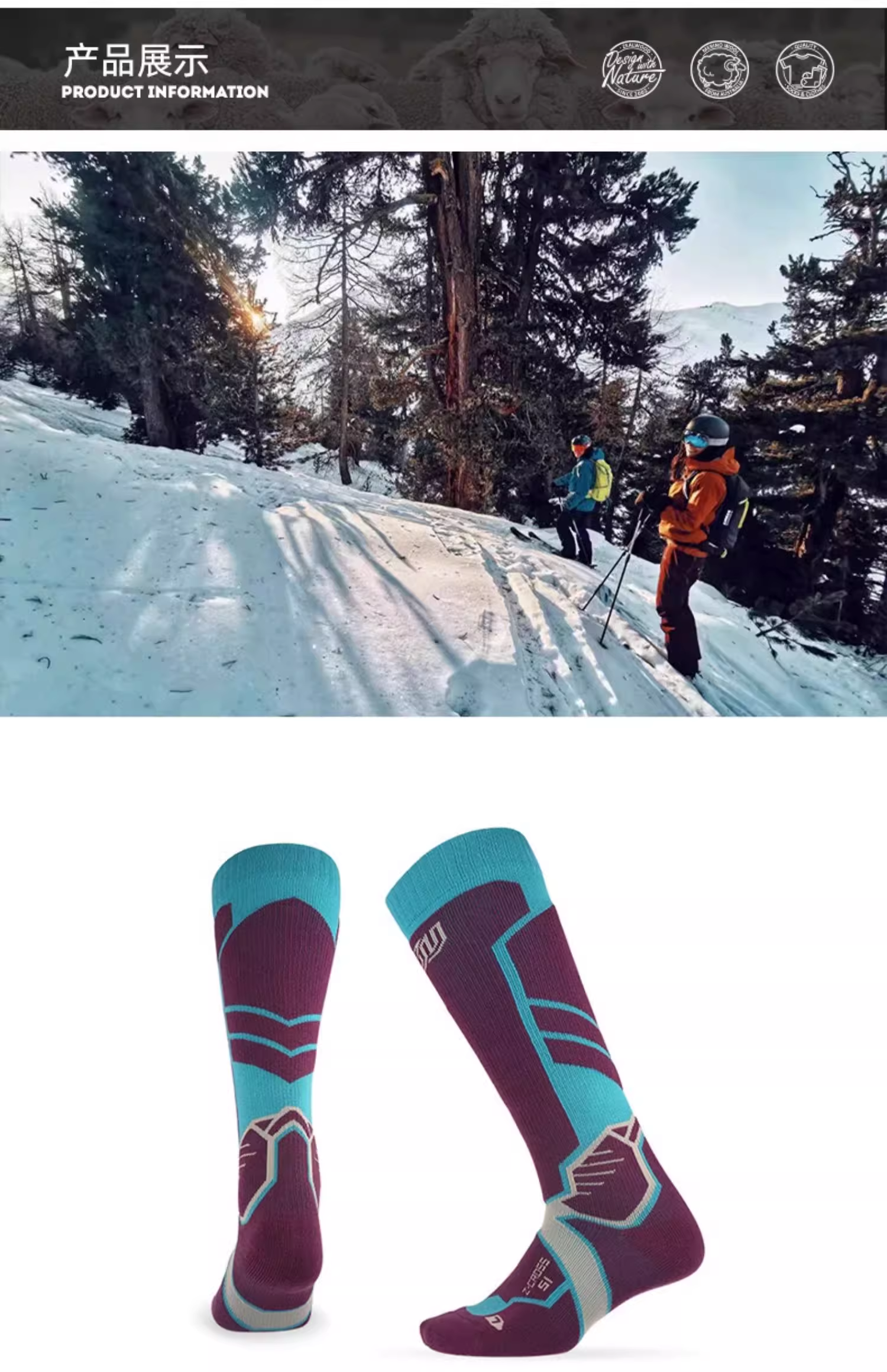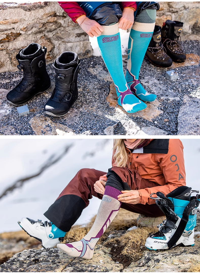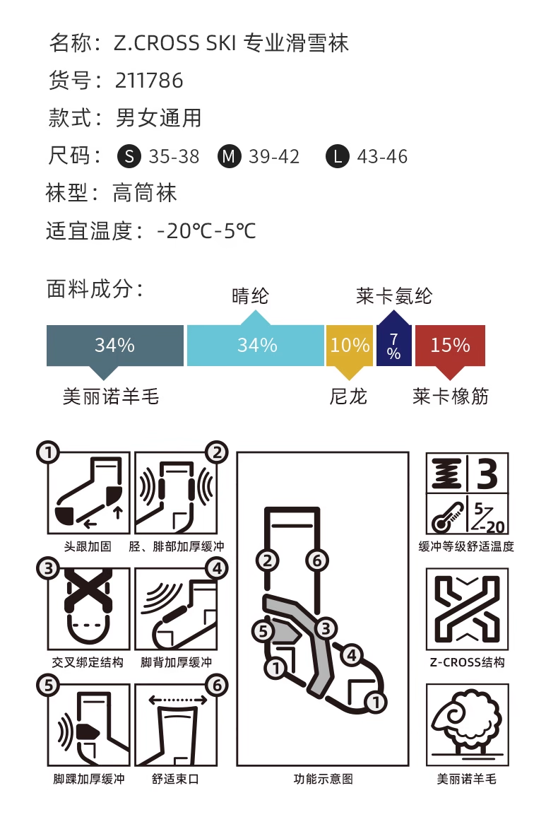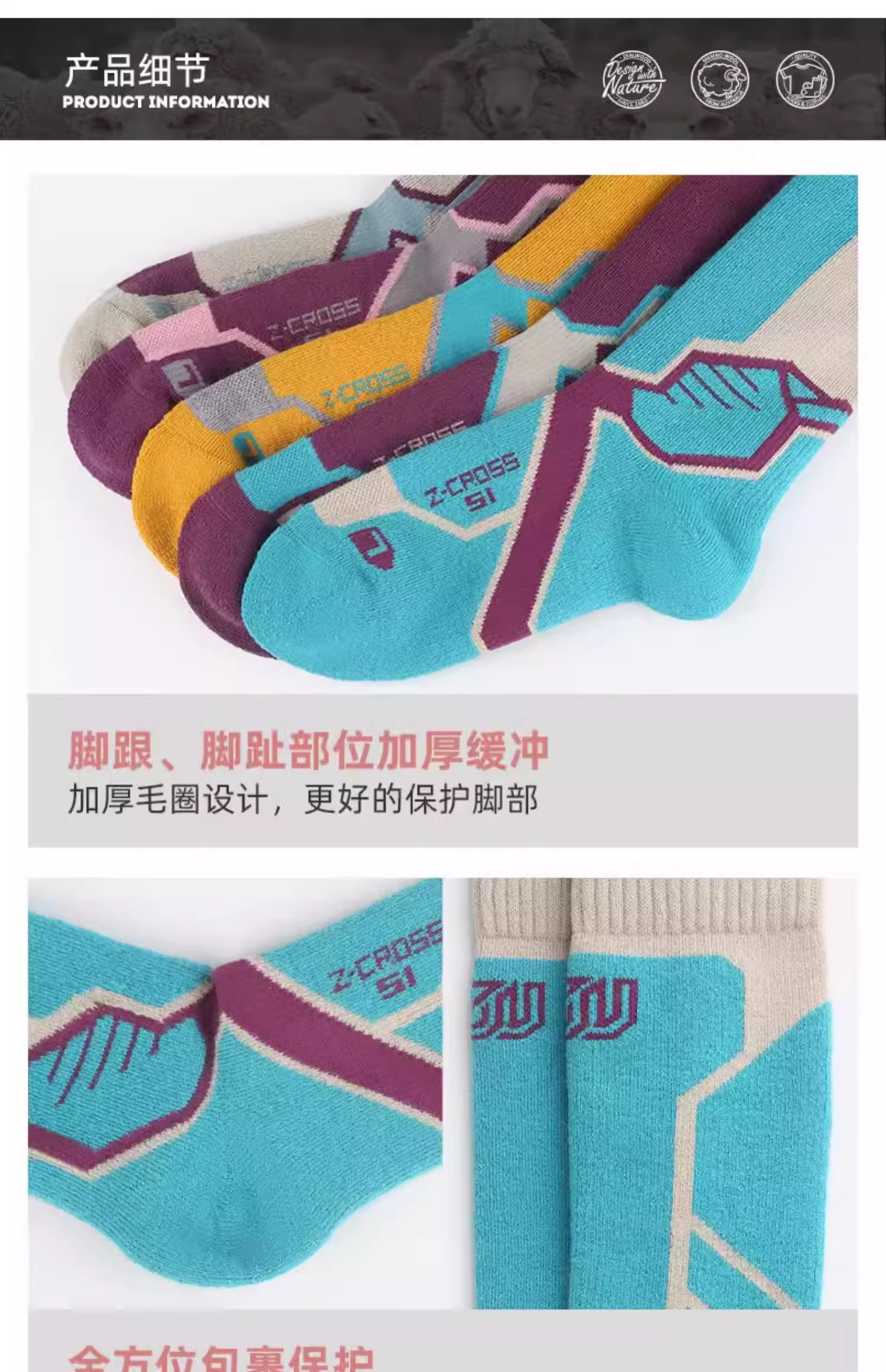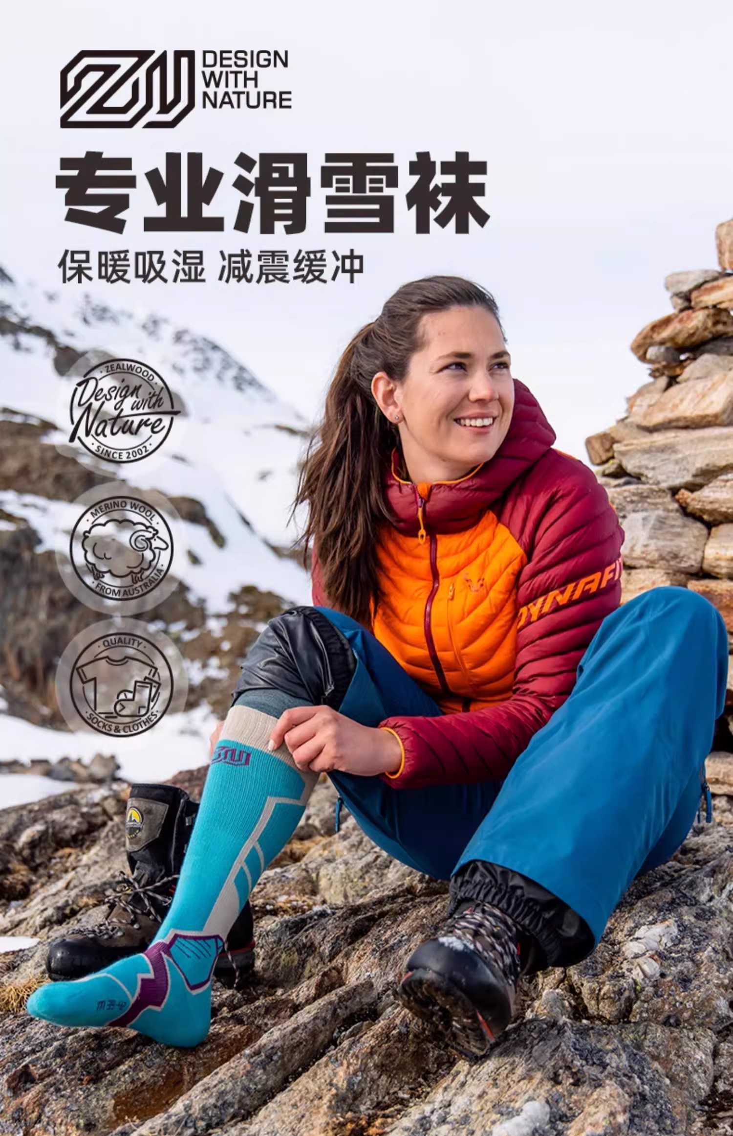 【六折特卖】ZEALWOOD滑雪袜男女保暖美丽诺羊毛长筒高筒毛巾底专业Z-CROSS运动袜