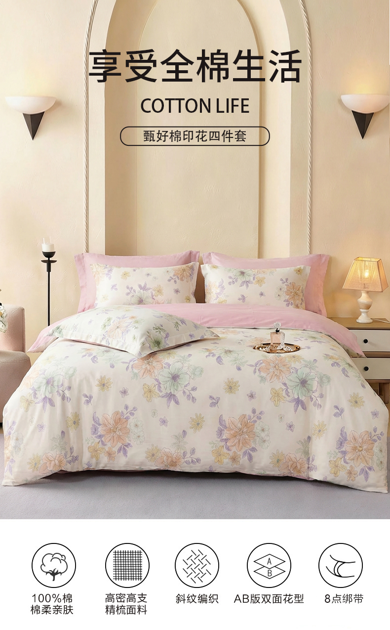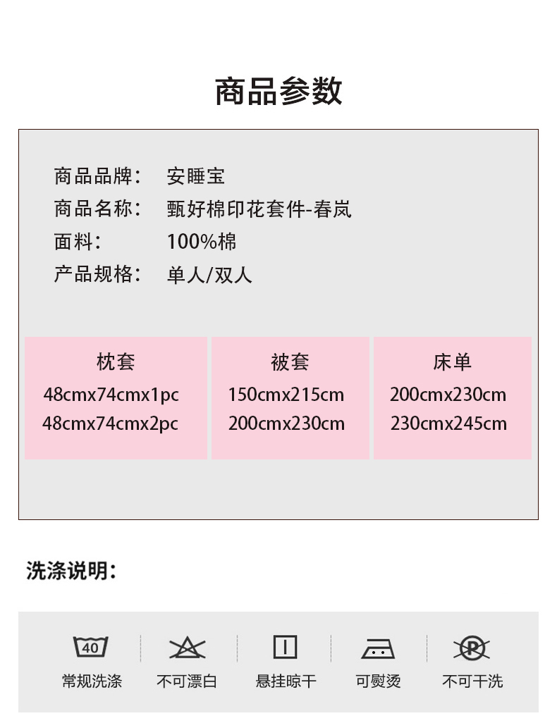 10楼 安睡宝 甄好棉印花四件套-春岚 吊牌价1599-1799元 活动价399-499元