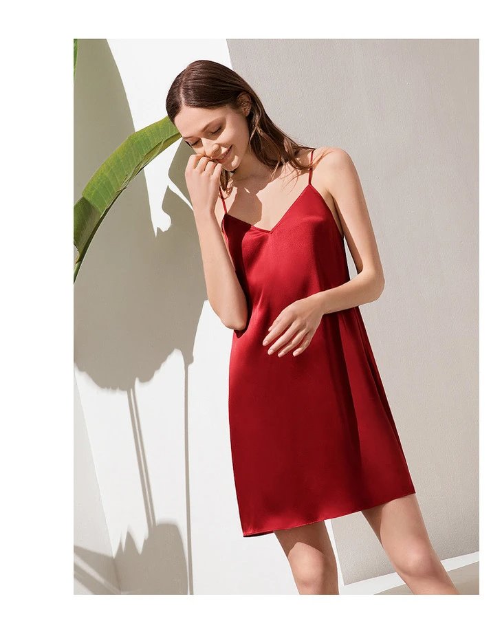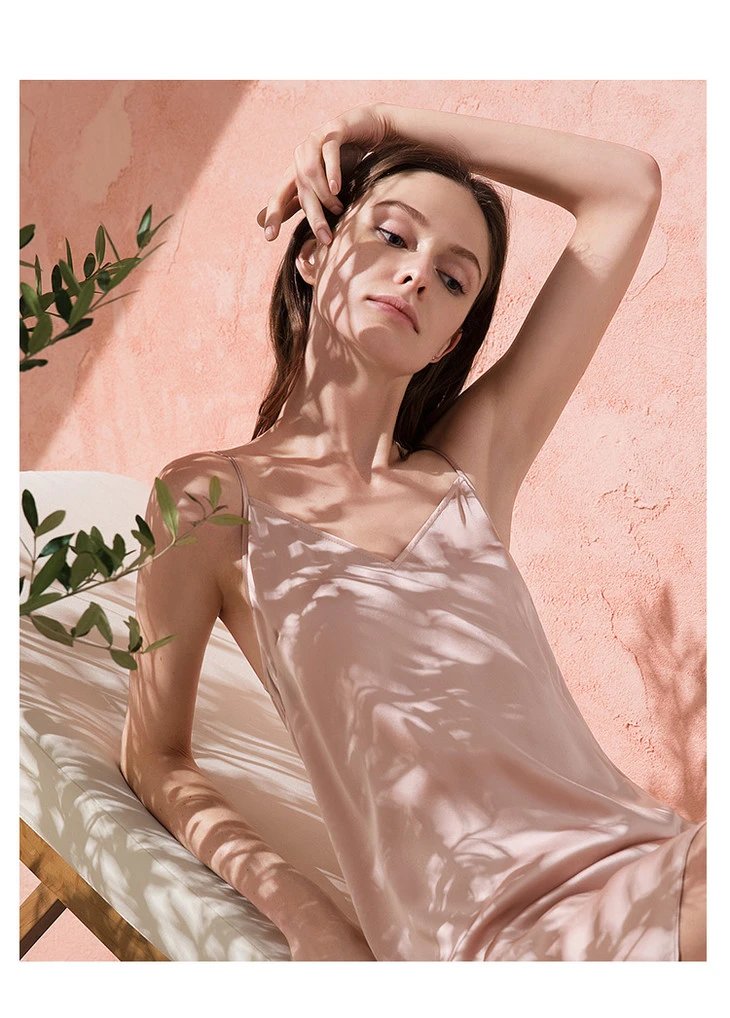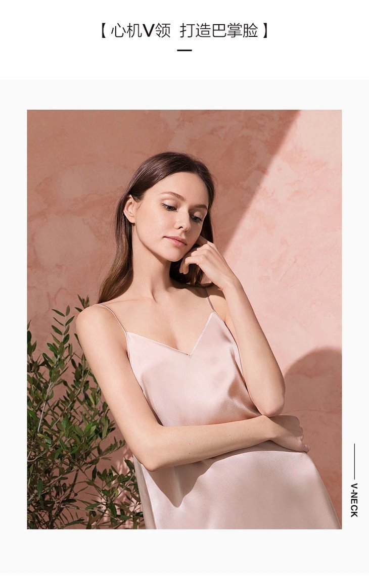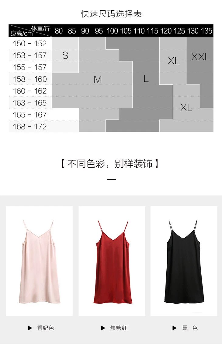 金三塔真丝吊带打底睡裙女100%桑蚕丝丝绸性感可外穿家居服衬裙睡衣YSF9B302