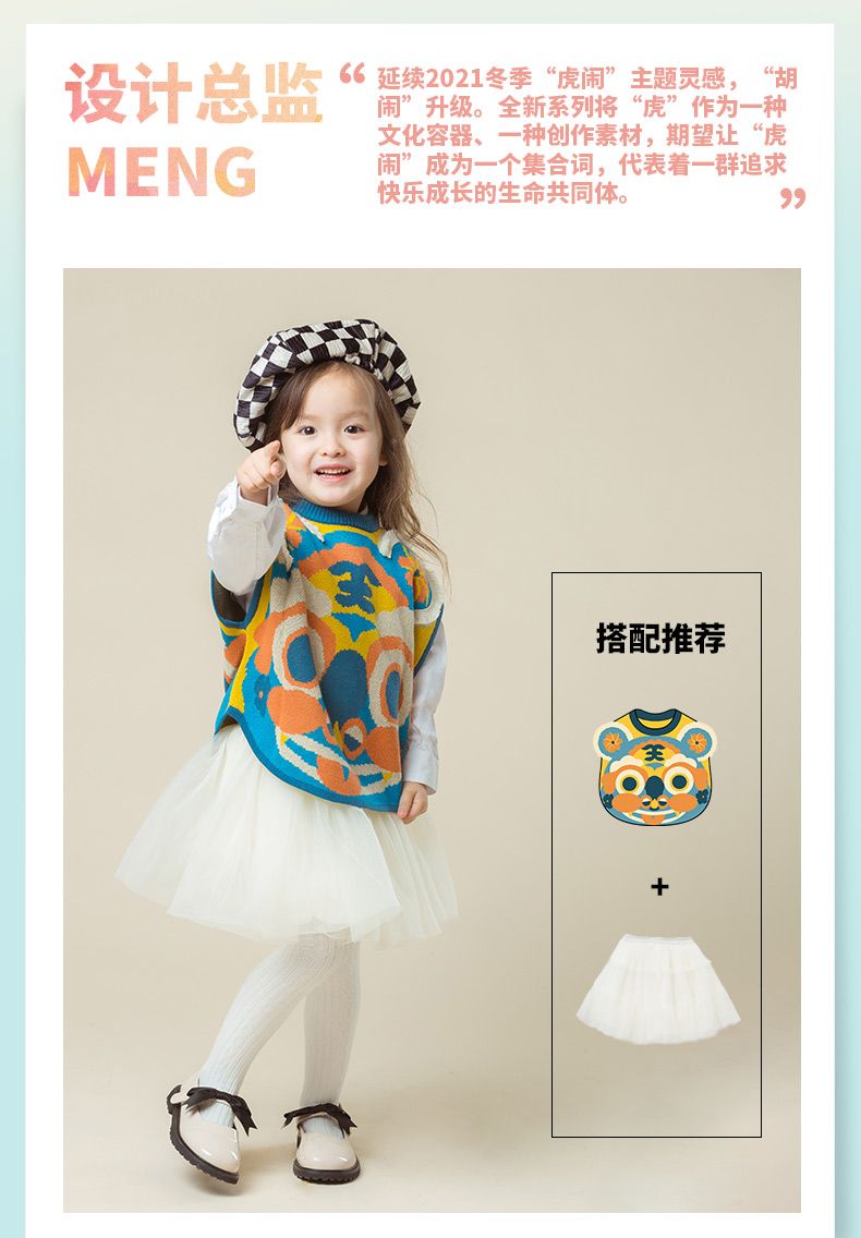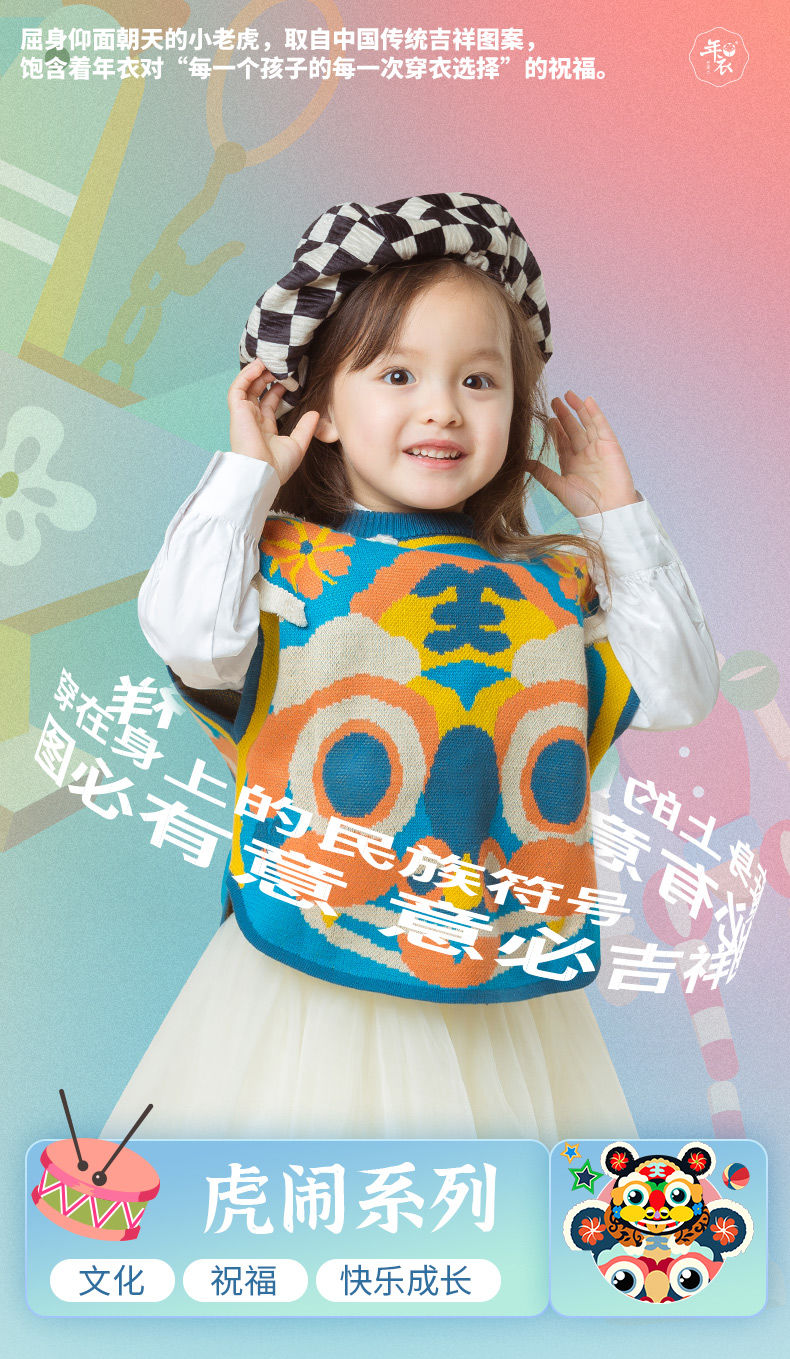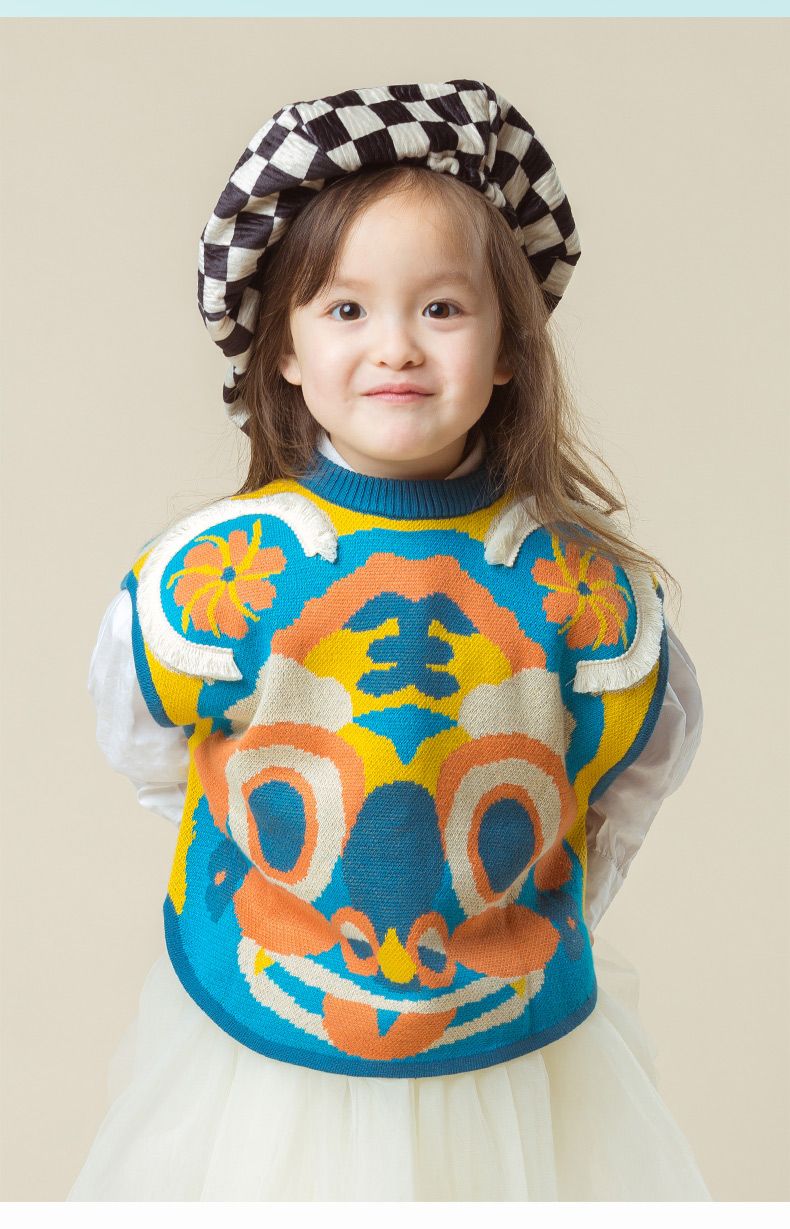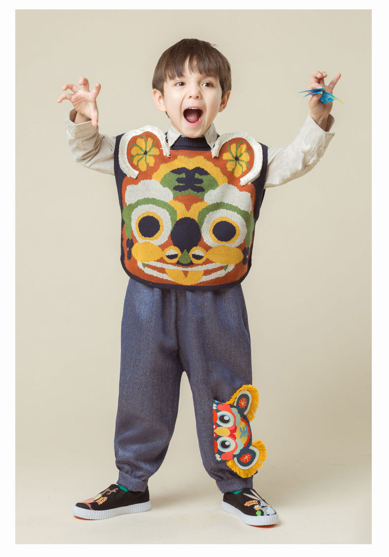 新款男女童毛衣马甲时尚卡通中国风老虎儿童背心坎肩