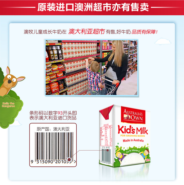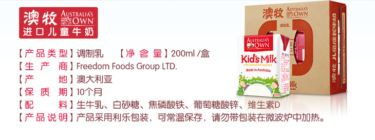 【产品名称】:澳牧进口儿童牛奶200ml*15装