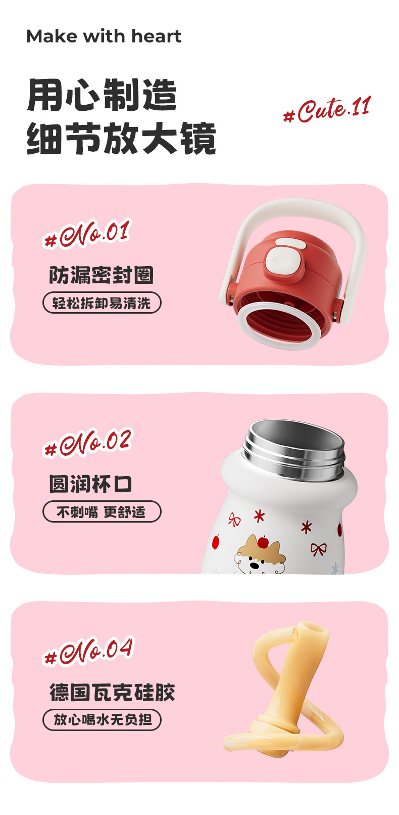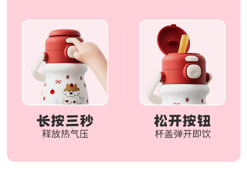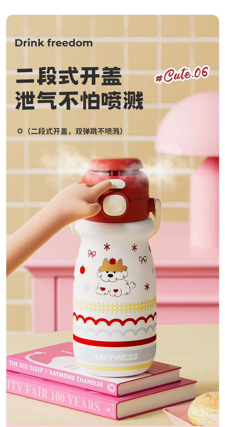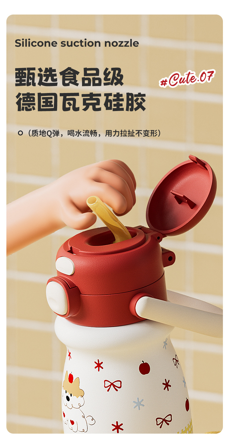 小奶狗卡通儿童双饮弹跳吸管水杯带手柄便携随手杯子不锈钢保温杯