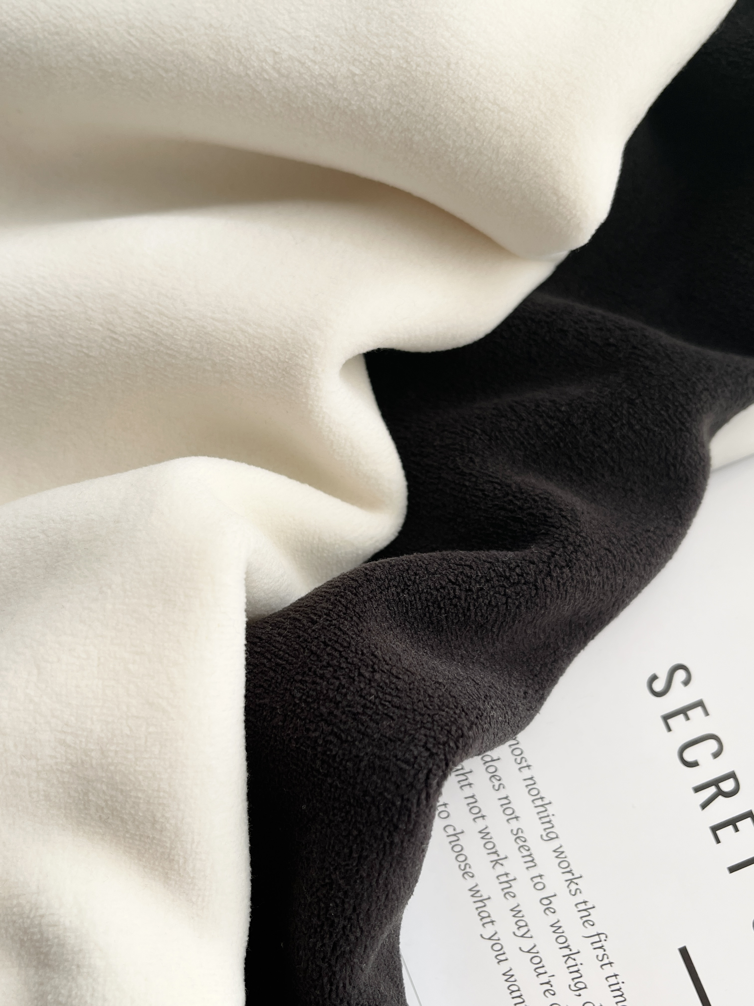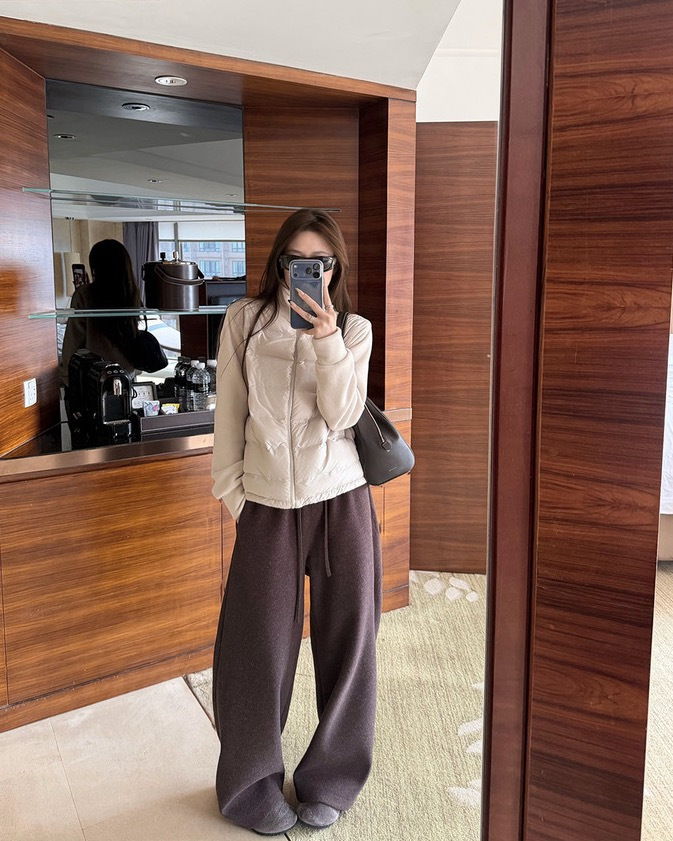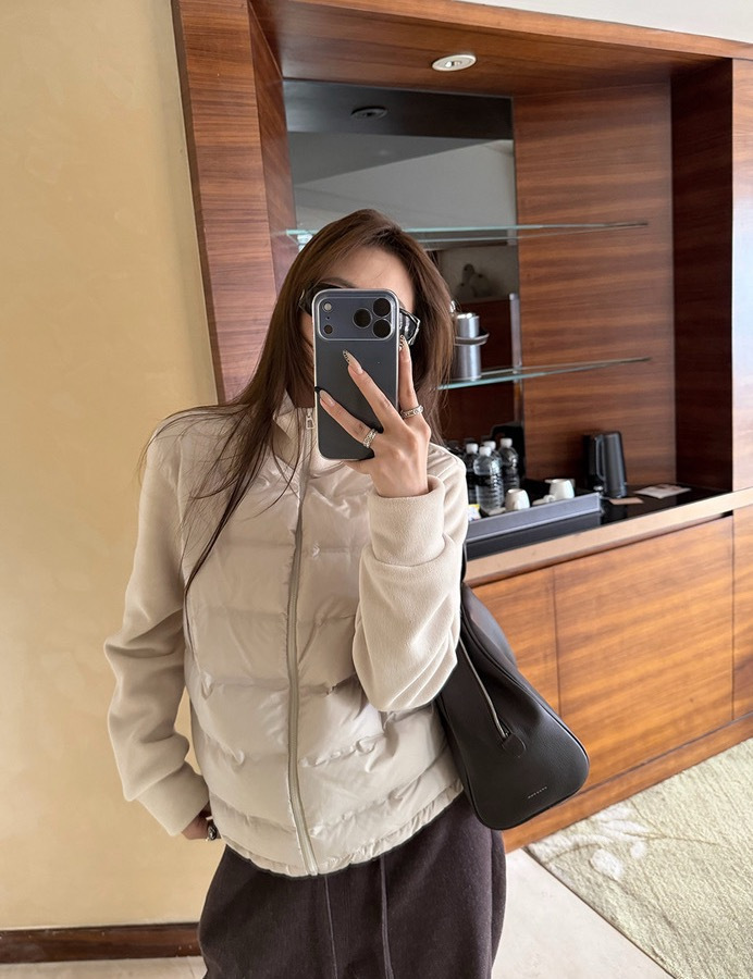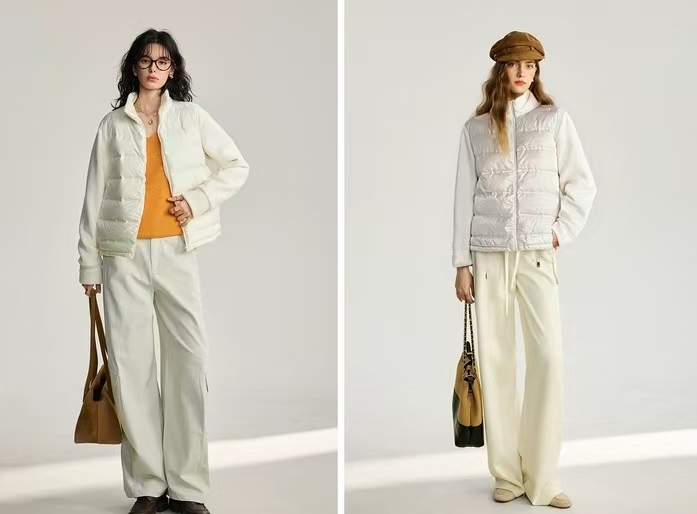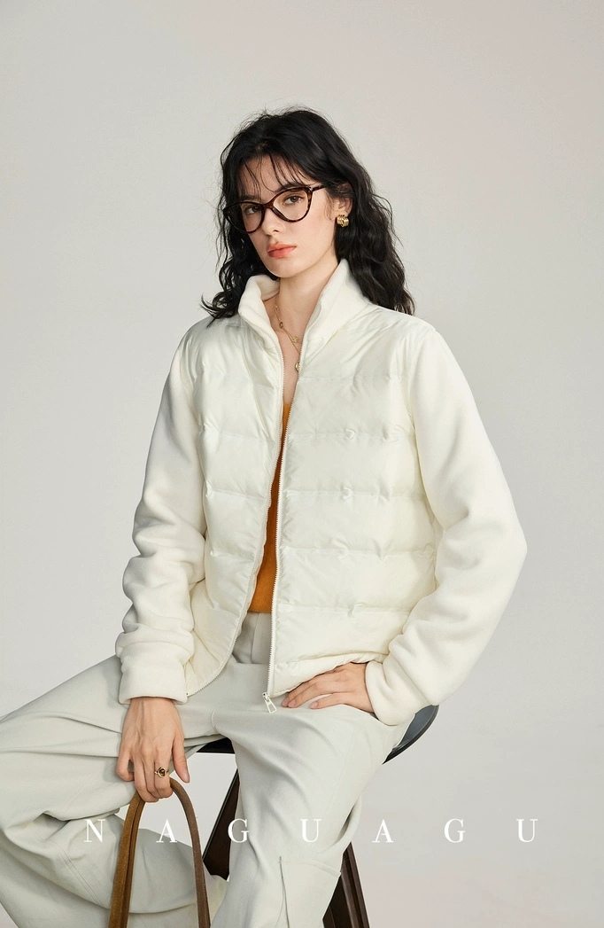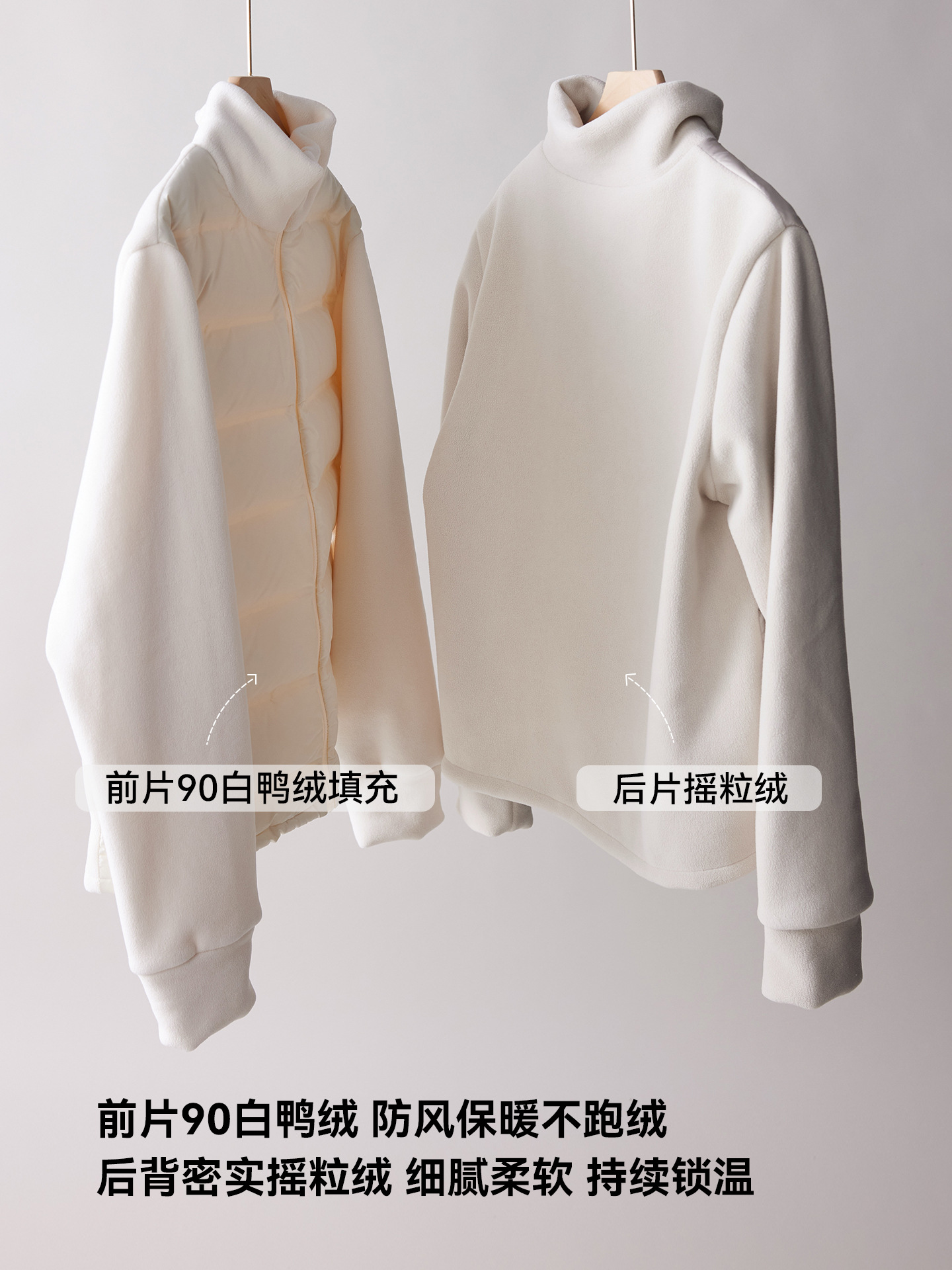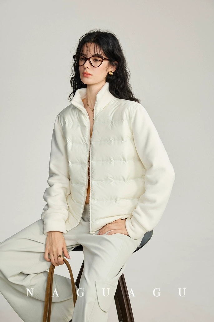 拼接双面绒材质,外层短绒里层长绒,软糯带弹,亲肤细腻!整体轻便保暖,合身不臃肿,显瘦不挑人!