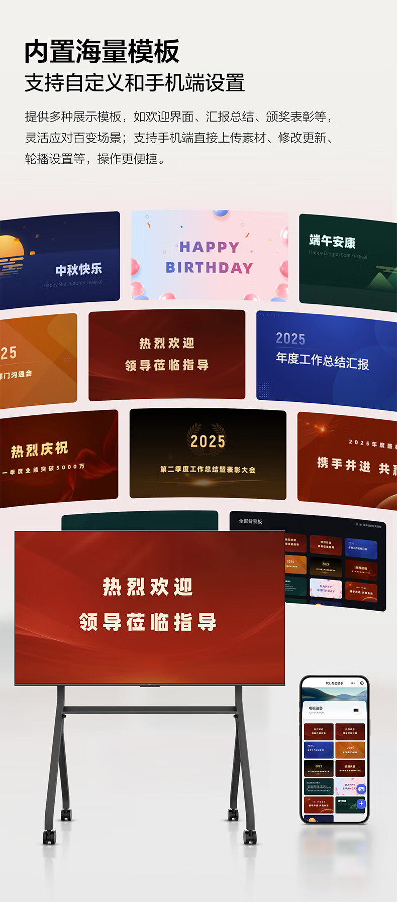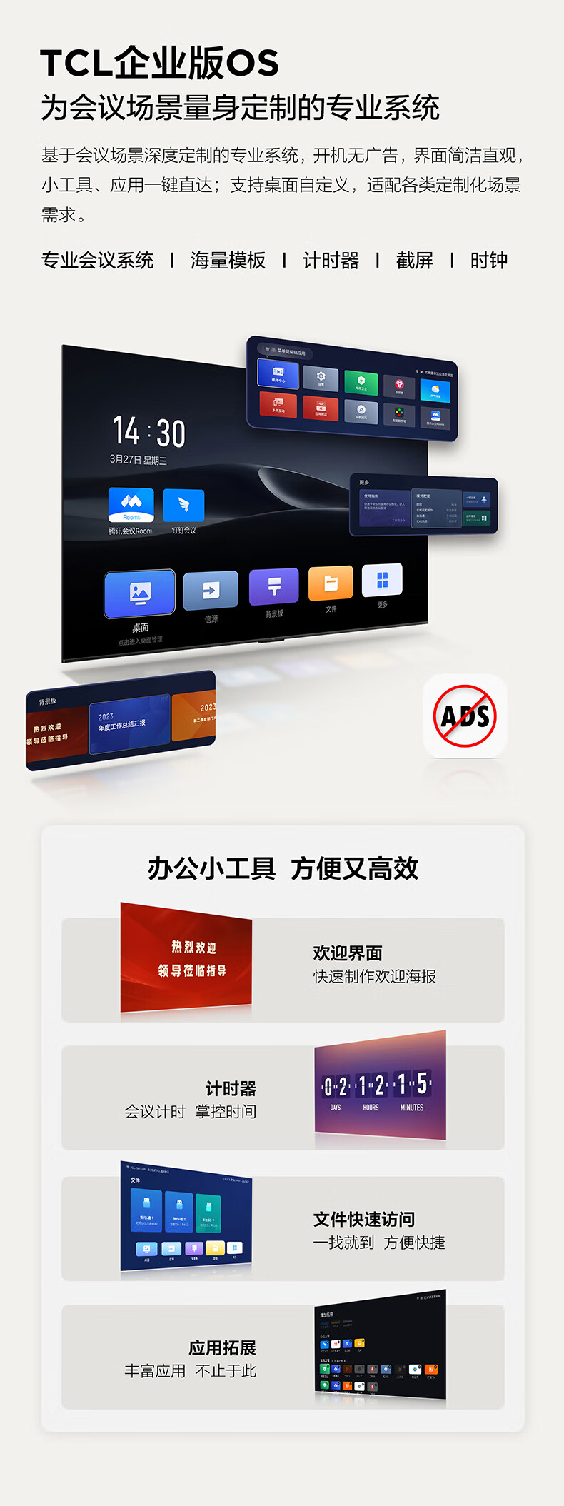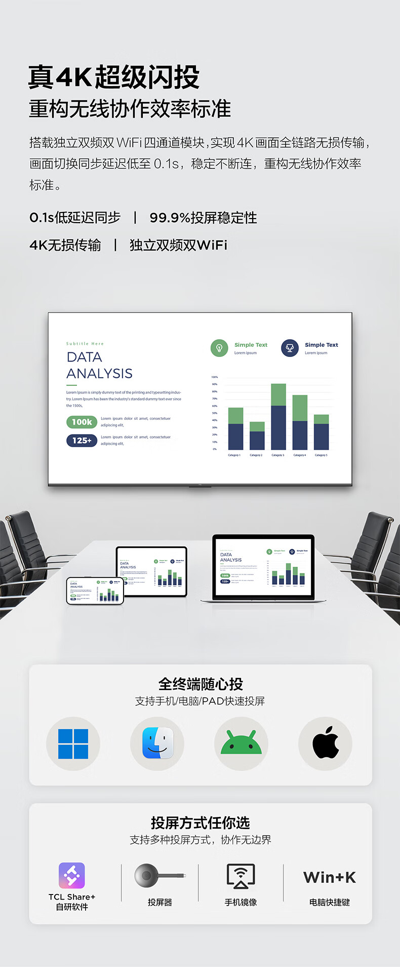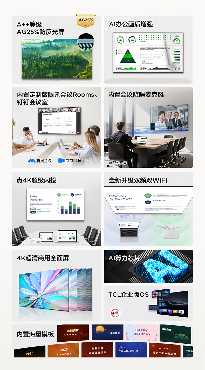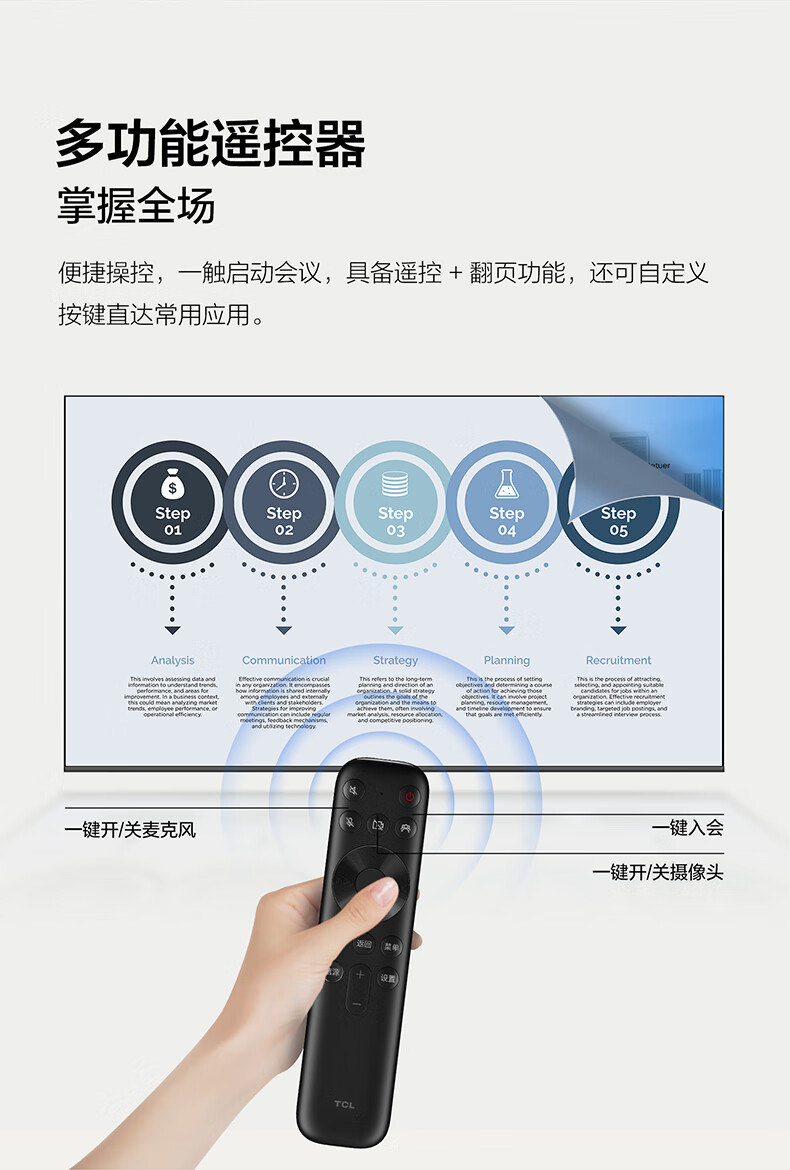 TCL75寸会议电视平板一体机无线投屏4K超清移动超薄会议室显示屏办公家用培训商用电视机教学大屏N75A