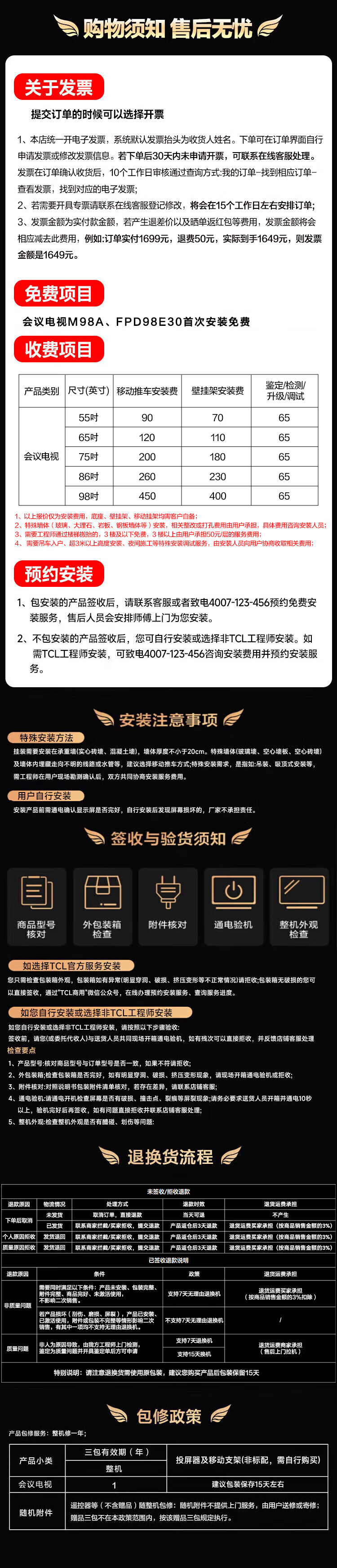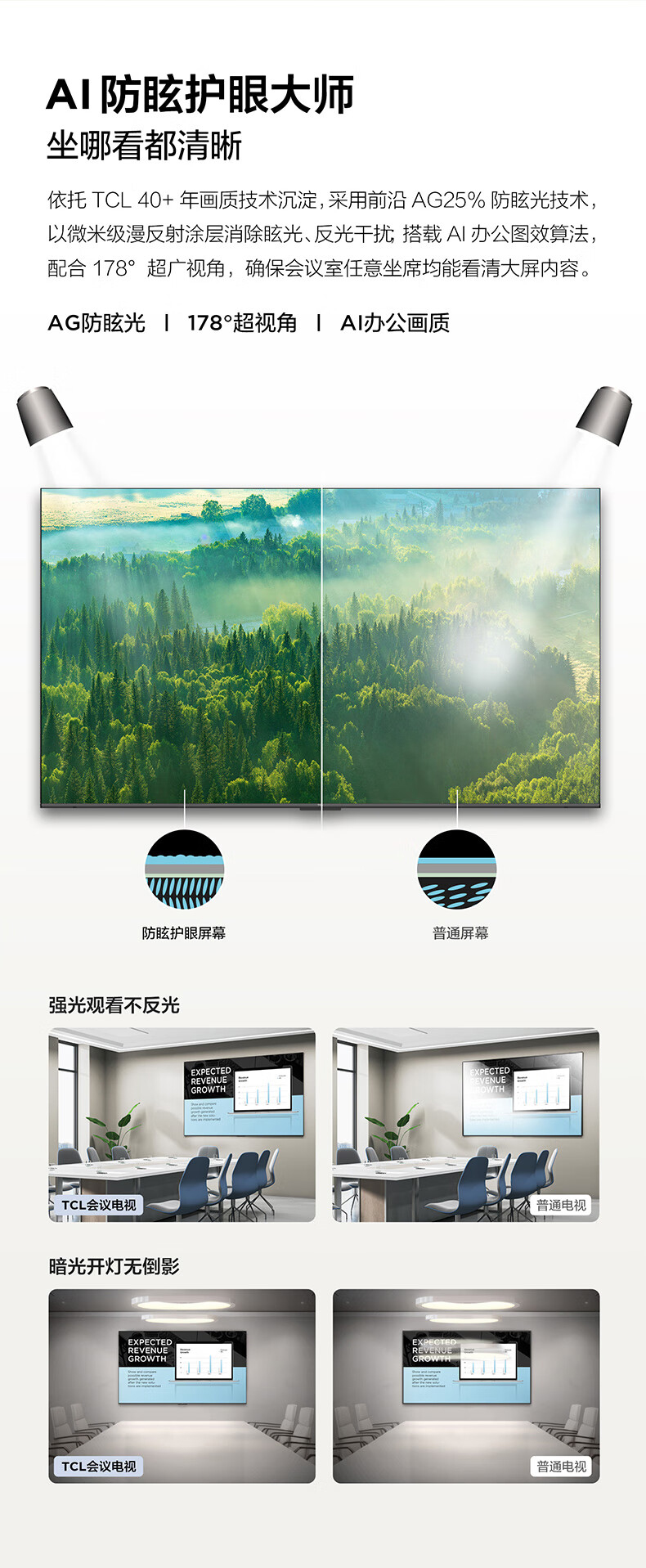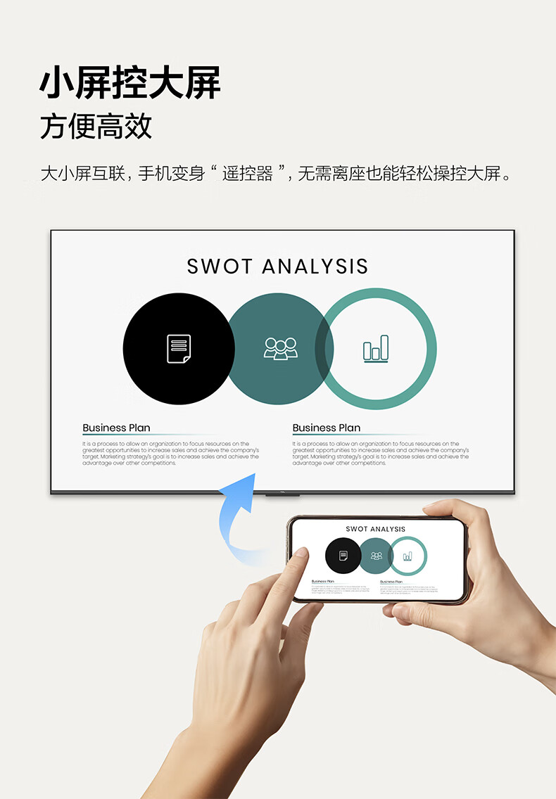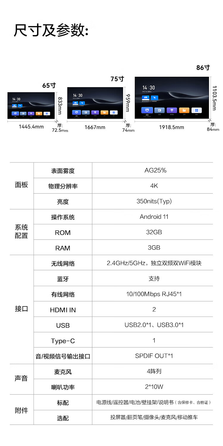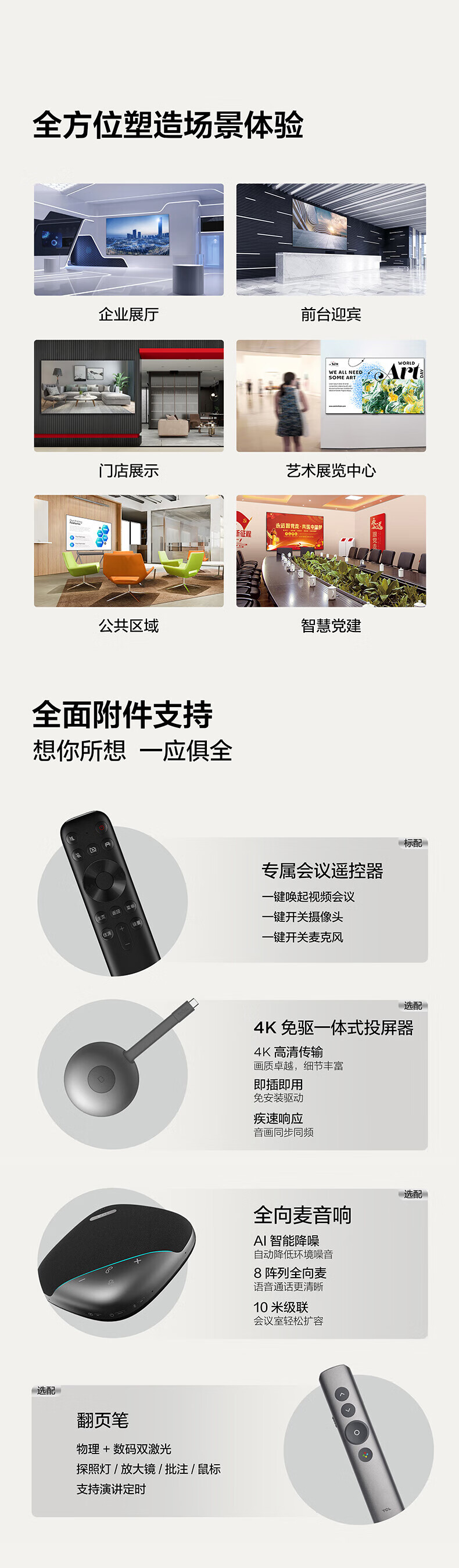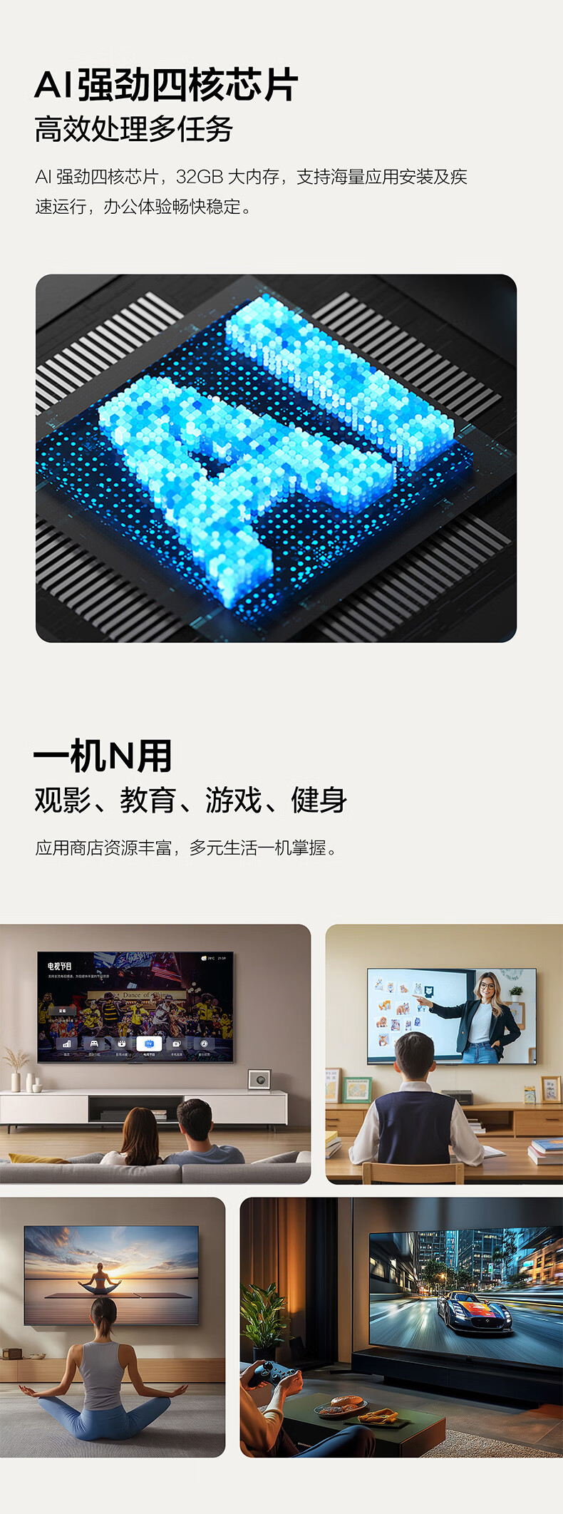 TCL75寸会议电视平板一体机无线投屏4K超清移动超薄会议室显示屏办公家用培训商用电视机教学大屏N75A