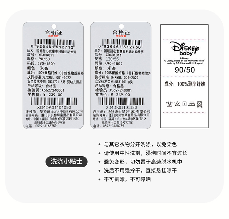 迪士尼女童冬季加绒长裤米妮裤子XD4DK011