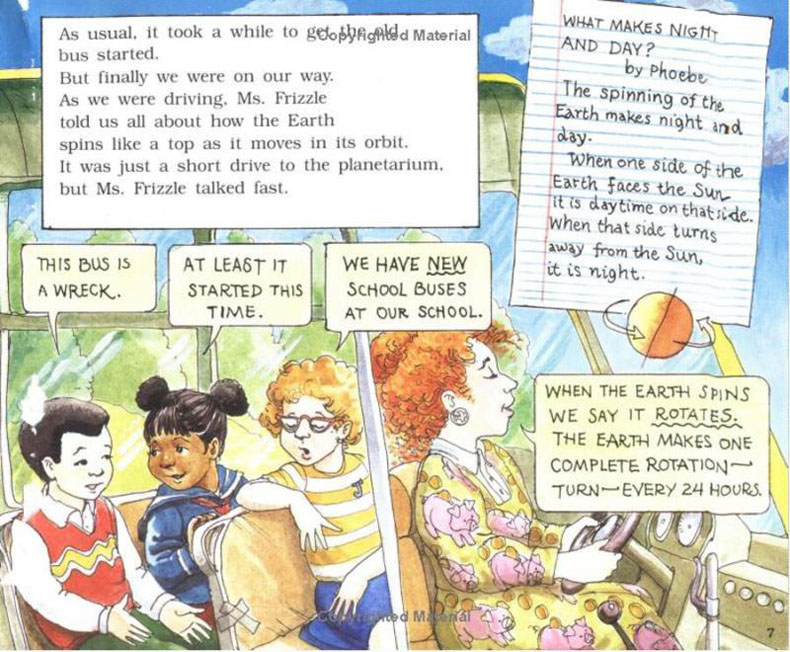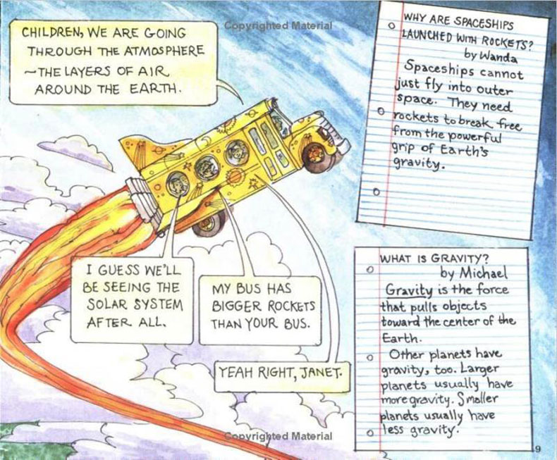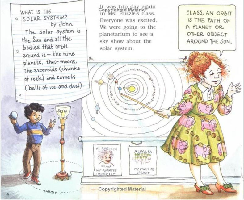 The Magic School Bus Lost In The Solar System《迷失在太阳系》(有音频) 乘坐神奇校车,跟随Frizzle老师一起展开一次前所未有的太阳系之旅吧! 和Frizzle老师一起飞出大气层、登陆月球、考察金星、在火星探索,一起飞往其它行星,感受太阳的巨大和炙热。 围绕知识点的简单的三两句陈述,孩子们和老师之间的幽默对话,加上丰富的插图使得整个太阳之旅在充满浓浓的科学探究氛围的同时,平添了不少的趣味,瞬间提高小朋友的阅读兴趣。 The fieldtrip to the planetarium is foiled when the museum turns out to be closed, but Ms. Frizzle saves the day. The Magic School Bus turns into a spaceship and takes the class on a trip zooming through the atmosphere, to the Moon, and beyond! With up-to-date facts about the solar system, revised for this edition.