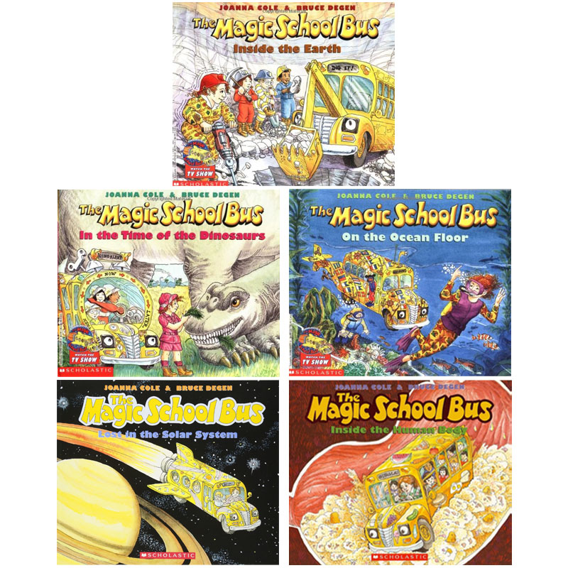 1. The Magic School Bus On the Ocean Floor海底探险2. The Magic School Bus Inside the Human Body在人体中游览 3. The Magic School Bus Inside the Earth地球内部探秘 4. The Magic School Bus Lost in the Solar System 迷失在太阳系 5. The Magic School Bus In the Time of the Dinosaurs追寻恐龙