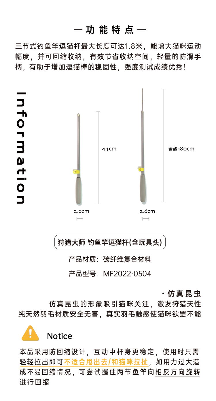 【幸运土猫】摩法狩猎大师可伸缩钓鱼竿逗猫棒仿真昆虫羽毛替换头解压神器猫玩具猫用品