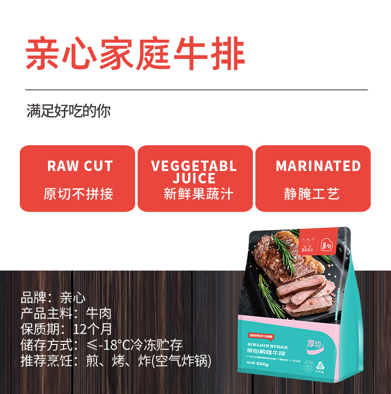 亲心家庭牛排550g(3-4片)*2袋(赠品:意面110g*2袋+黑椒酱包20g*7包+刀叉*1副)