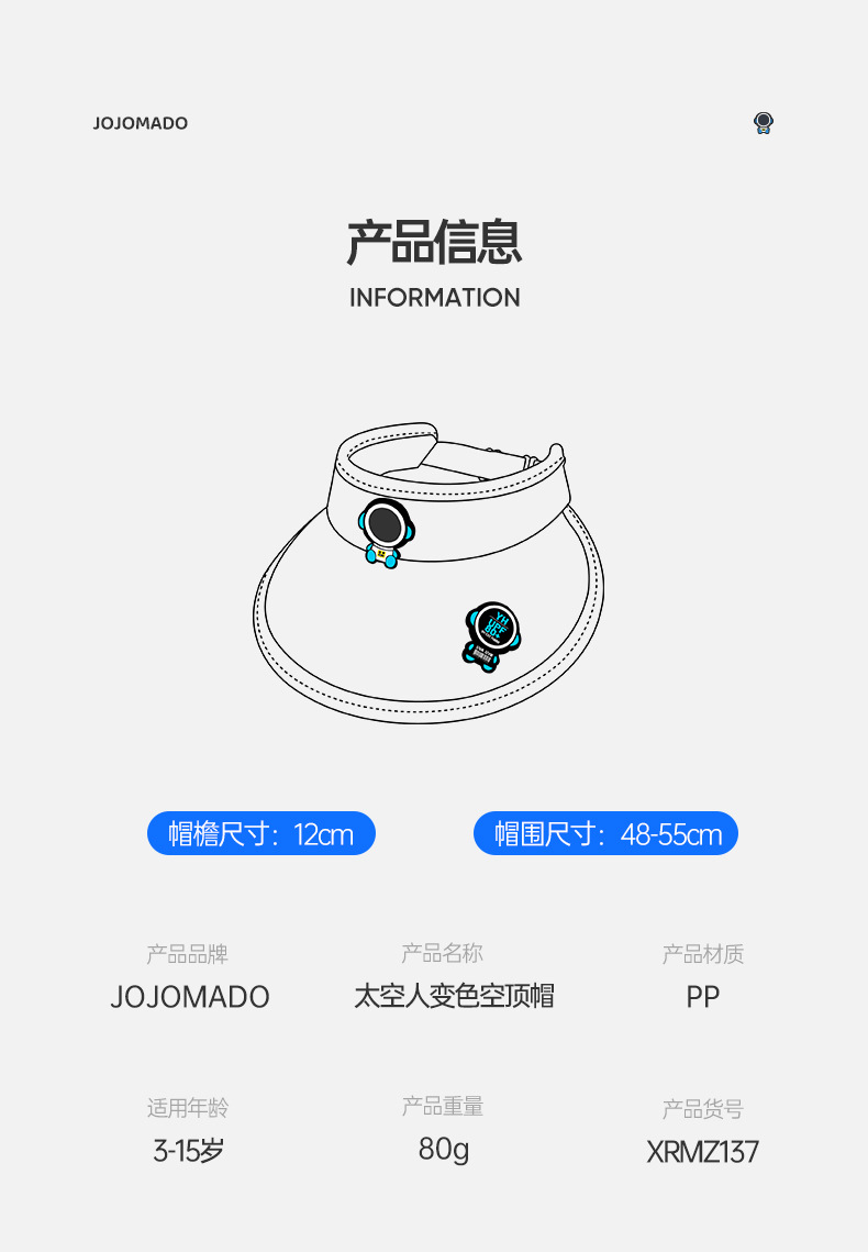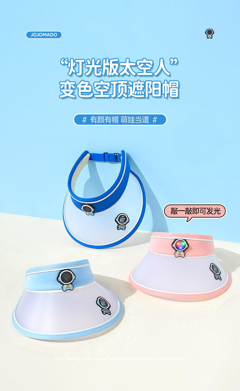 【炫酷闪灯设计 全脸遮挡防晒】新款儿童空顶帽韩版时尚防晒帽子女夏季户外宝宝发光太空人太阳帽