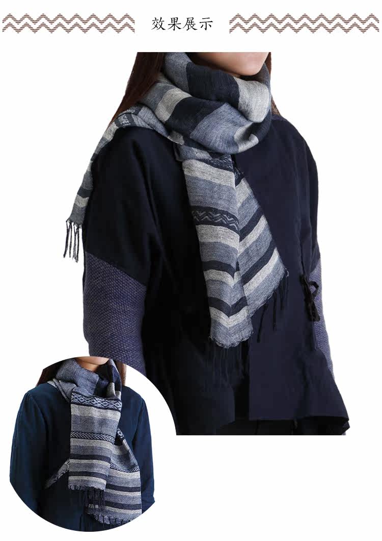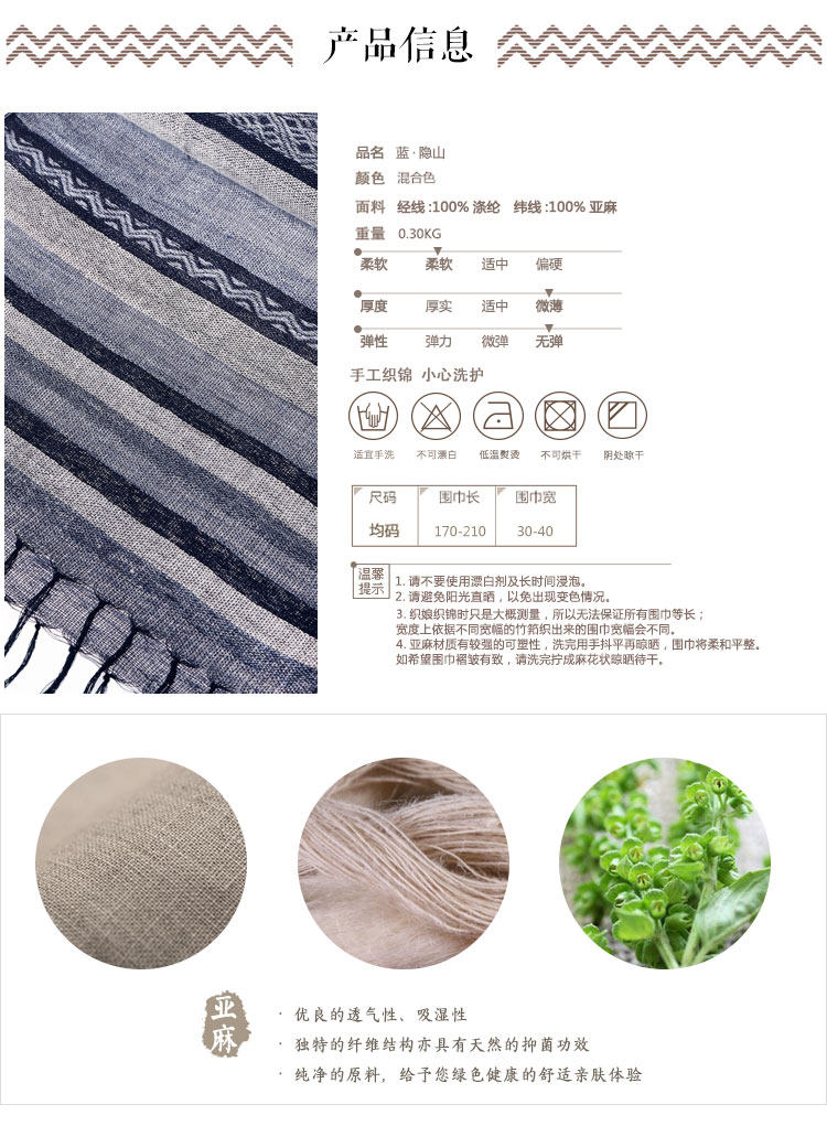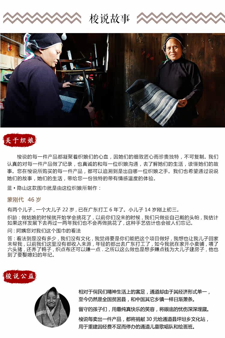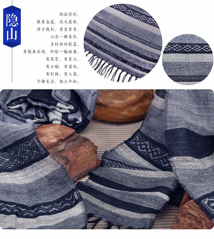 【梭说】限量蓝.隐山纯手工围巾撞色亚麻侗族传统织锦工艺春秋款