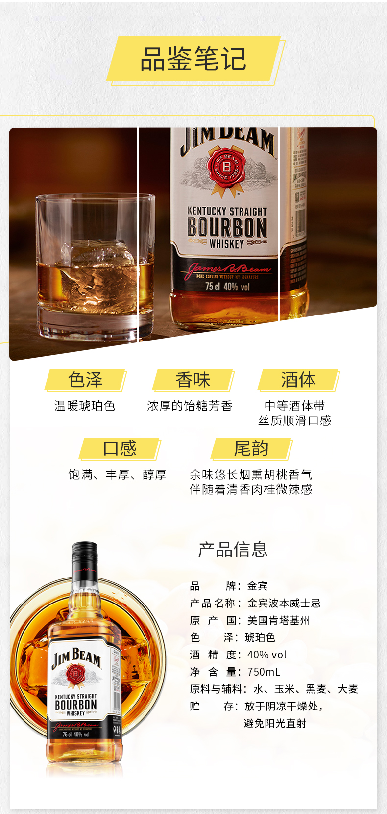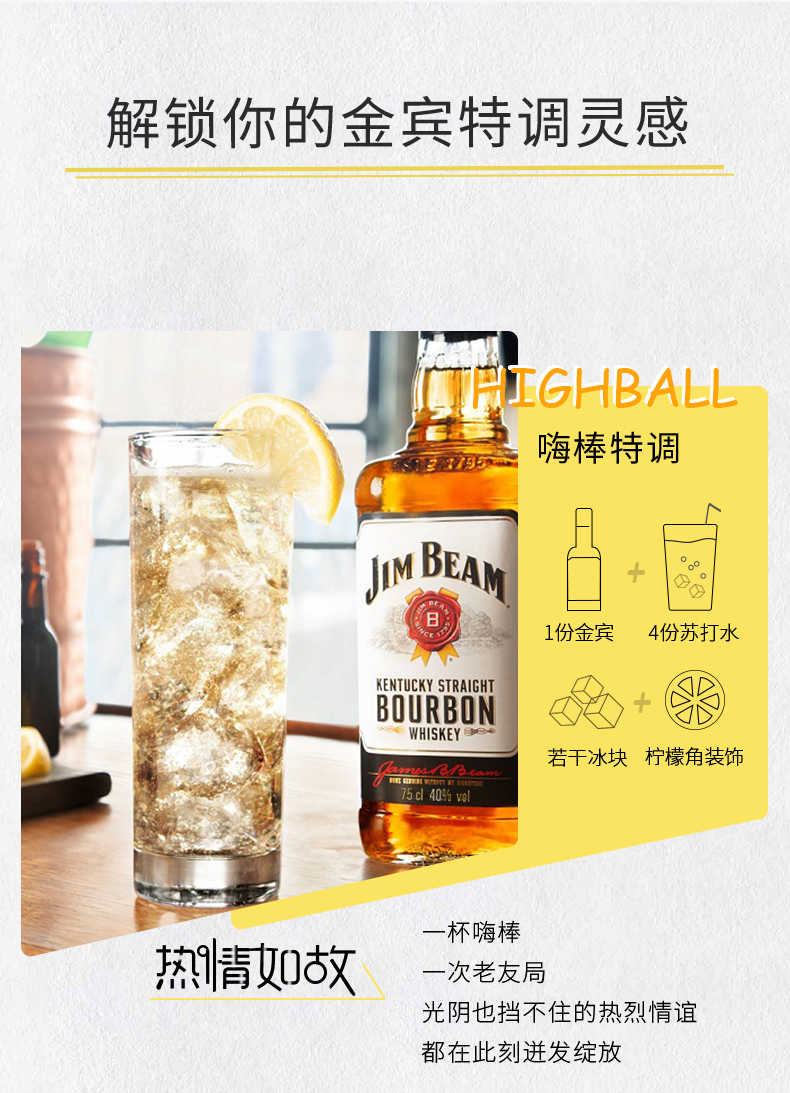 【行货】美国金宾占边波本威士忌 750ml*1瓶
