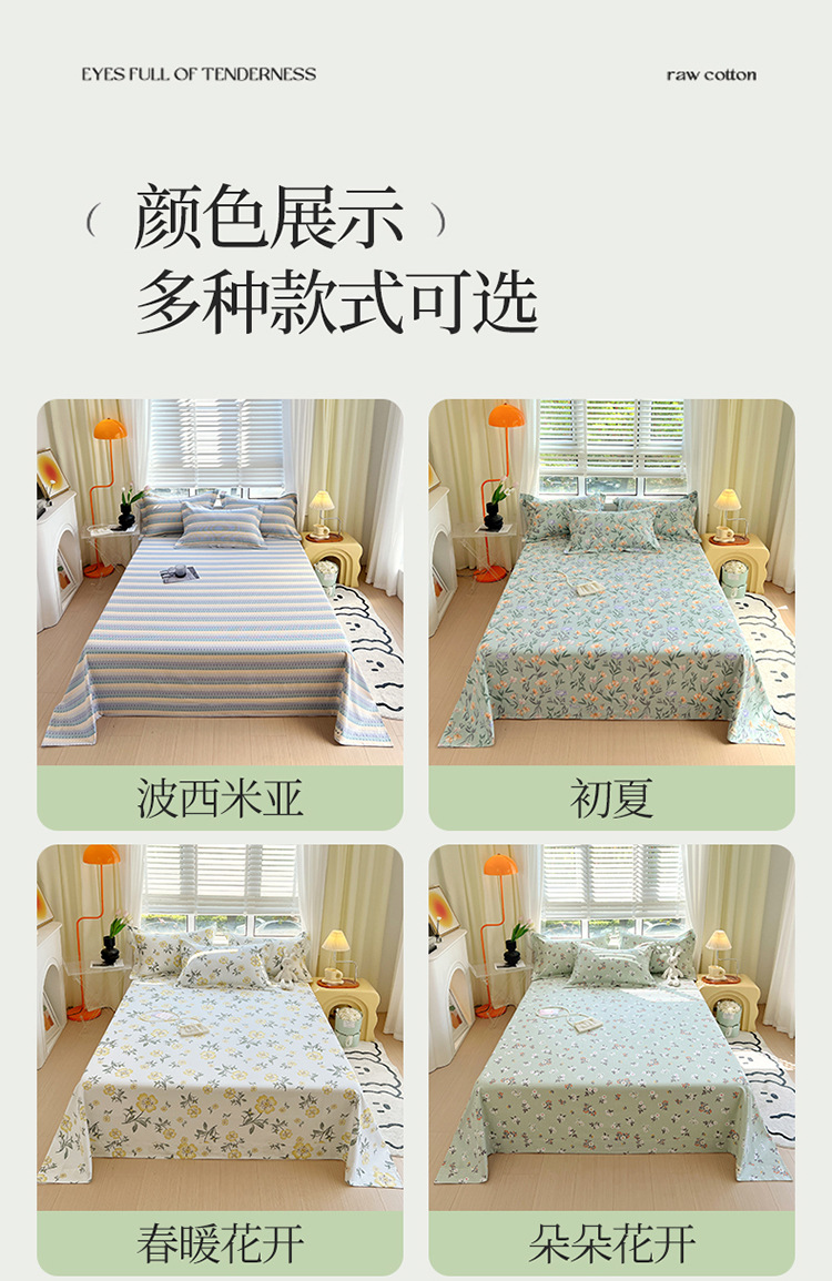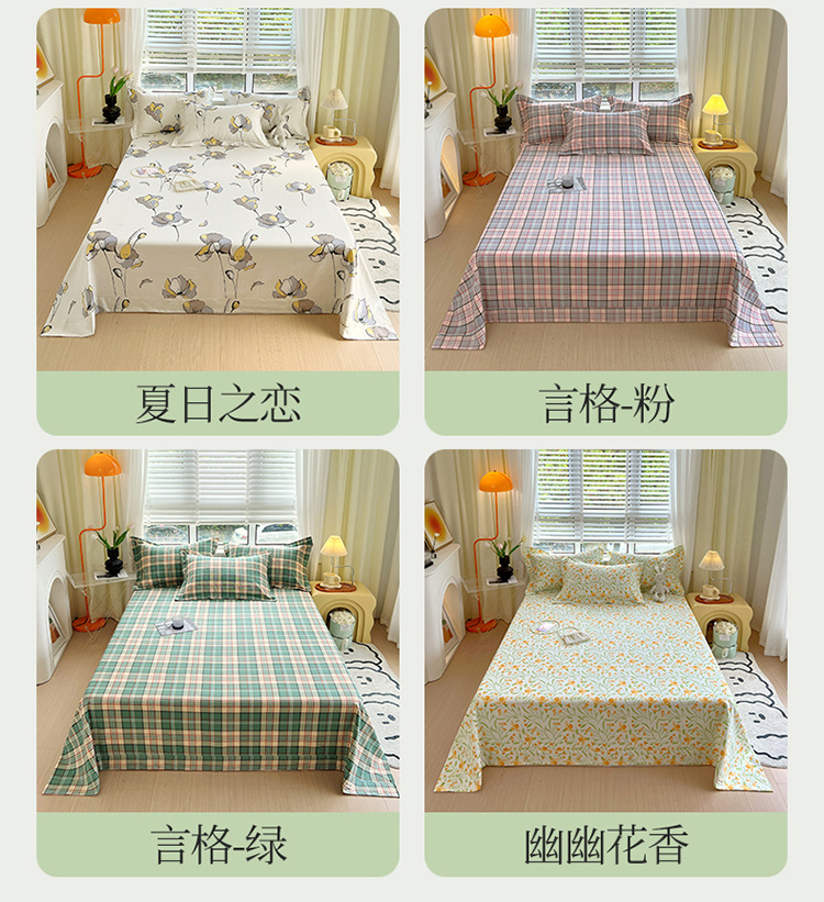 全棉缎纹原棉老粗布床单三件套纯棉细纱田园风单件棉麻被单批发_HLY