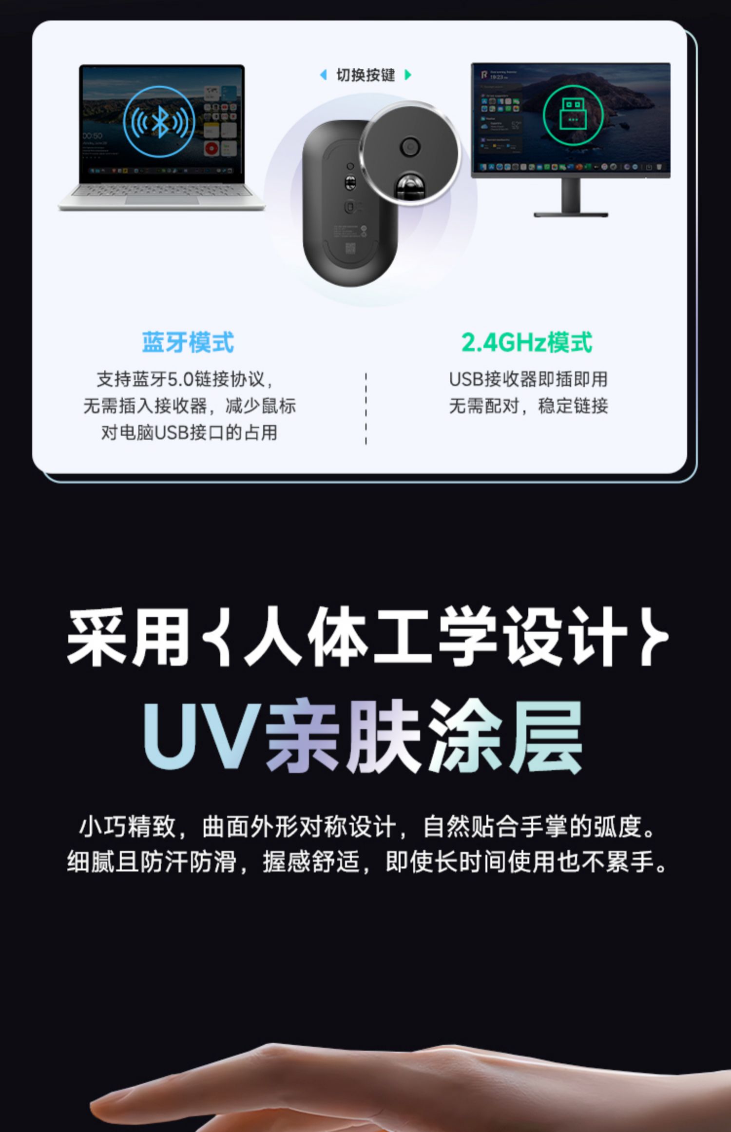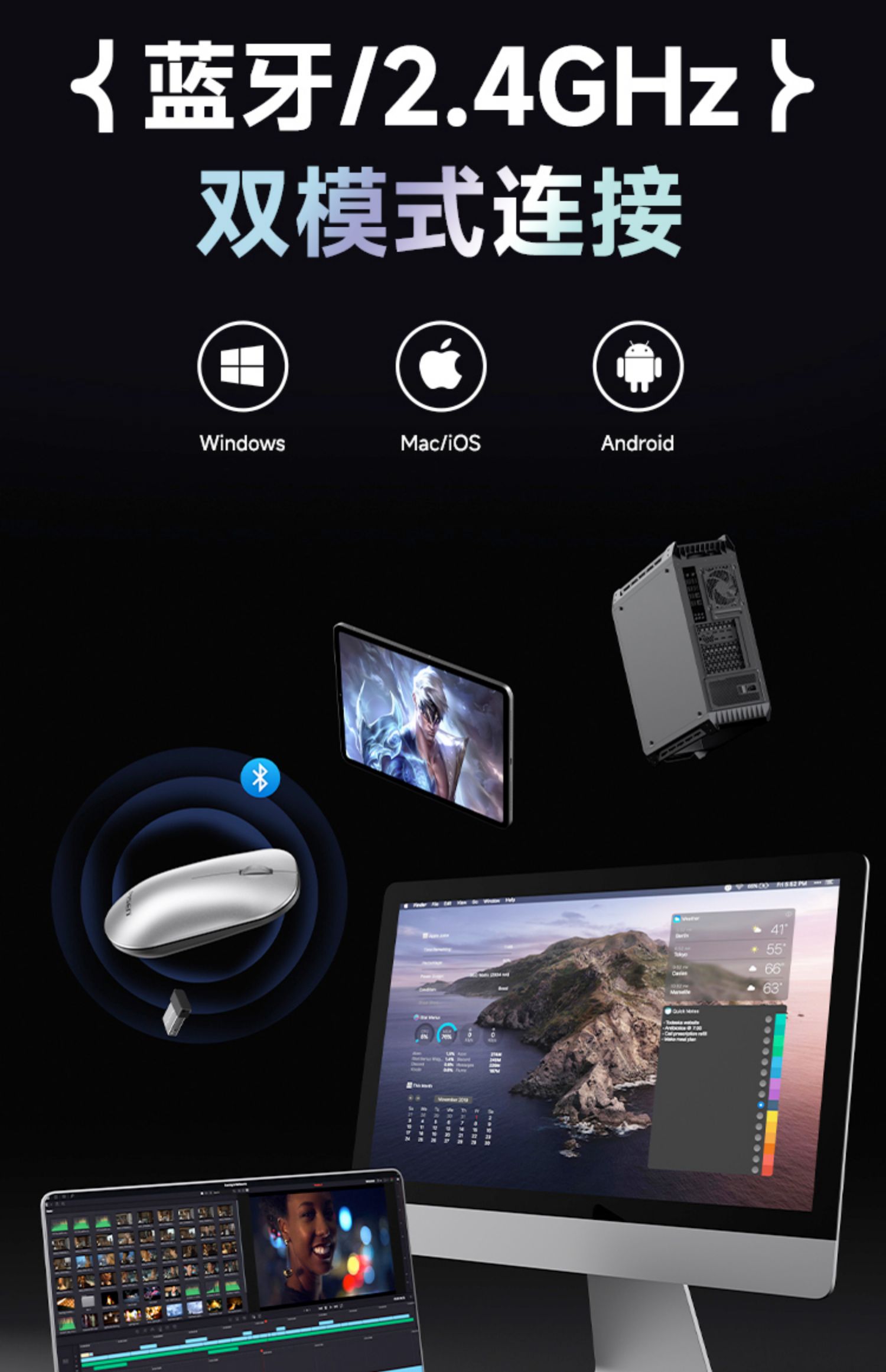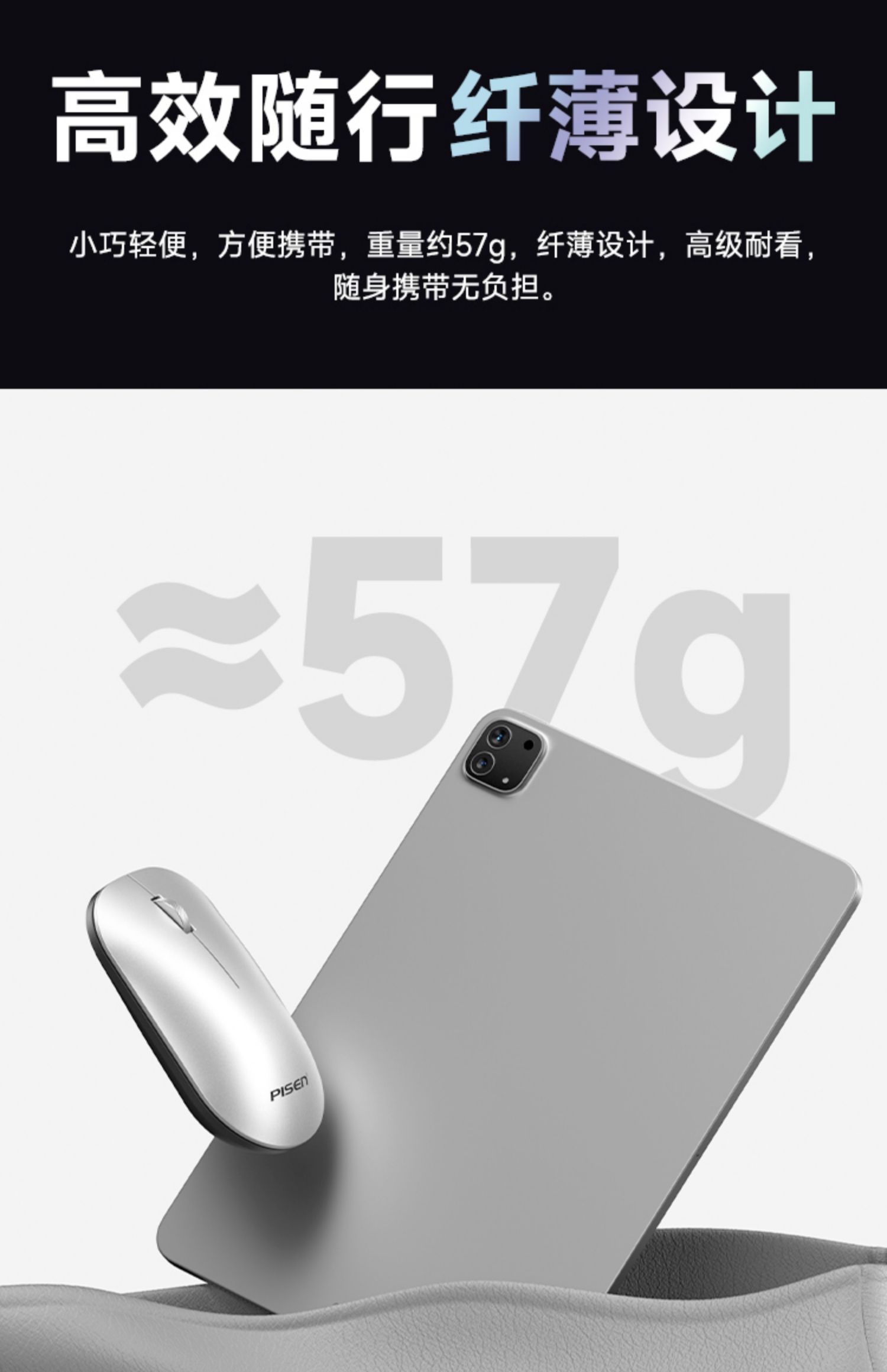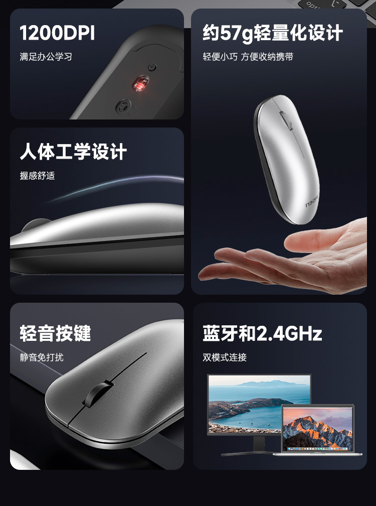 品胜 无线鼠标 双模蓝牙5.0办公游戏静2.4G轻音笔记本台式电脑通用
