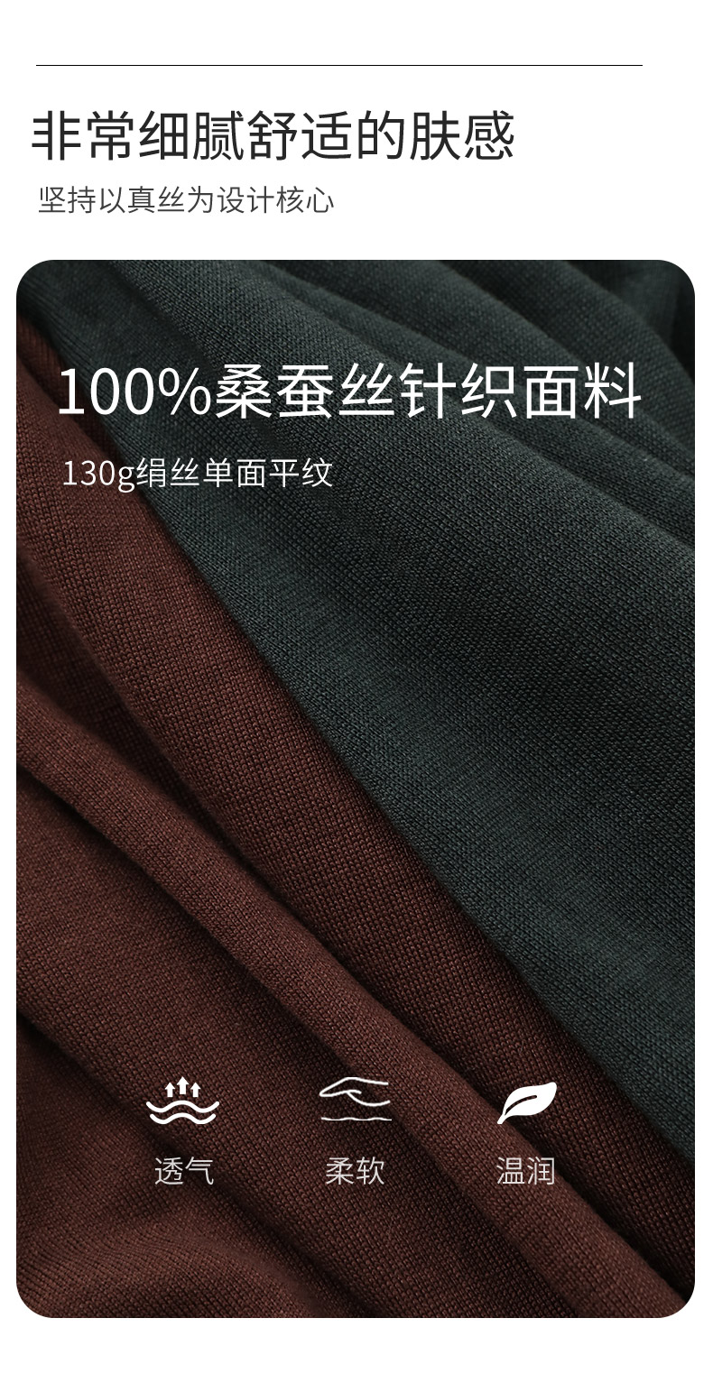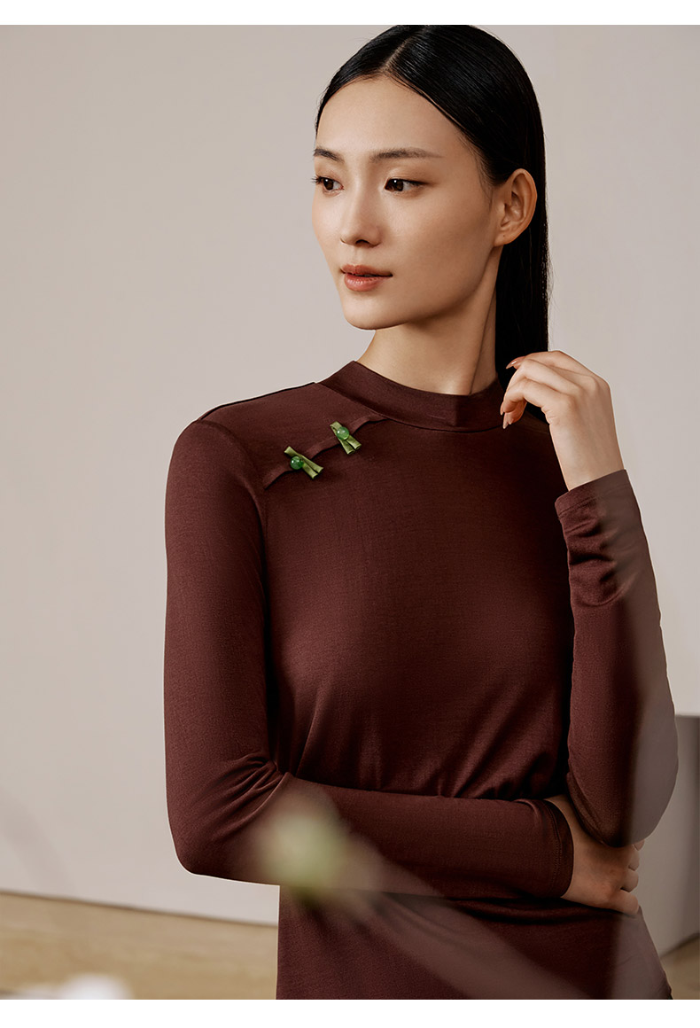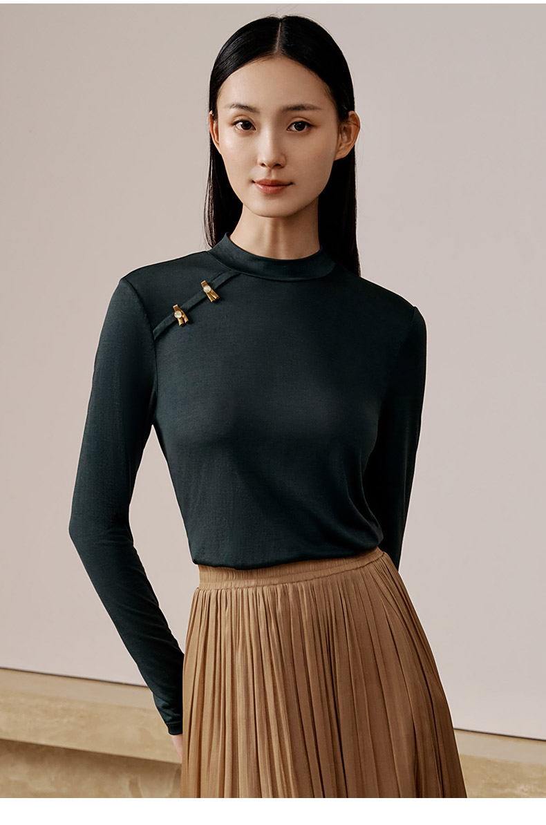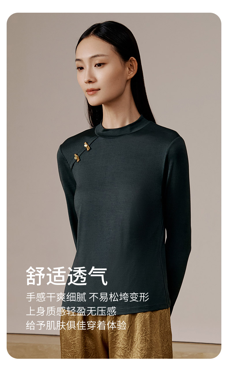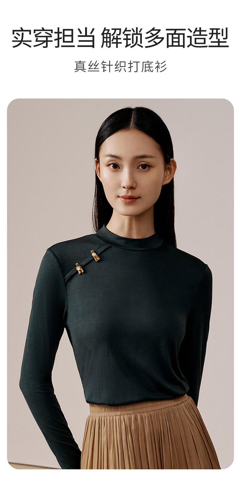 真丝针织打底衫女100%桑蚕丝中式斜襟高弹保暖内衣秋冬新品金三塔 NZFED722