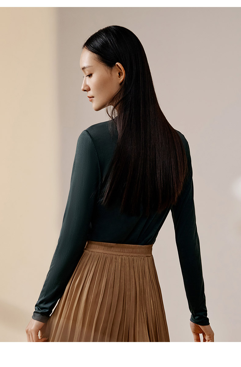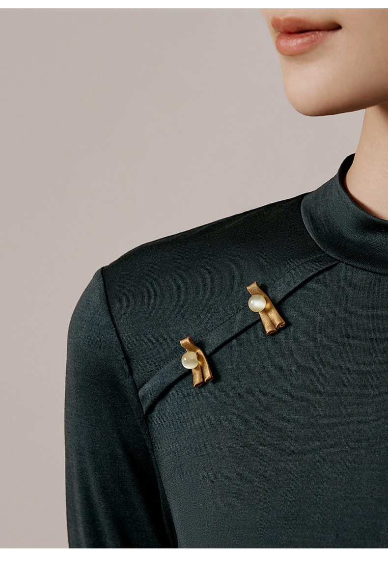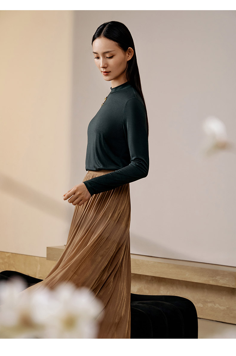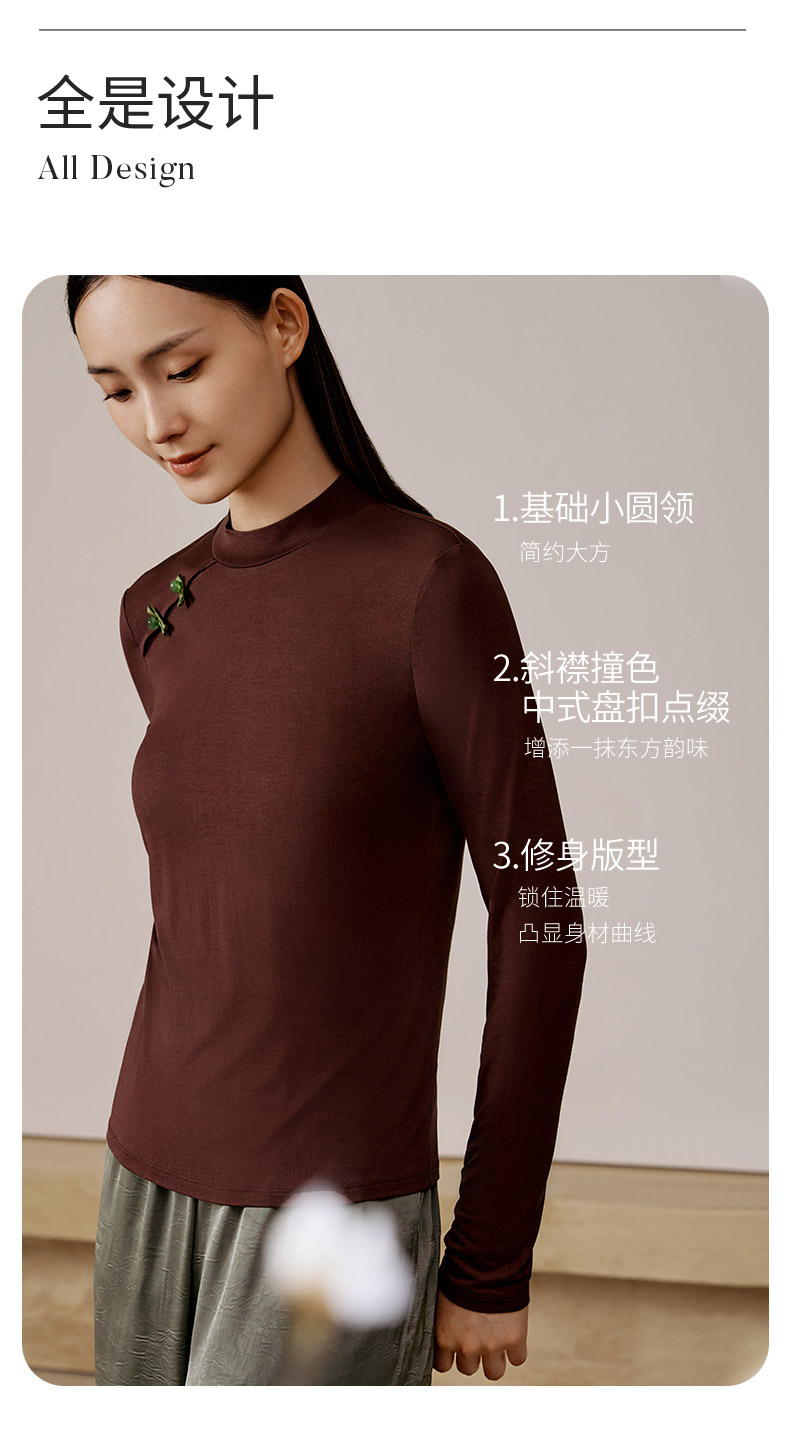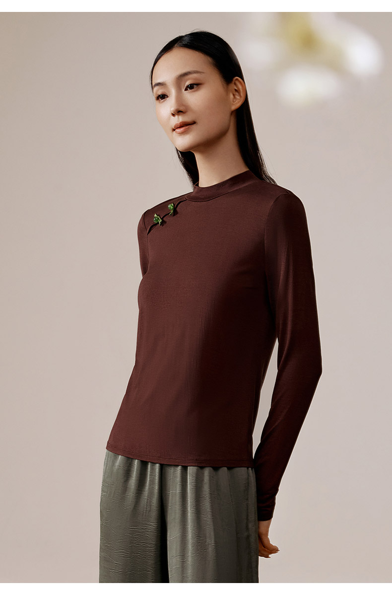 真丝针织打底衫女100%桑蚕丝中式斜襟高弹保暖内衣秋冬新品金三塔 NZFED722
