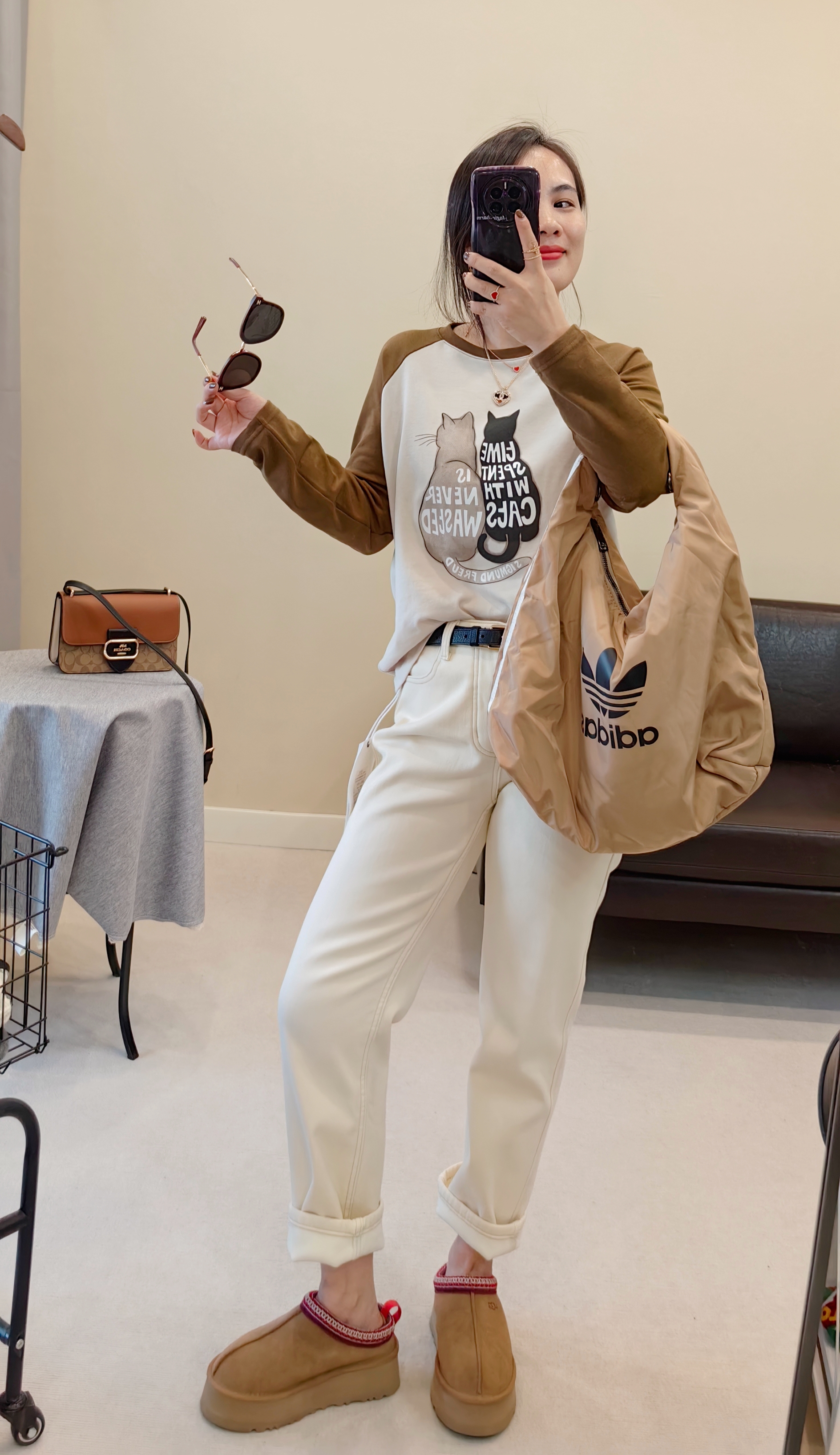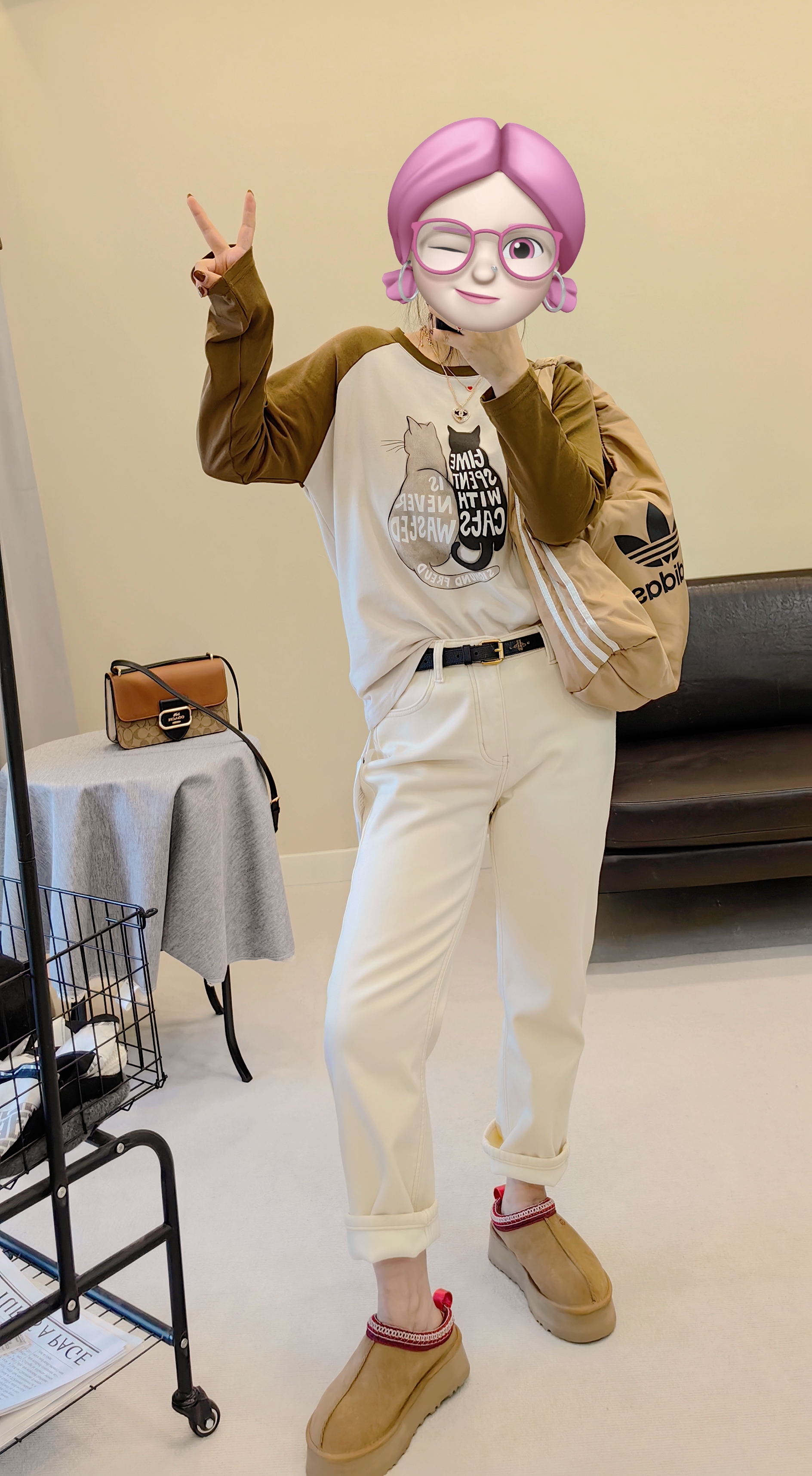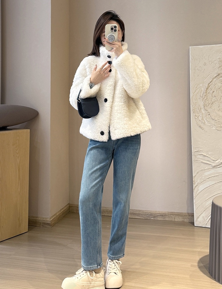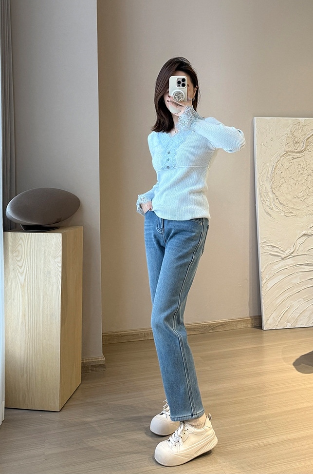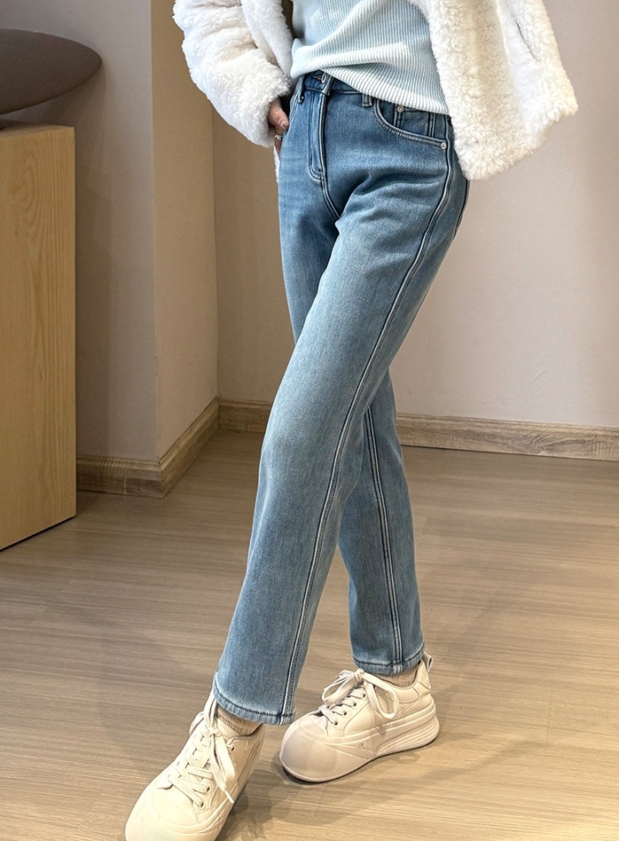 墙裂推荐,有YI定松度的小直筒,有腔调比一般的在臀和大腿部位稍有容量~塑腿显瘦是王道,实穿耐穿型加绒牛仔裤~