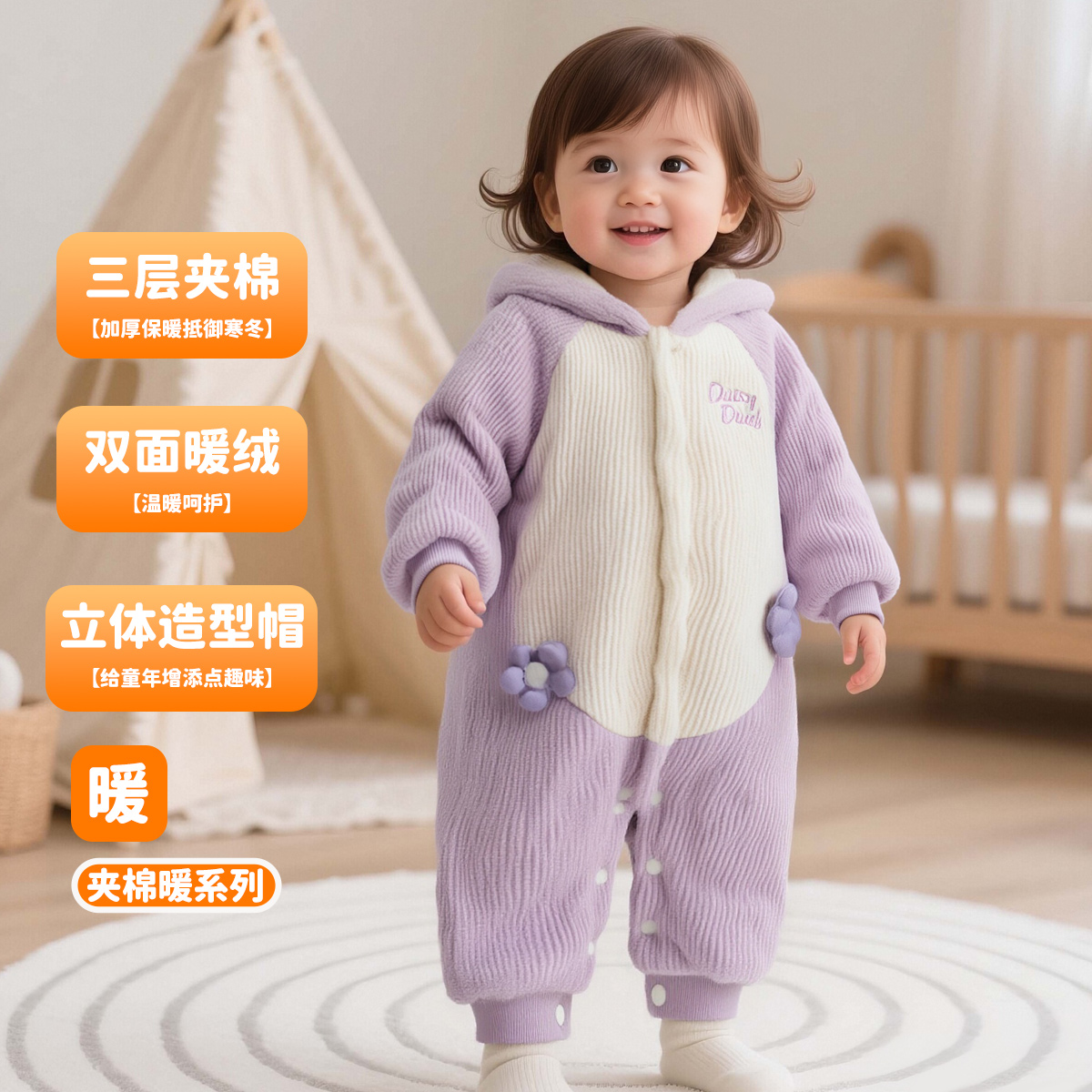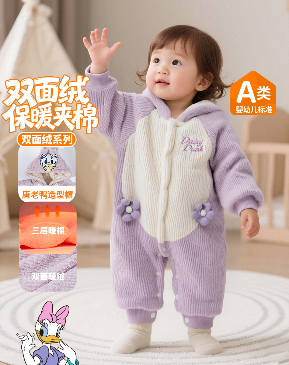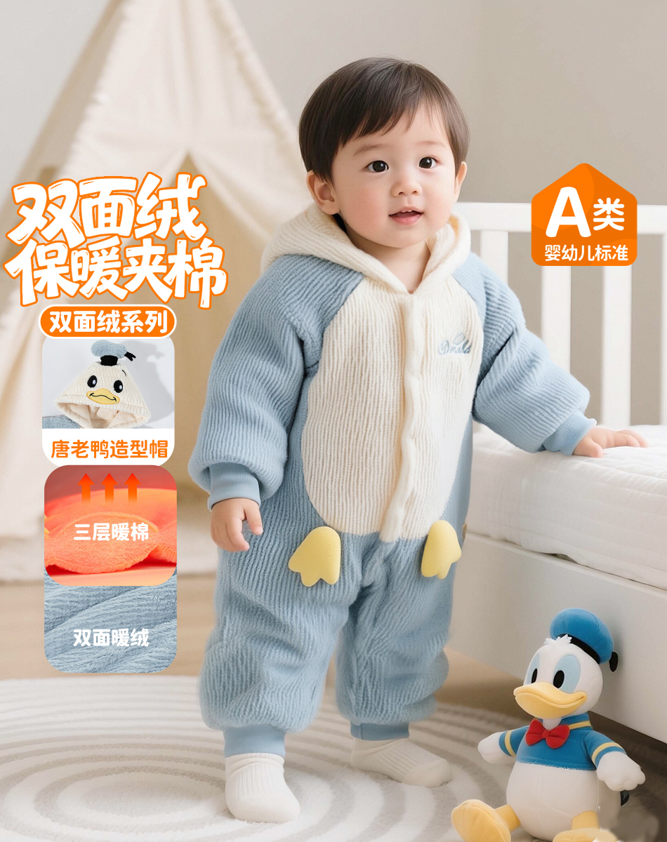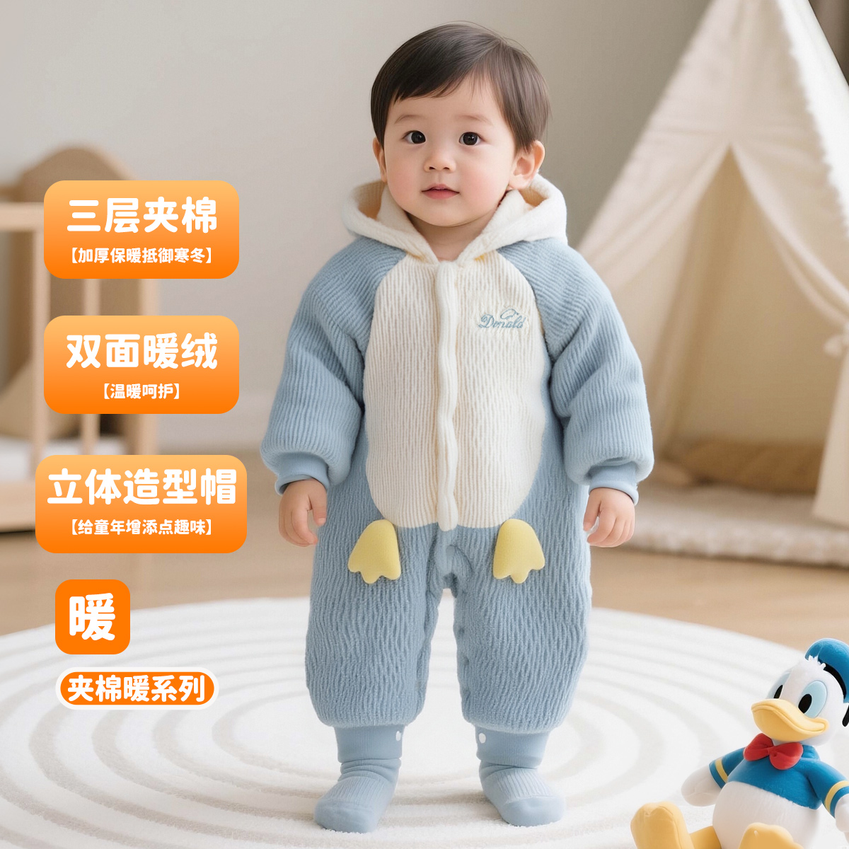 迪士尼童装男童夹棉连体衣新生婴儿夹棉宝宝外出加厚棉衣冬季新款ZD4EL027