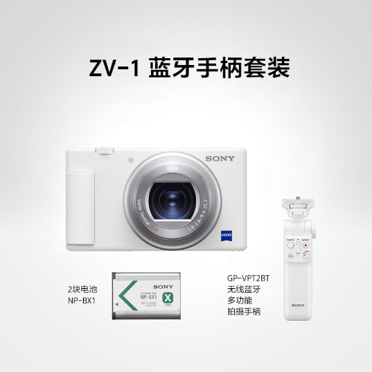 索尼(SONY)ZV-1 入门数码相机 蓝牙手柄套装 美肤高颜值 小巧大变焦 Vlog相机 蓝牙手柄套装 白色